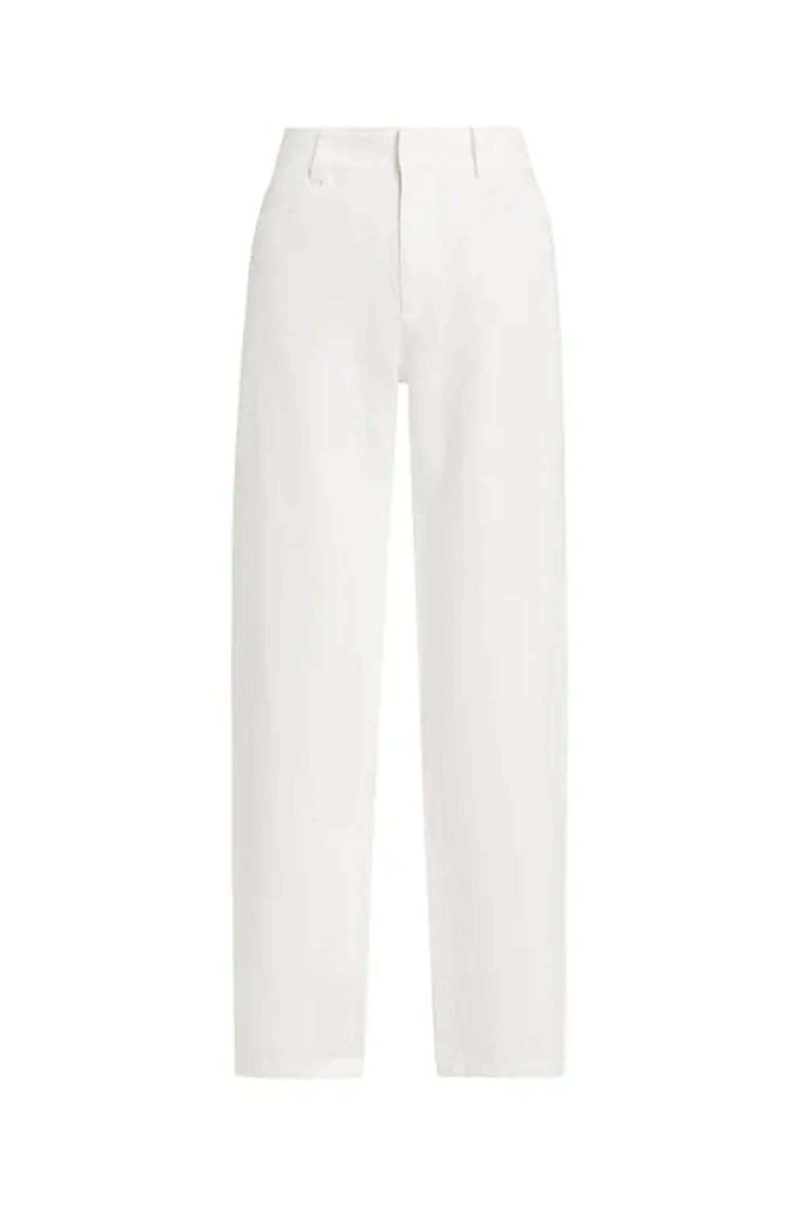 Vince Off White High Waist Casual Pant . High rise . Belt loops. Zip-fly. Hook-and-eye closure. Side pockets. Back welt pockets. Relaxed fit . 71% cotton/15% lyocell/14% linen.