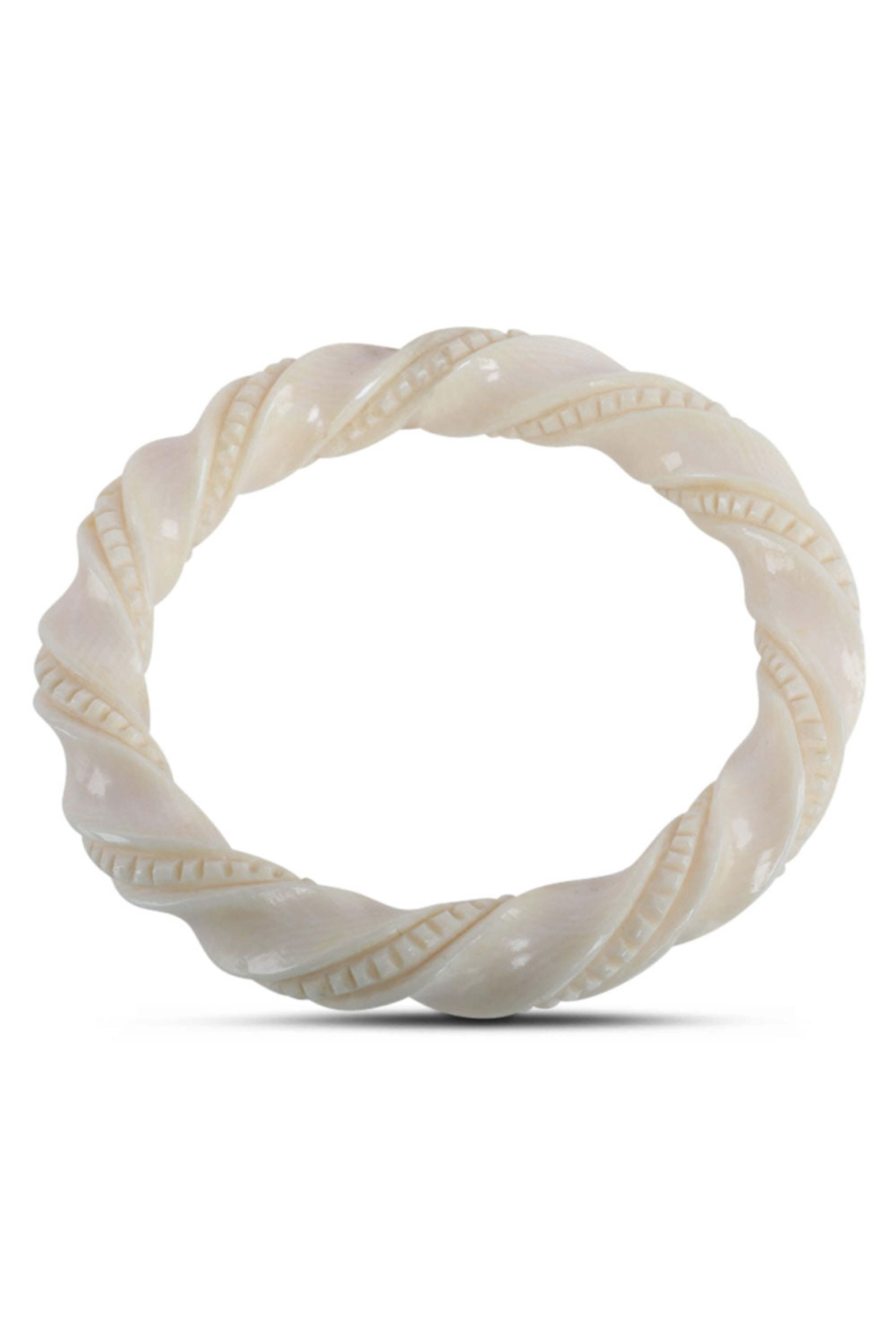 Recycled vintage ivory. Twisted bead detailing. Engraved detailing. Bangle style. Handmade and designed in India. Diameter: 25".