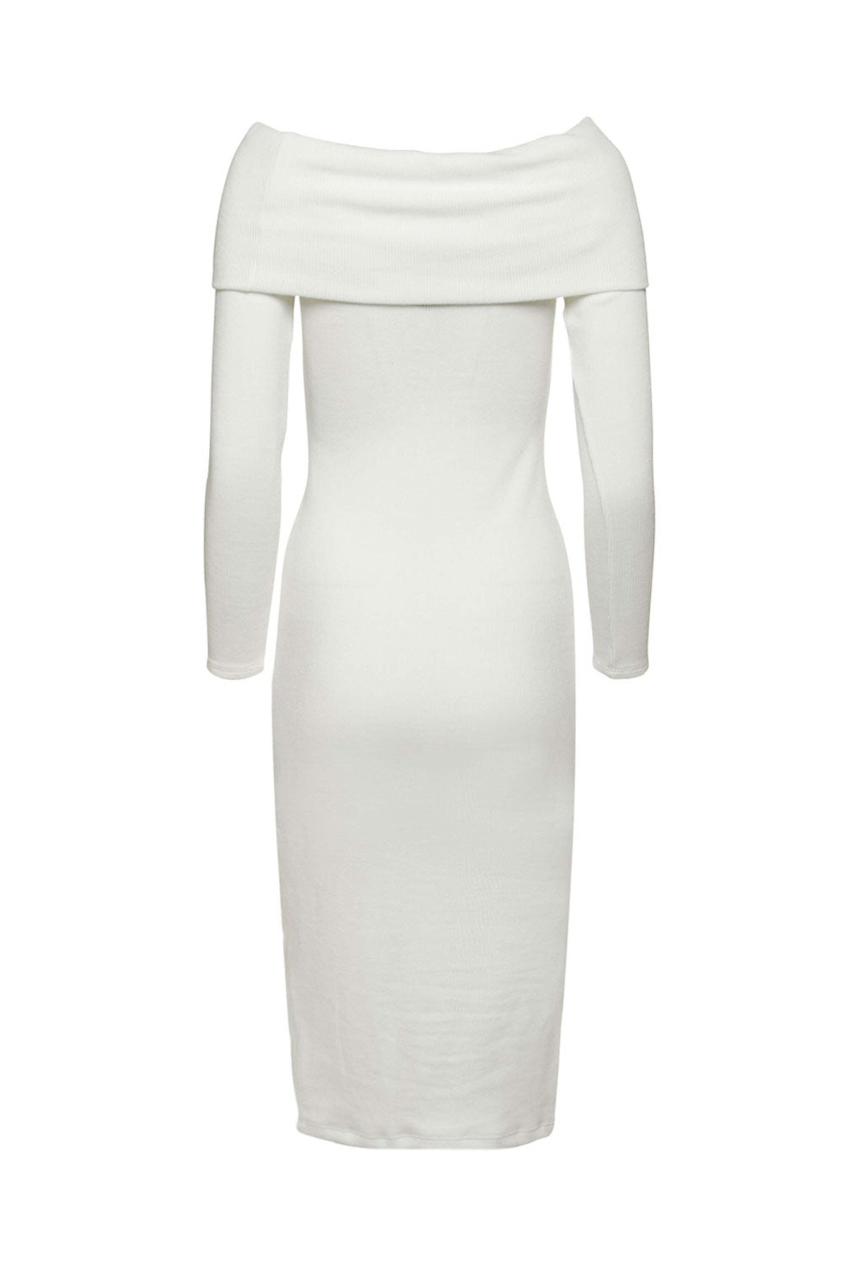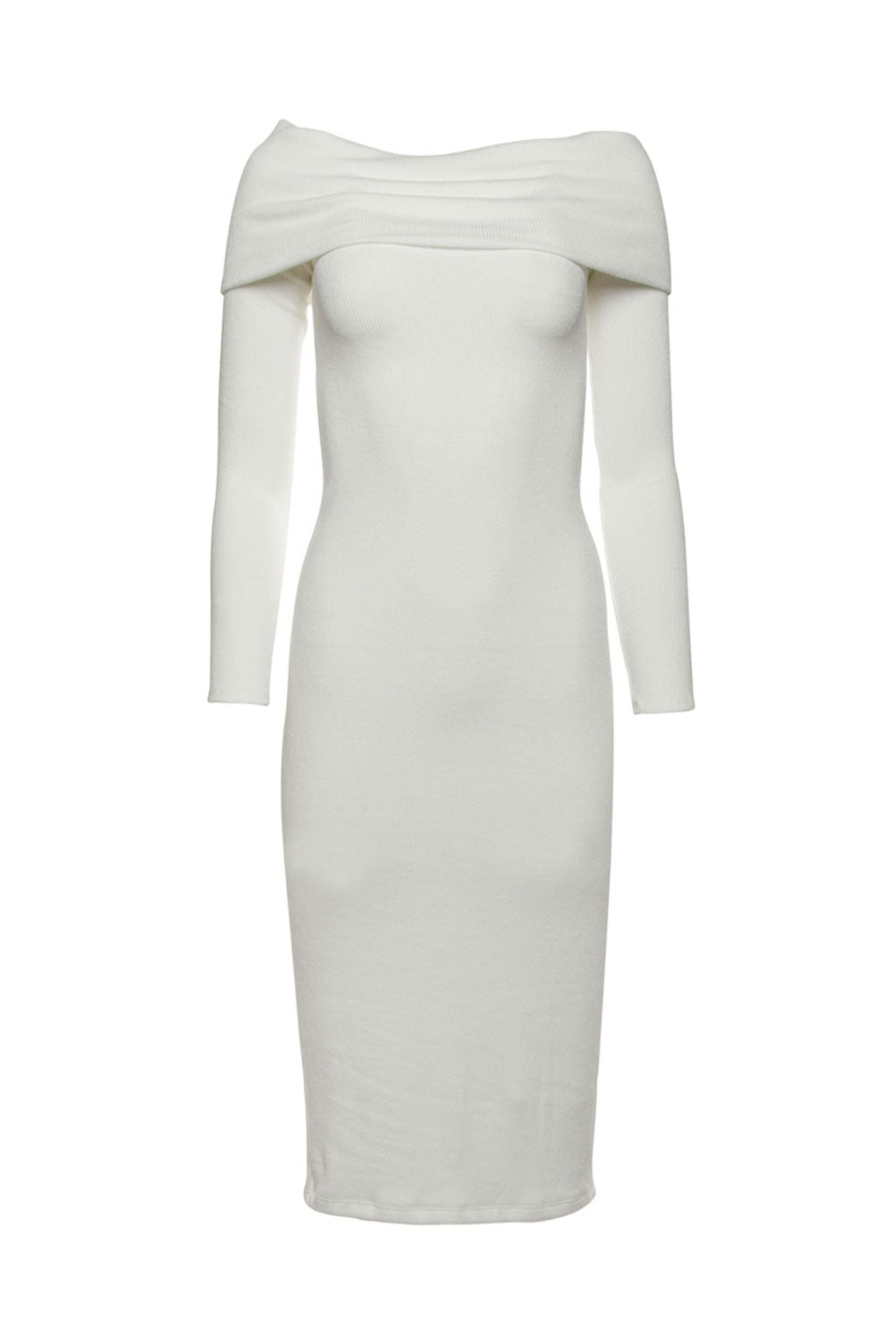 - Enza Costa Winter White Knit Off The Shoulder Midi Dress