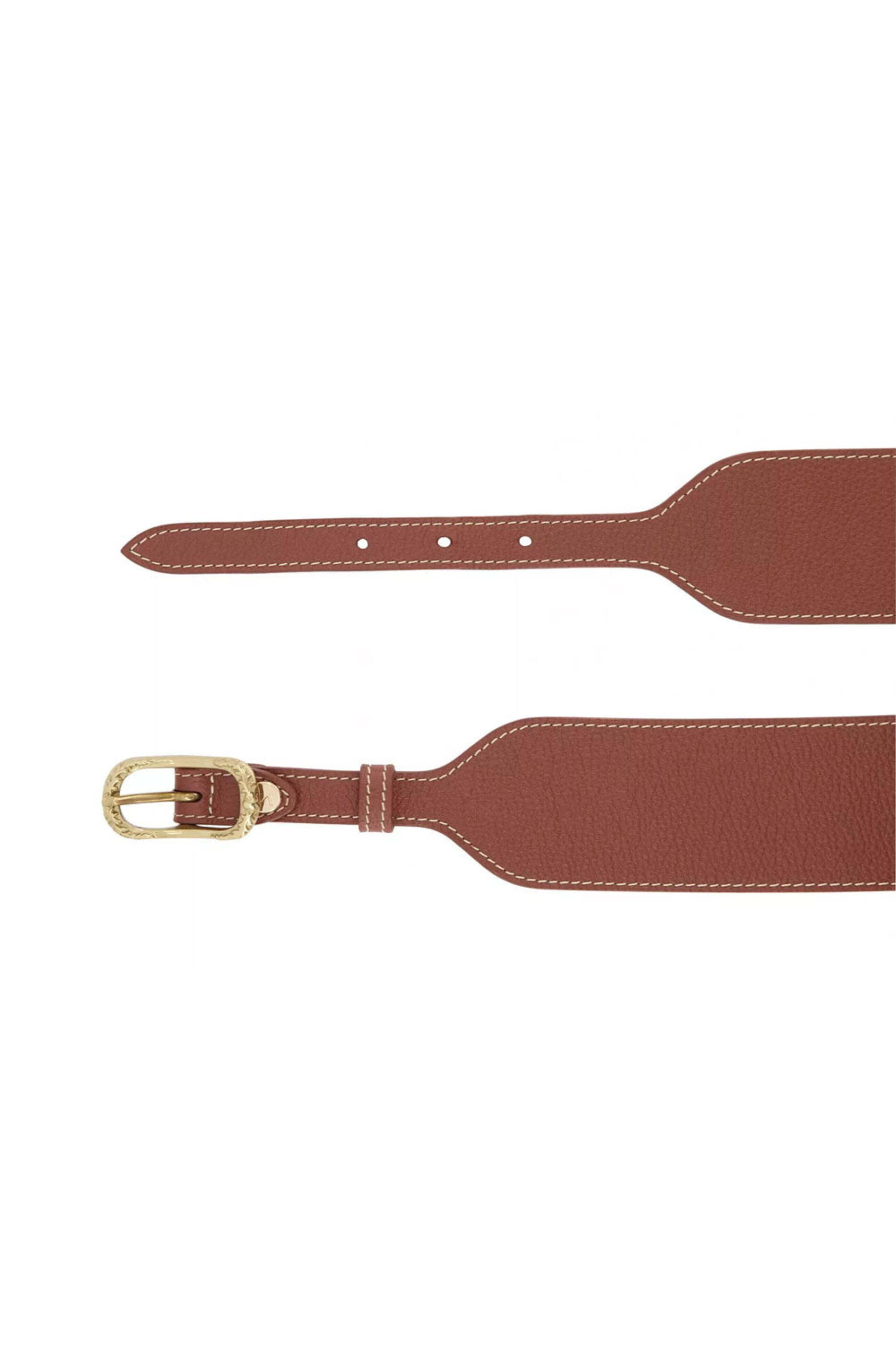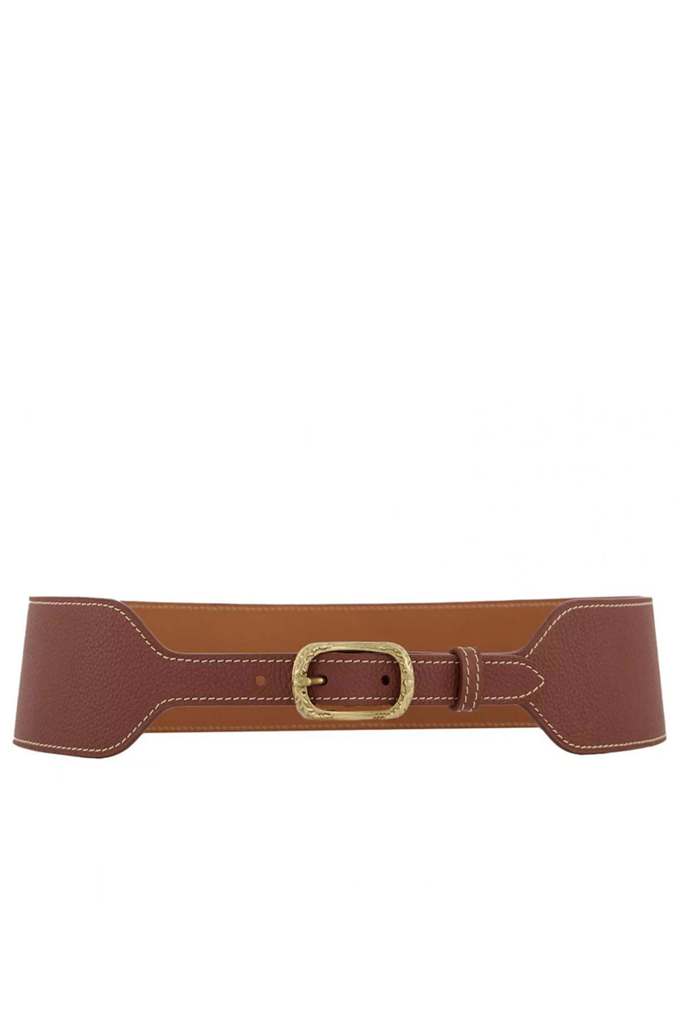 Maison Vaincort LAttirante Belt in Havana. Pointed tip. Brass buckle. Adjustable. Waist belt. Calf leather. 60mm width. Made in Paris.