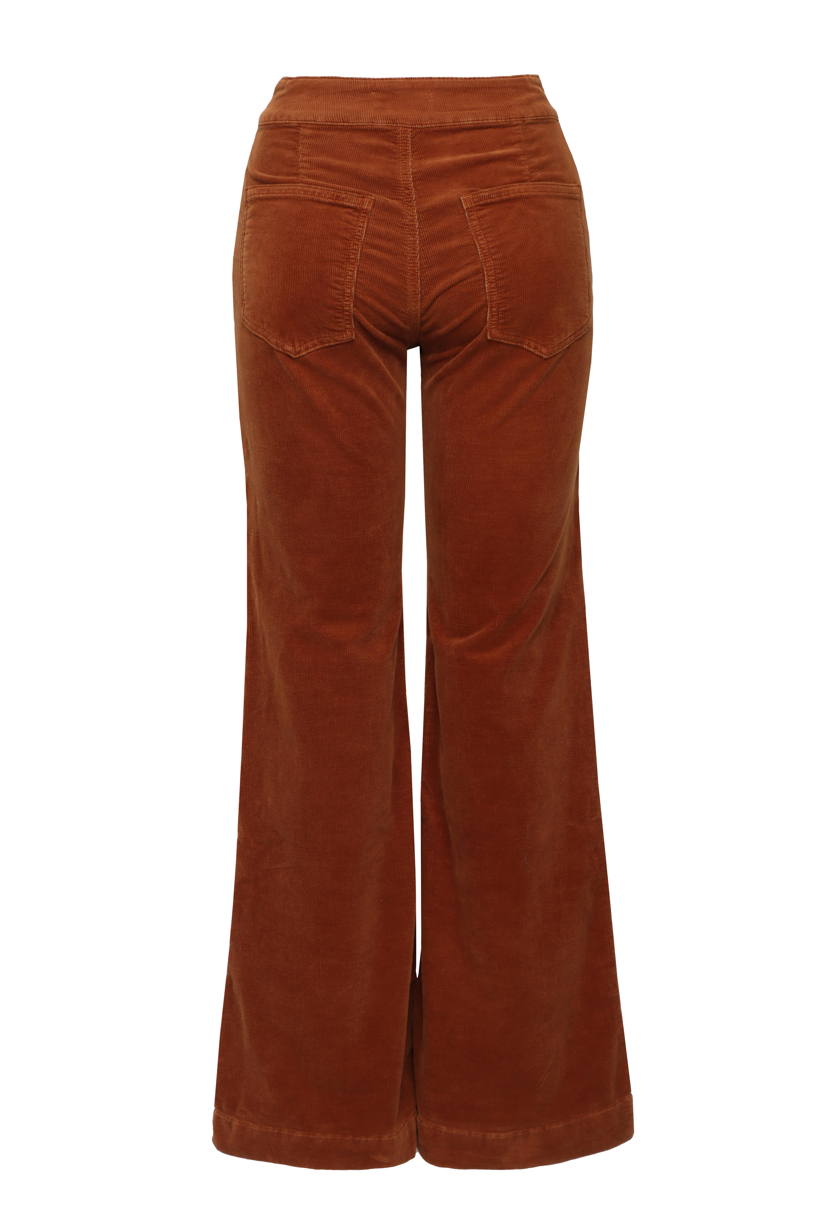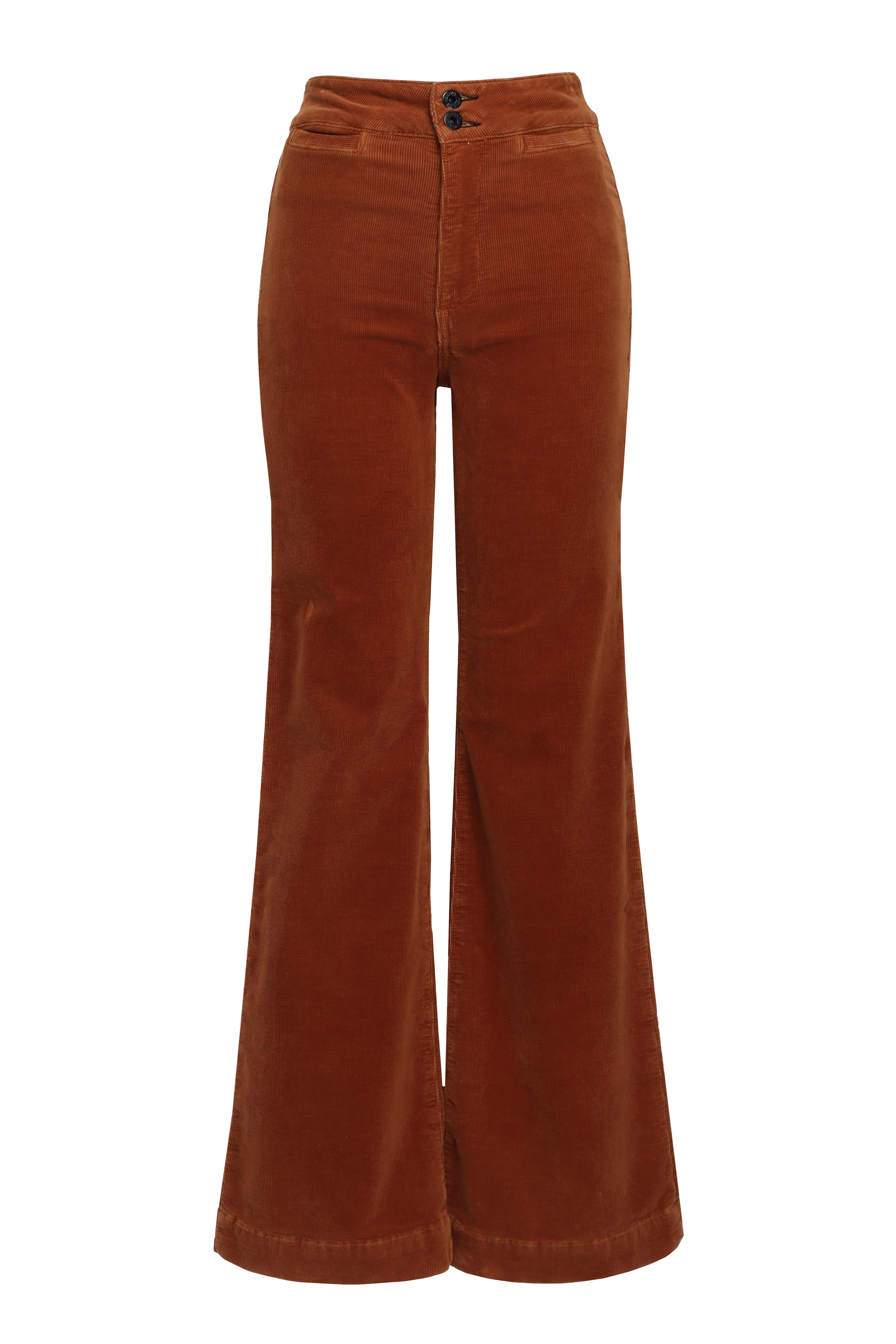 High rise. Double button closure. Zip fly. Front welt pockets. Back patch pockets. Straight silhouette. Corduroy fabrication. Made in LA. Ankle length. 98% cotton, 9% polyurethane. Machine washable.