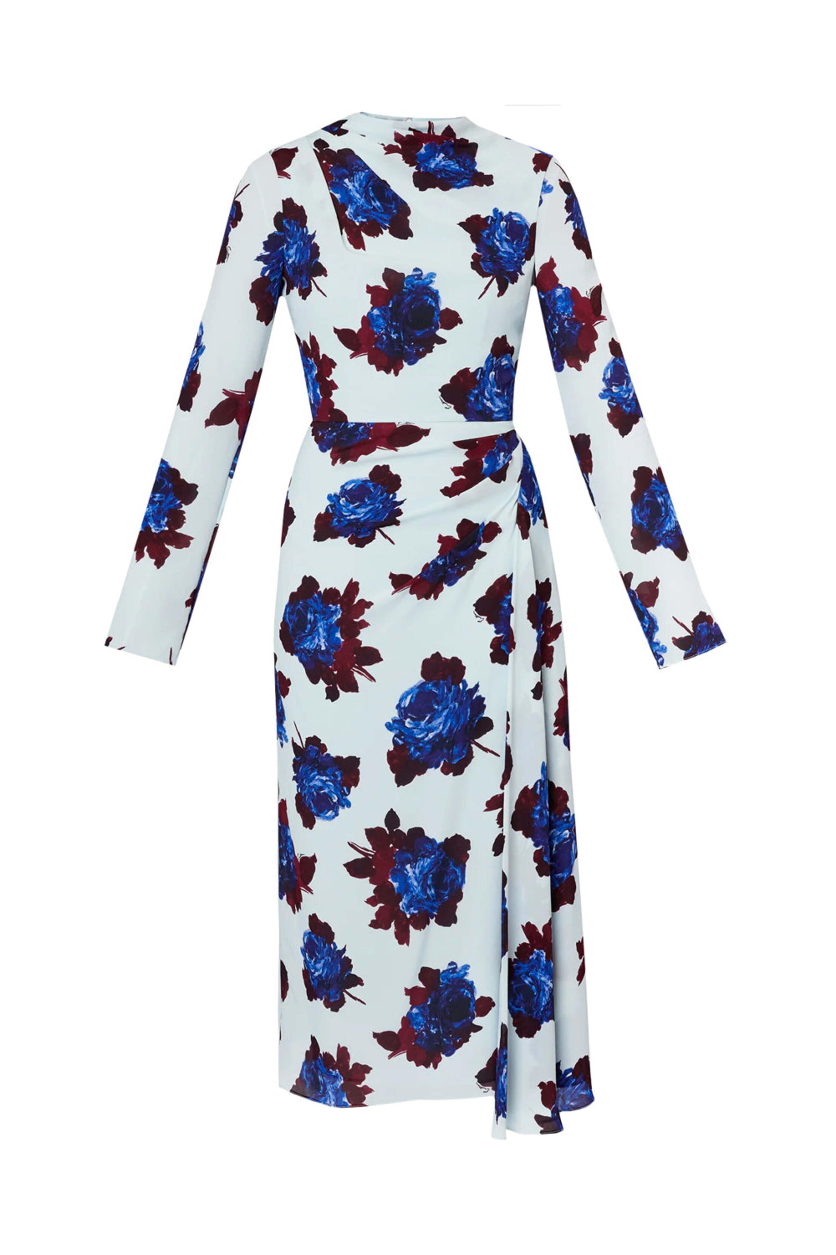 - ERDEM Ice Blue Rose Drape Midi Dress