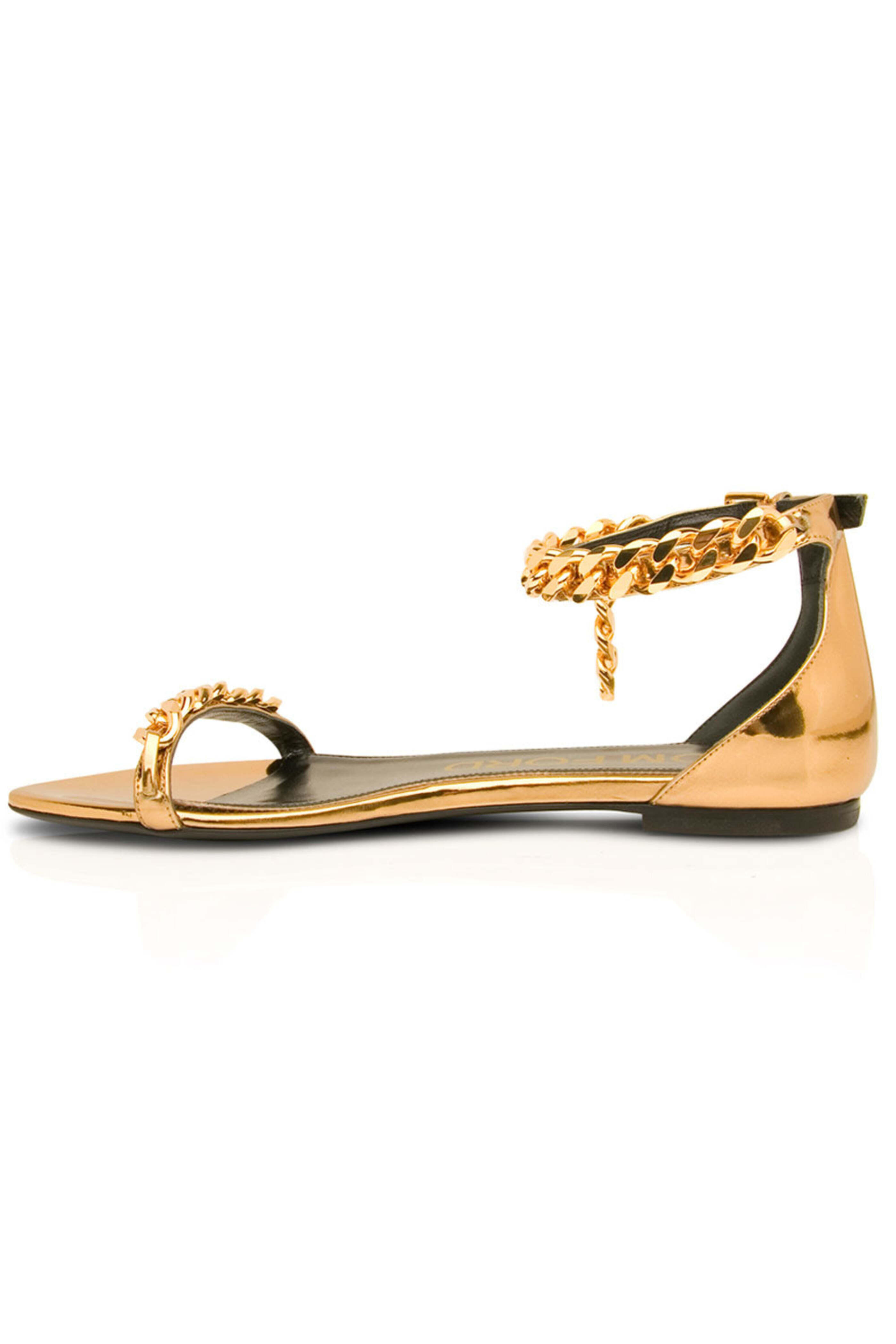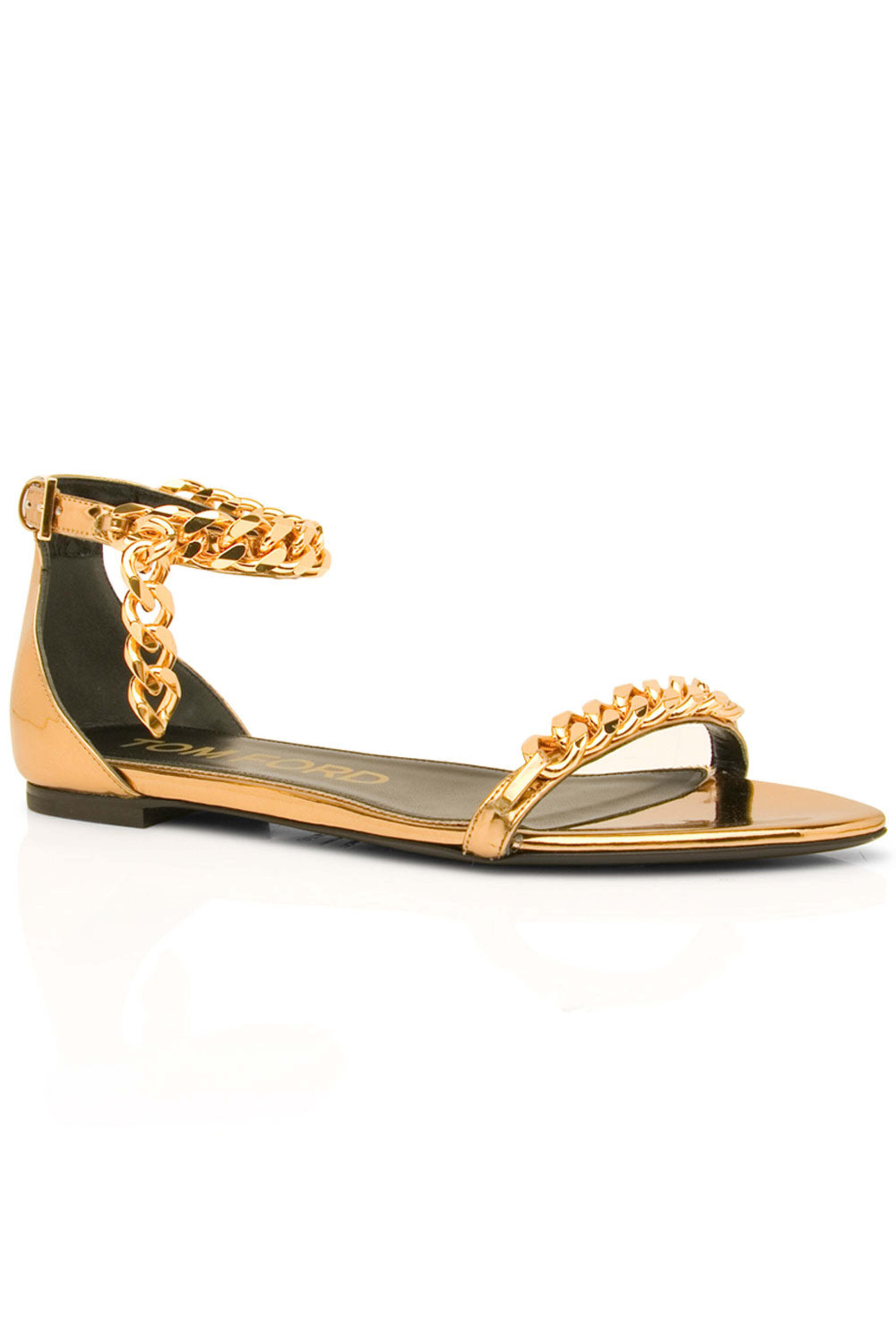 - Tom Ford Mirrored Calfskin Chain Sandal in Gold