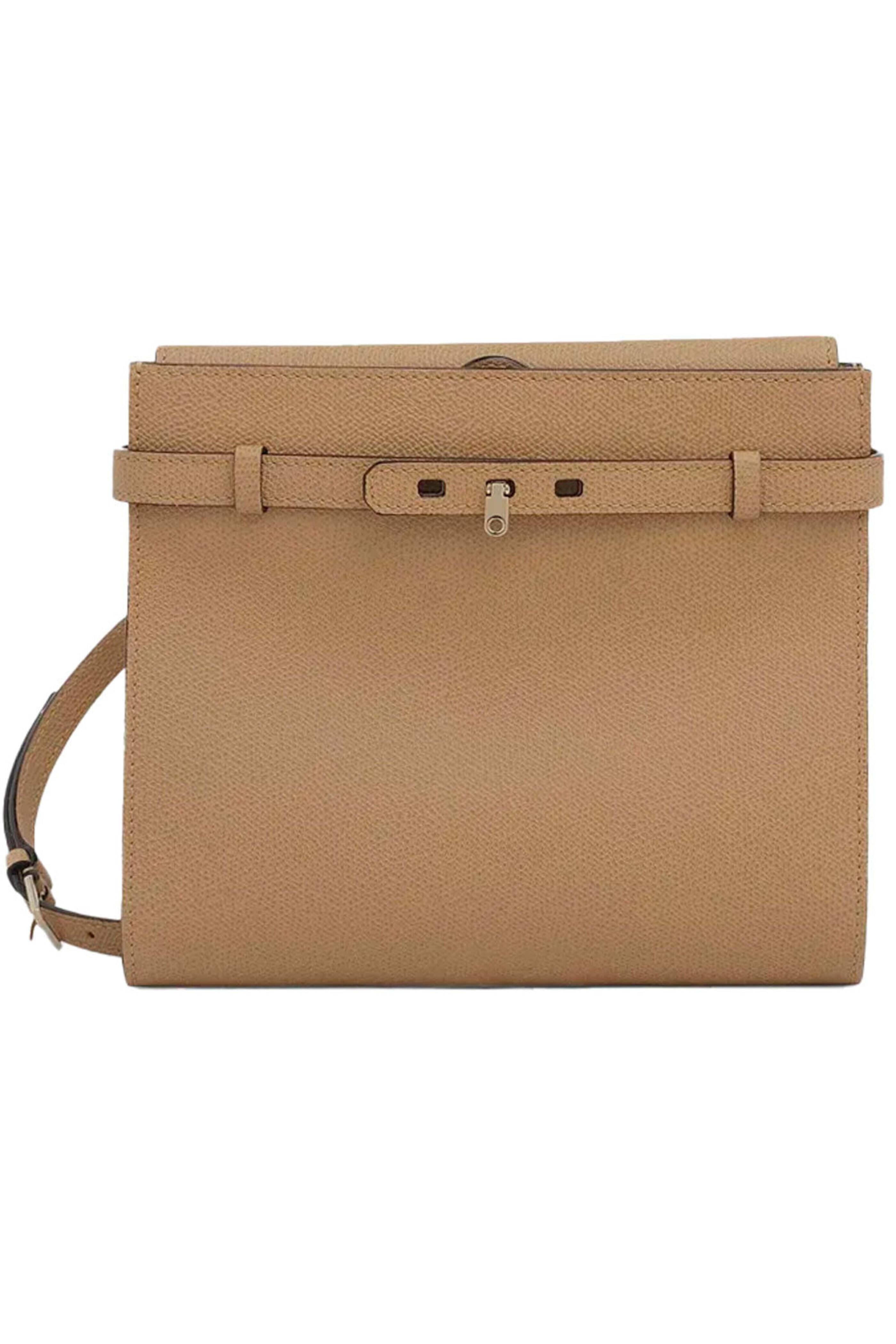 - Valextra B-Tracollina Crossbody Bag in Camel