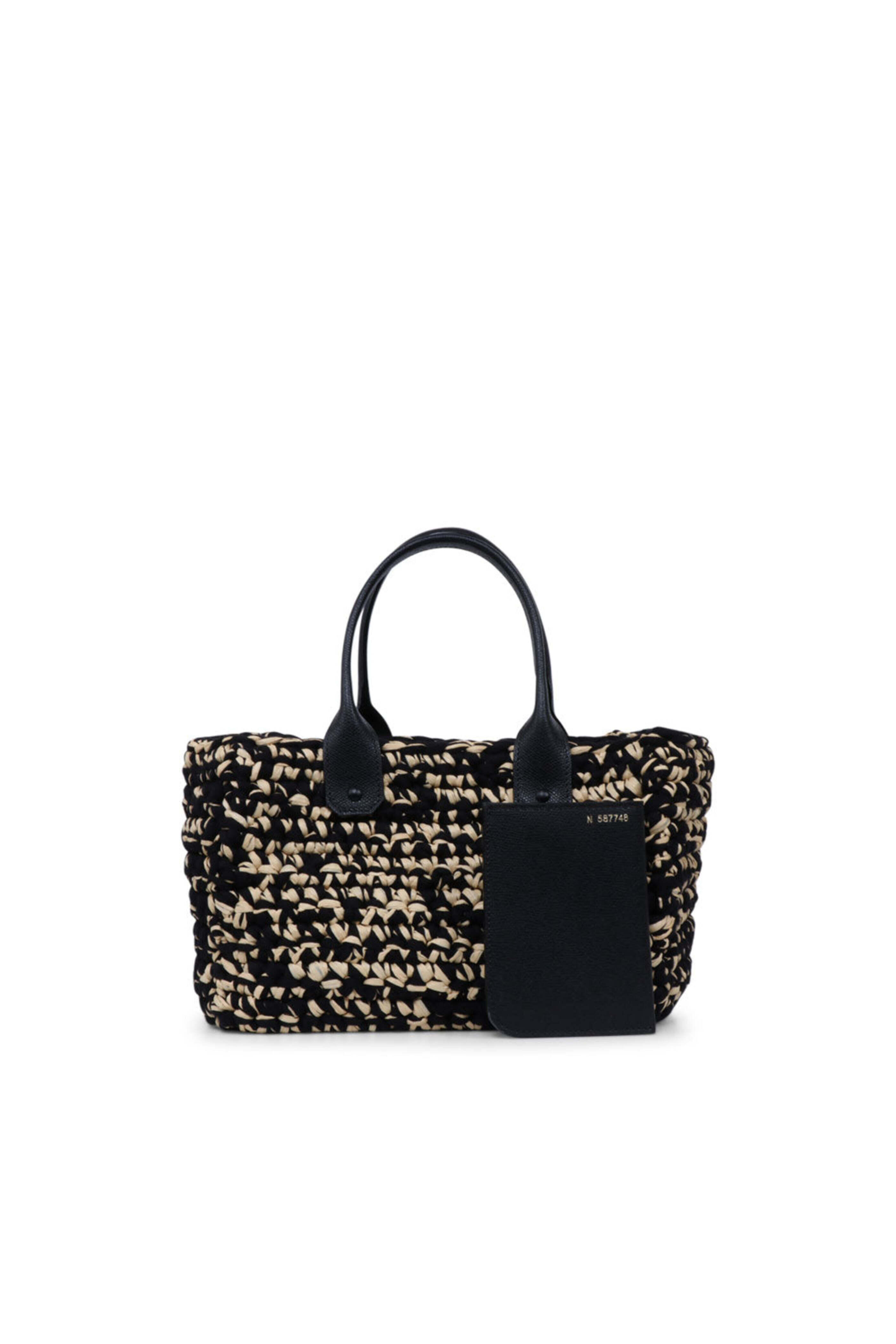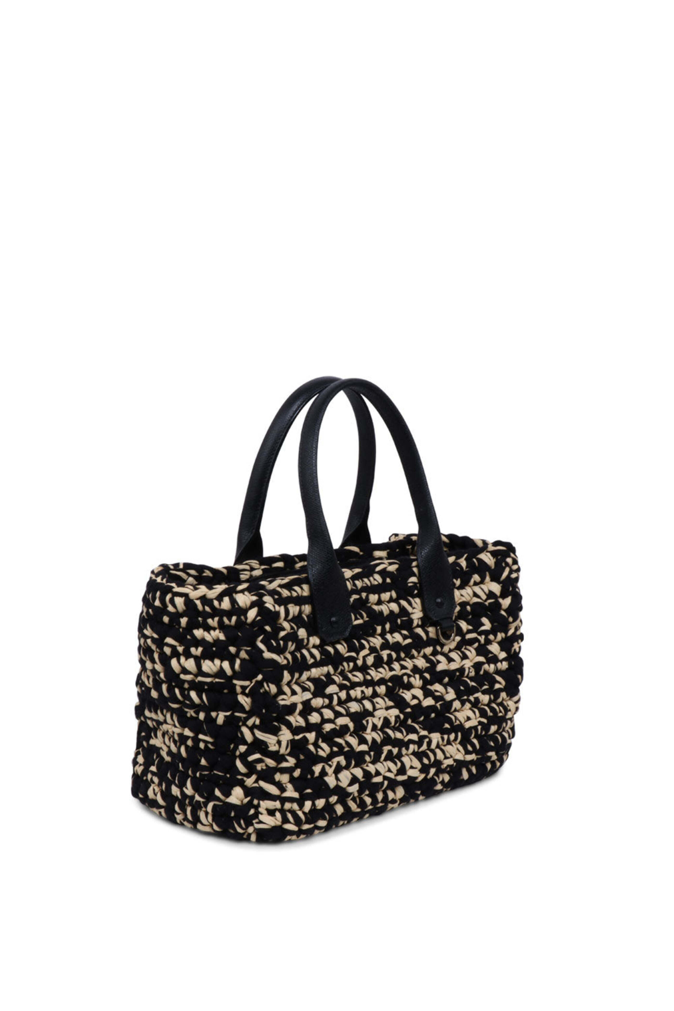 Mini Shopping Nero & Beige Raffia Tote