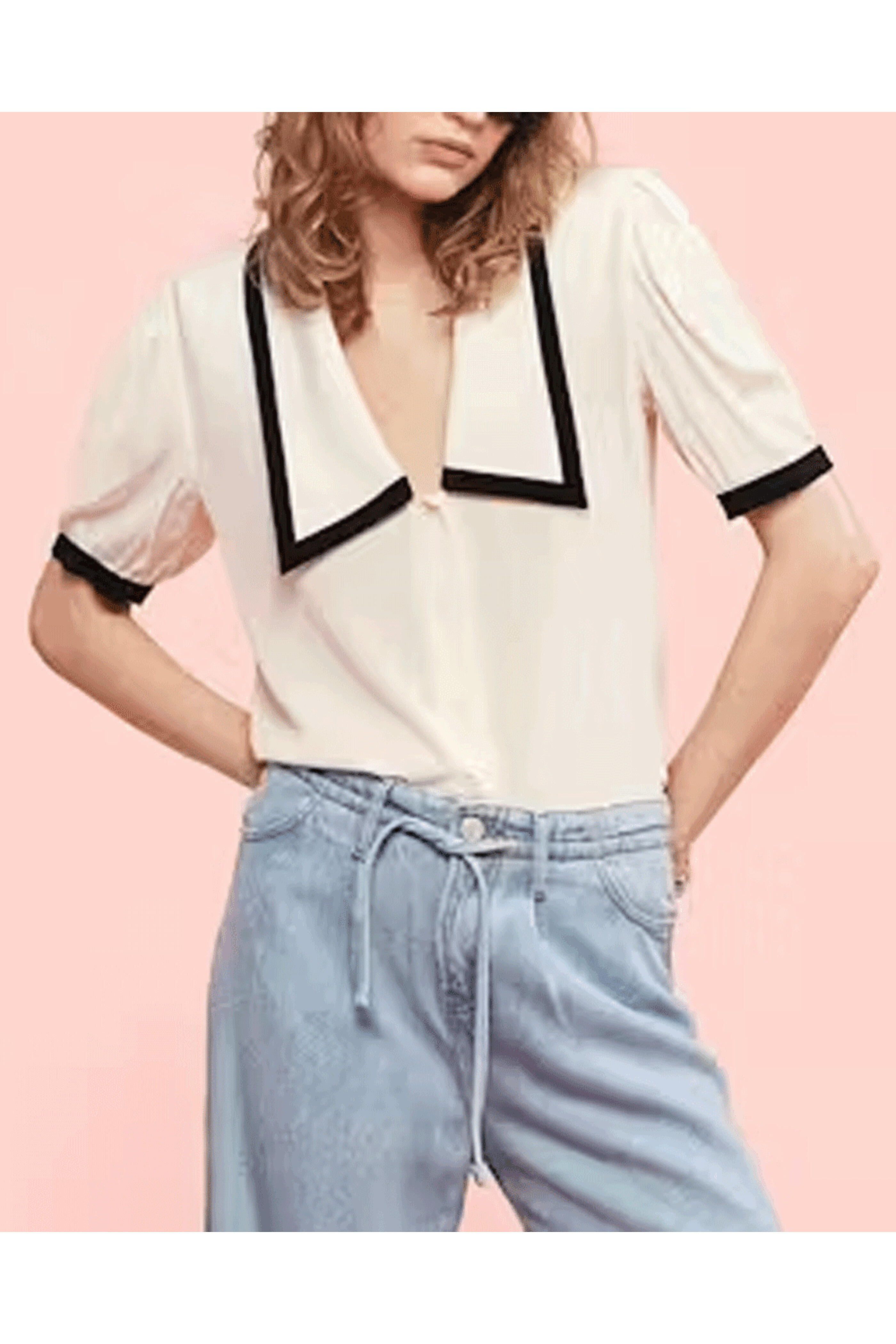 - Frame Denim Sailor Blouse in Cream Multicolor