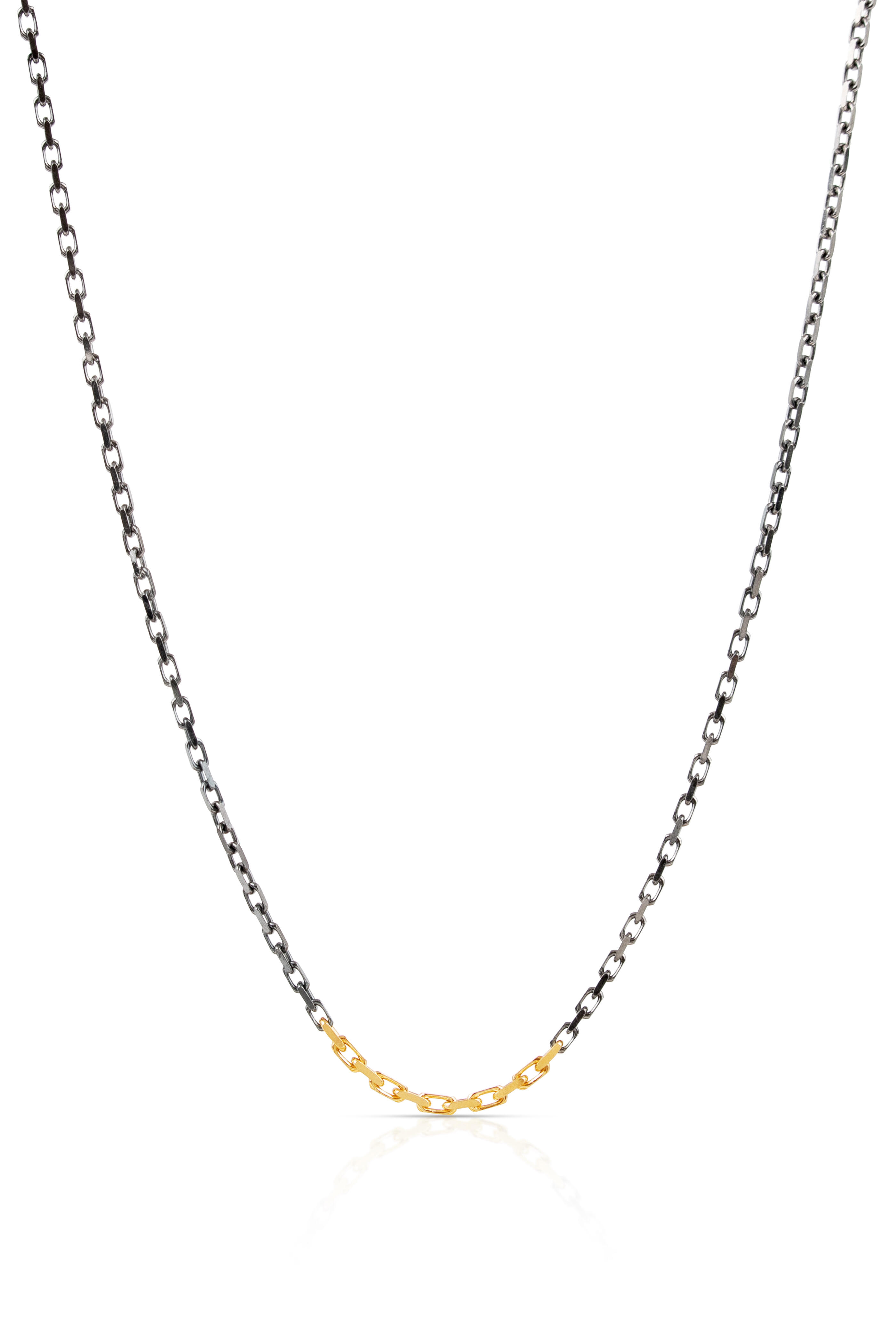 14k gold. Sterling silver. Gold section of links. Chain links. Lobster claw clasps. Handcrafted in L.A.. Length: 18”.