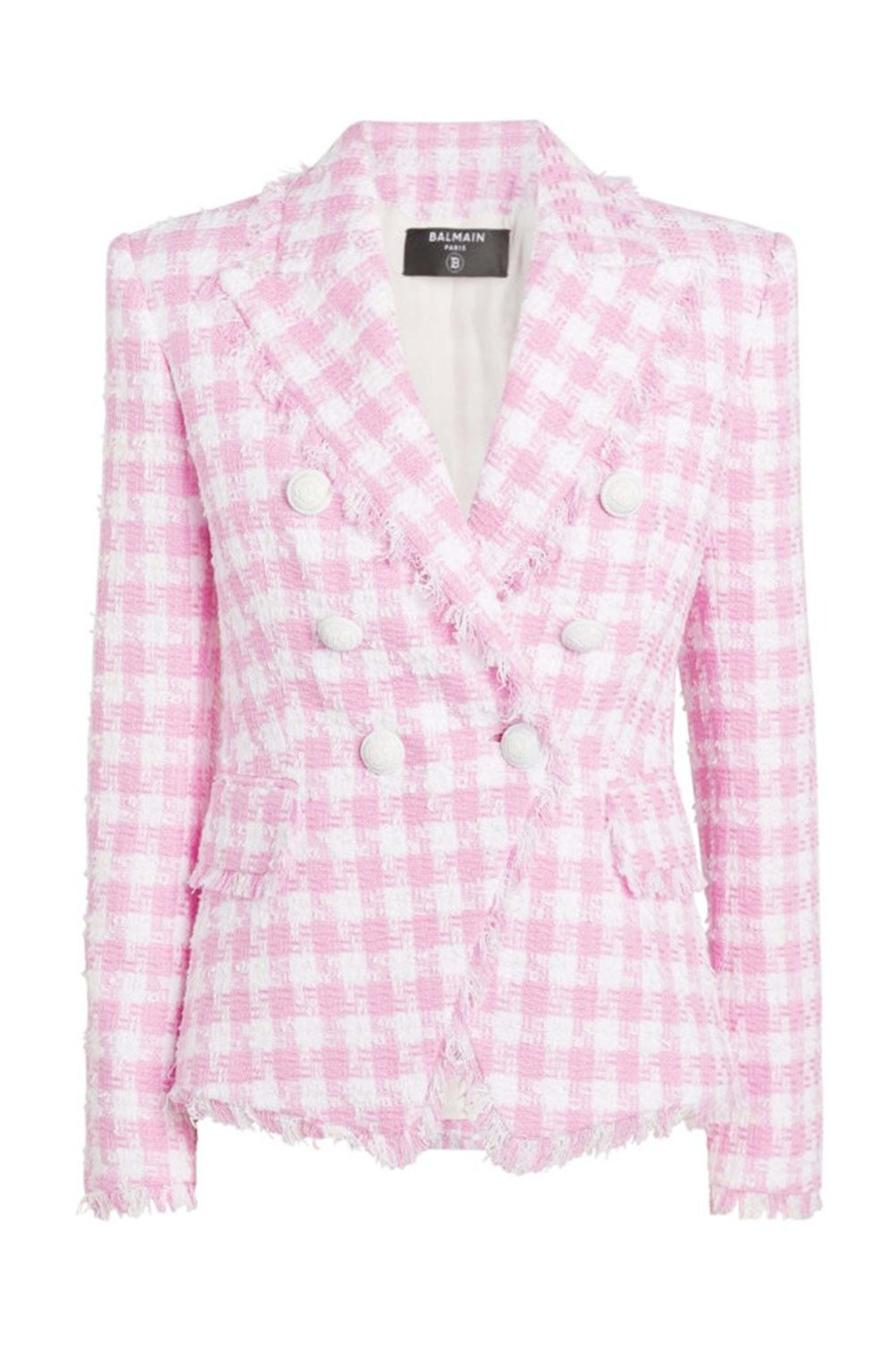 - Balmain Blanc Rose Gingham Tweed Blazer