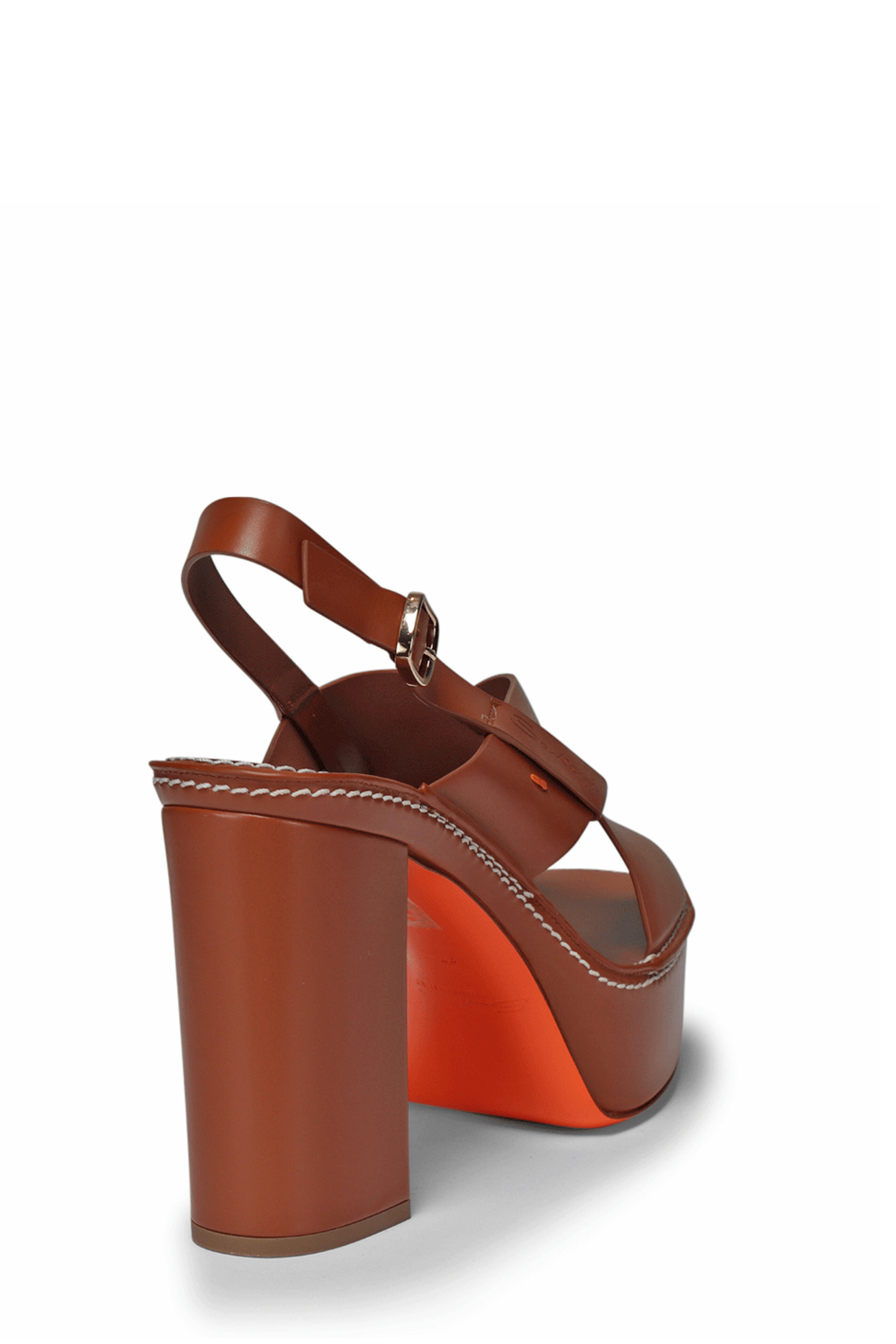 Leather upper. Open toe. Adjustable slingback strap. Criss-cross vamp. White tonal stitching. Leather lining. Signature orange leather sole. Made in Italy. Heel measurement: 70mm. Platform measurement: 15mm.