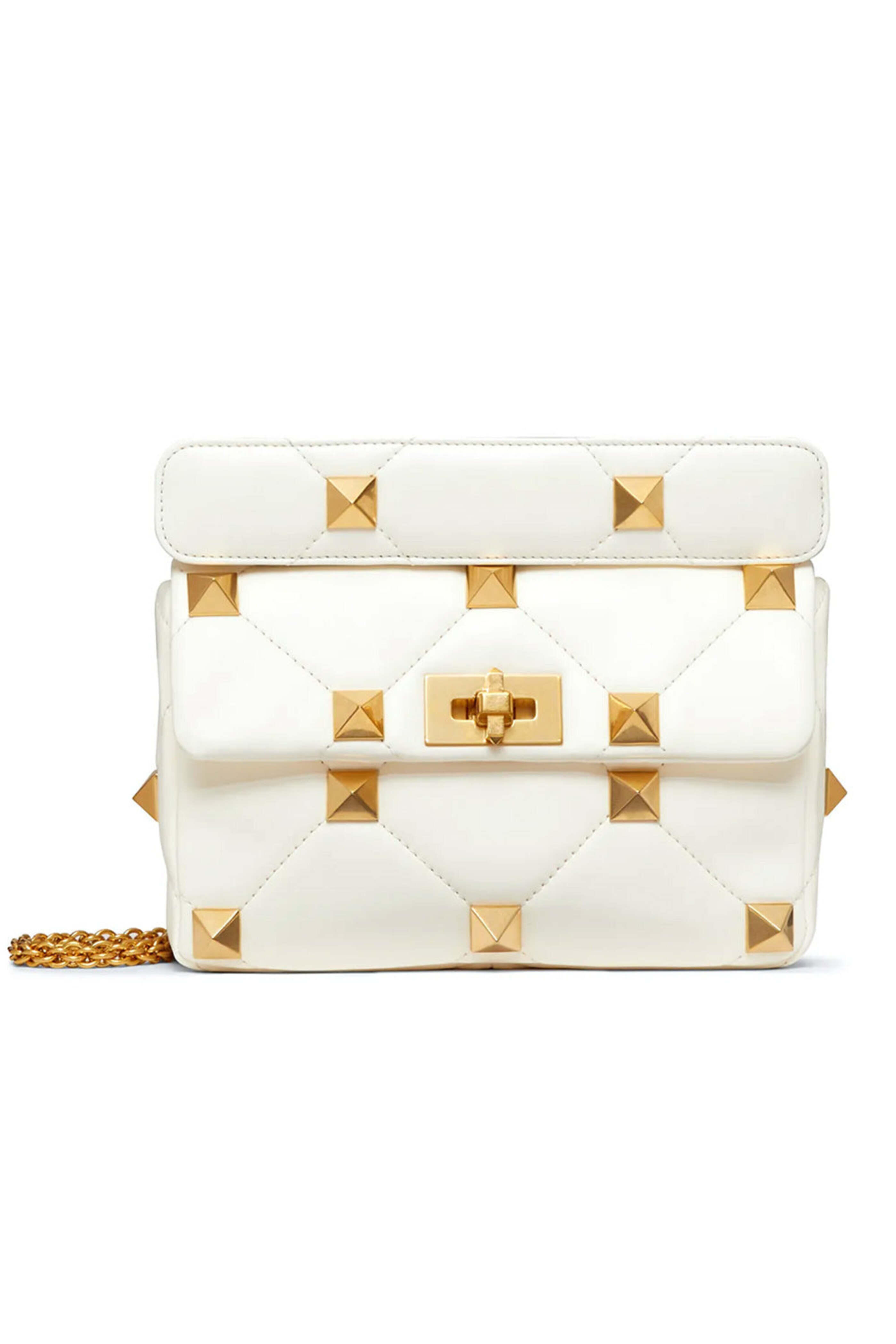- Valentino Garavani Ivory Roman Stud Padded Shoulder Bag