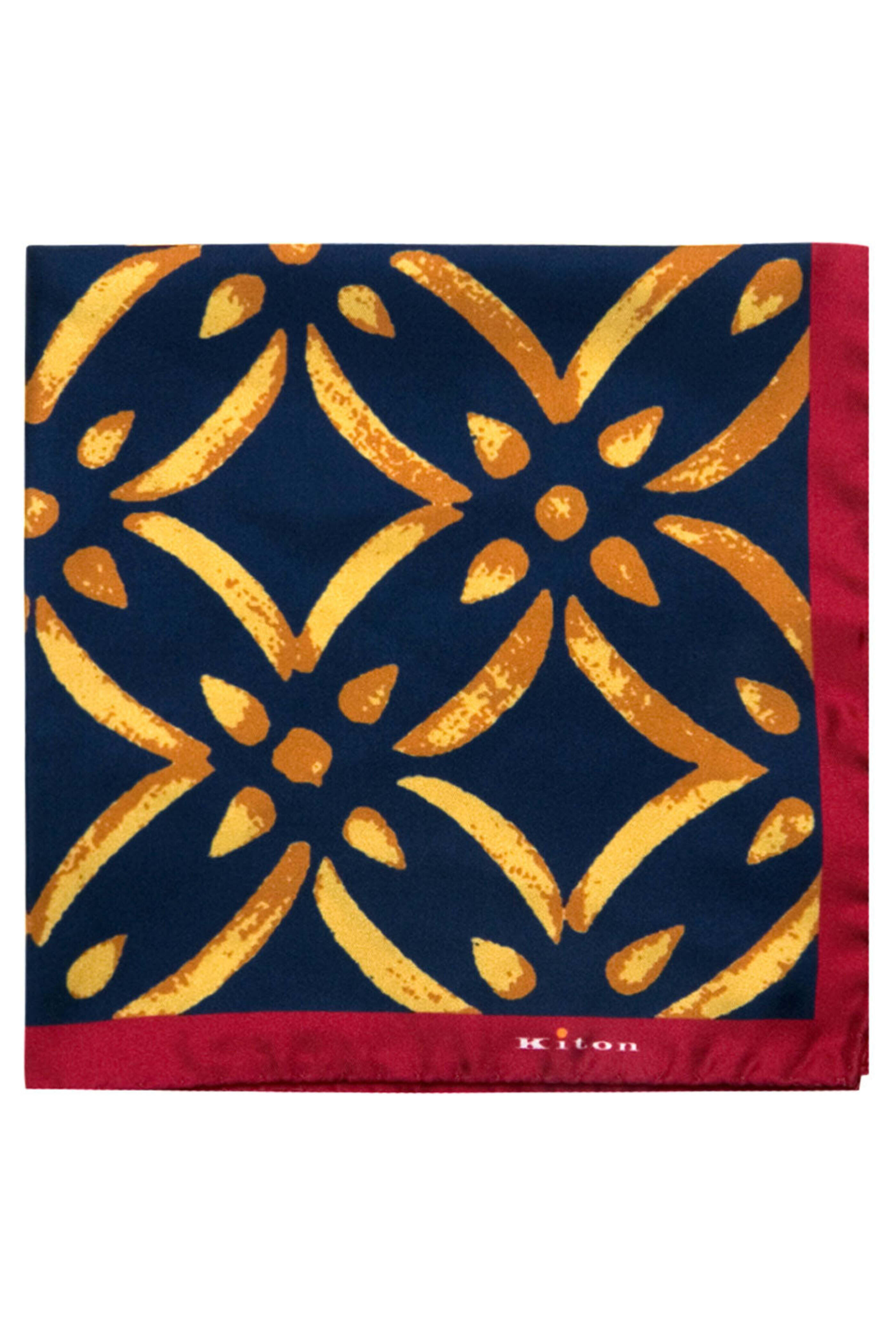 • Kiton Navy and Gold Brush Stroke Pocket Square