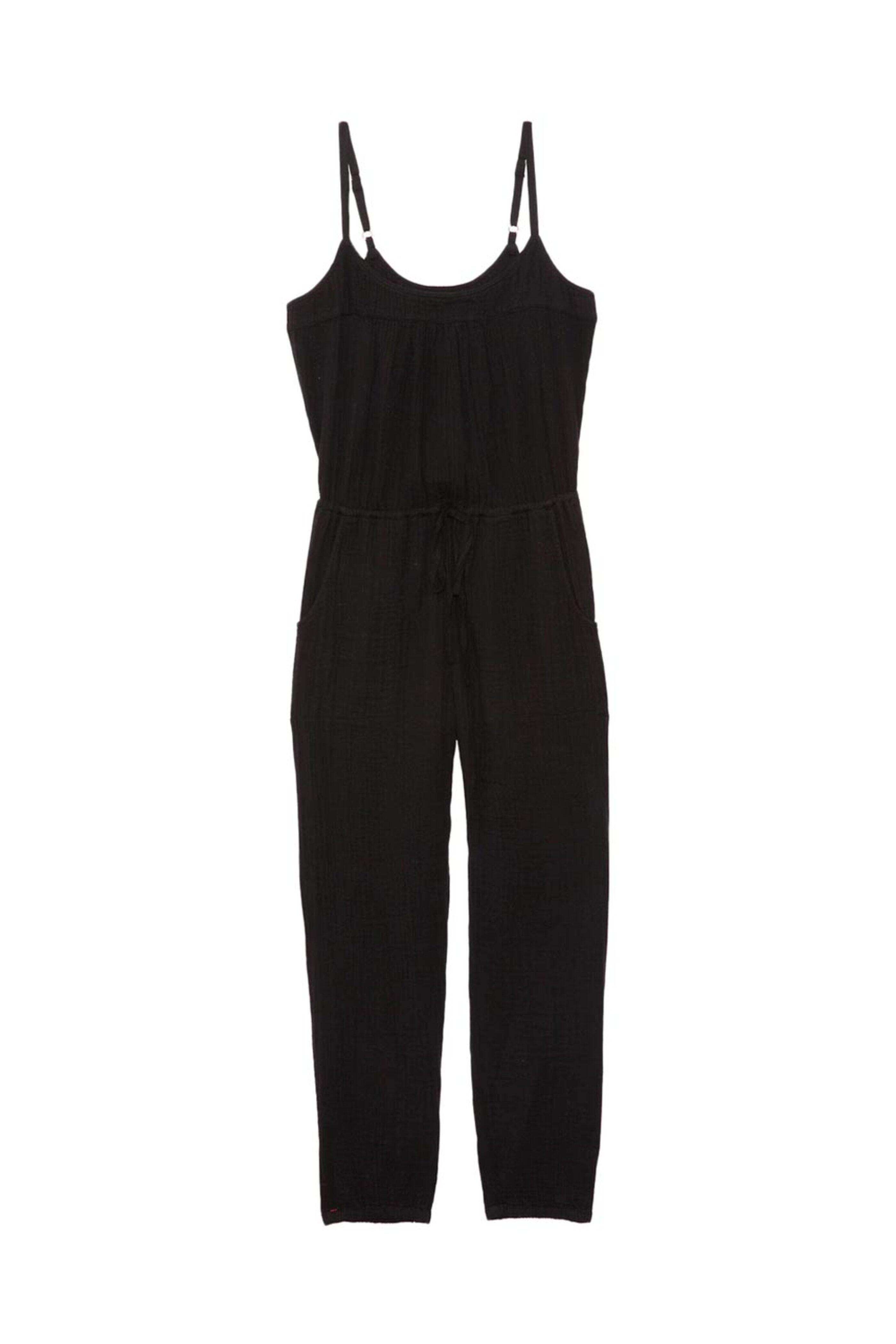 - Xirena Black Sleeveless Jayden Jumpsuit Scoop neck Scoop back Sleeveless; adjustable shoulder straps Drawstring waist Side slip pockets Relaxed fit Cropped length Chelsea gauze fabrication 100% cotton Made in LA