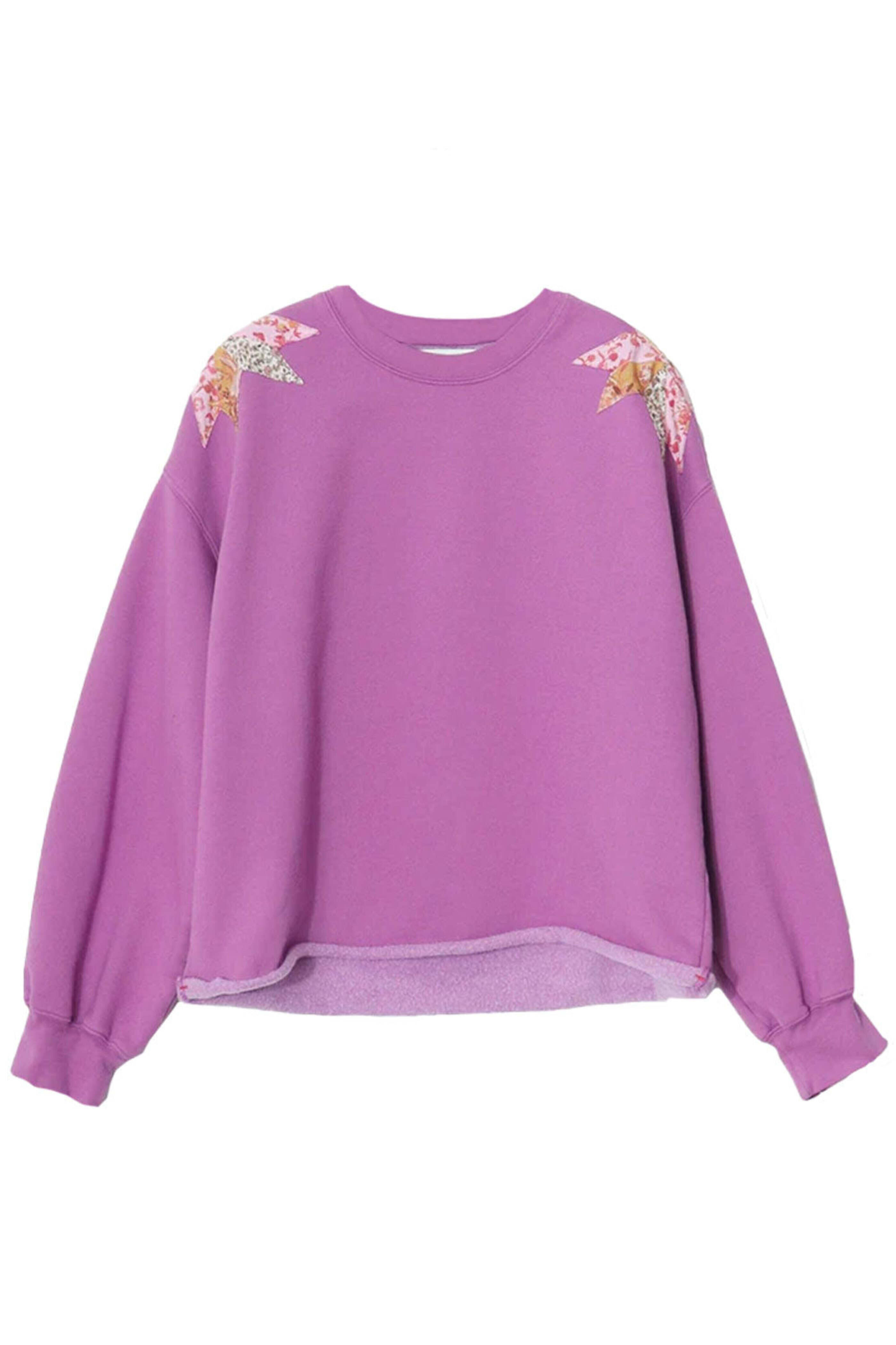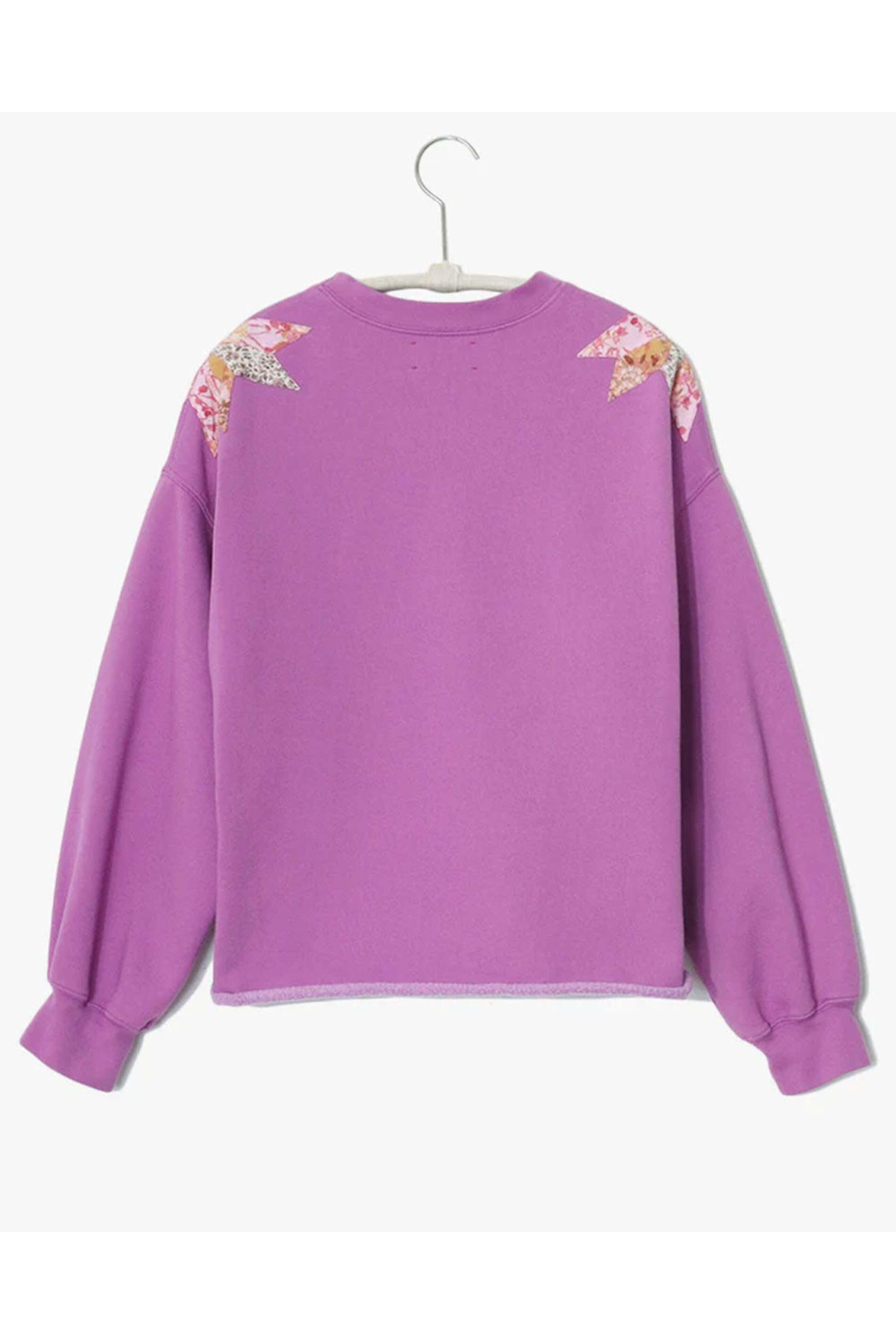 Xirena Wisteria Estella Sweatshirt. Crewneck. Dropped shoulders; applique detail. Long sleeves. Cropped raw hem. Relaxed fit. 50% Cotton, 50% Polyester.