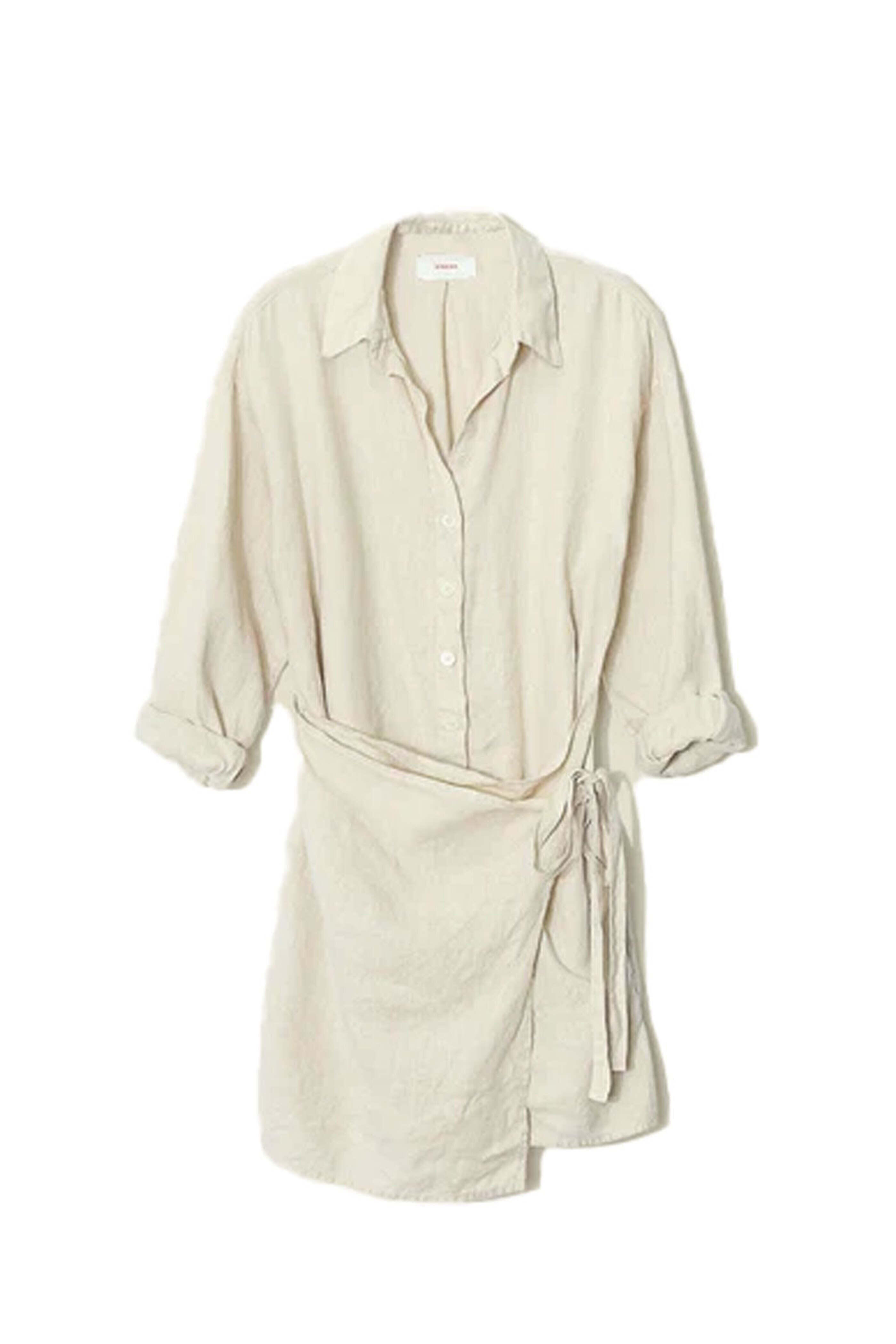 Xirena Winds Fiona Dress. Spread collar. Long sleeves; button cuff. Button front closure. Box pleat at back. Relaxed fit. 100% linen.