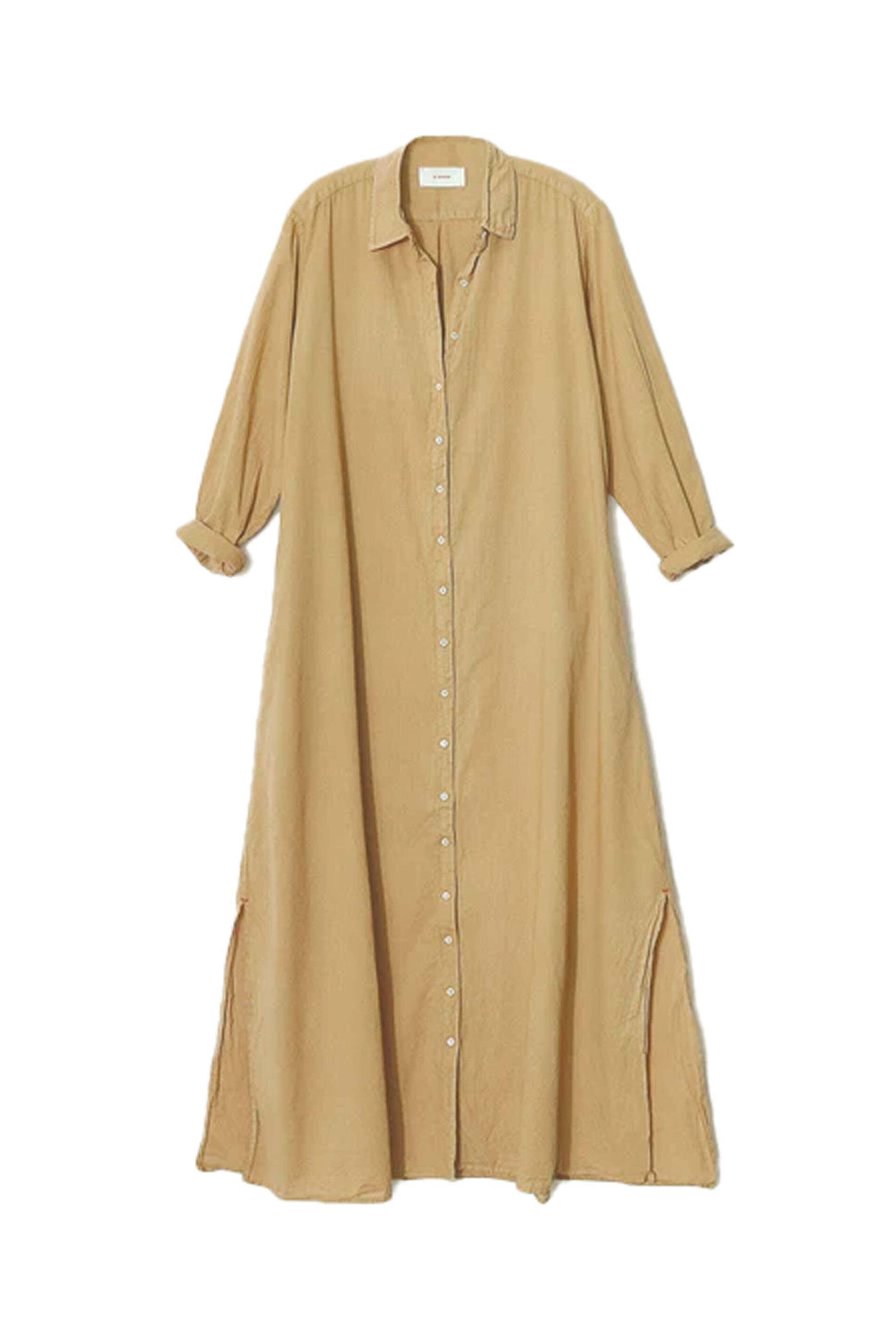 Xirena Hazelnut Boden Dress. Point collar. Button front closure. Long Sleeve. Side seam pockets. Relaxed fit. Maxi. 100% Cotton.