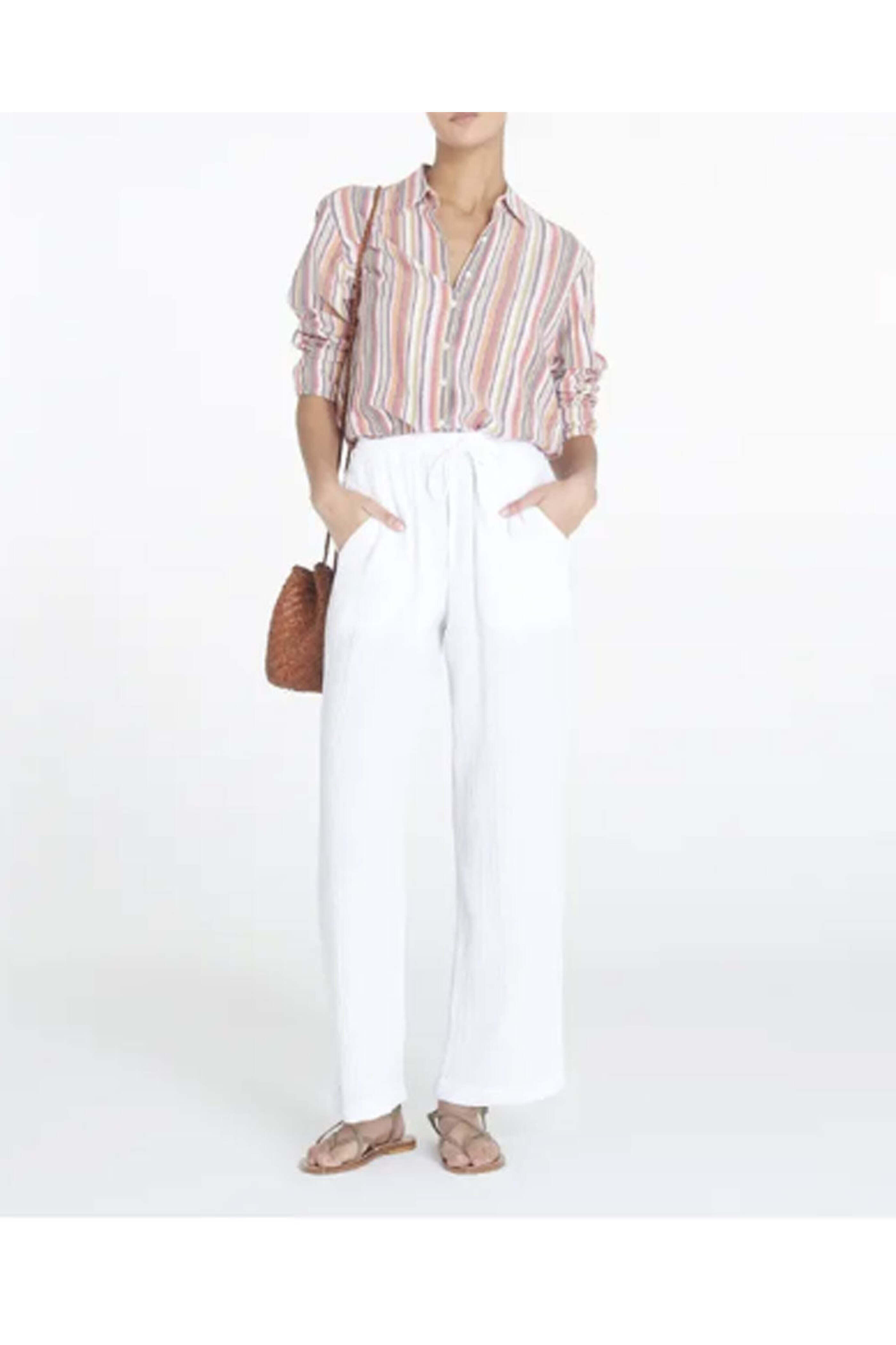 Xirena White Dyaln Pant . Wide-leg . Side pockets . Elasticated waist . Drawstring for tightening . Relaxed fit . Made in LA . 100% cotton .