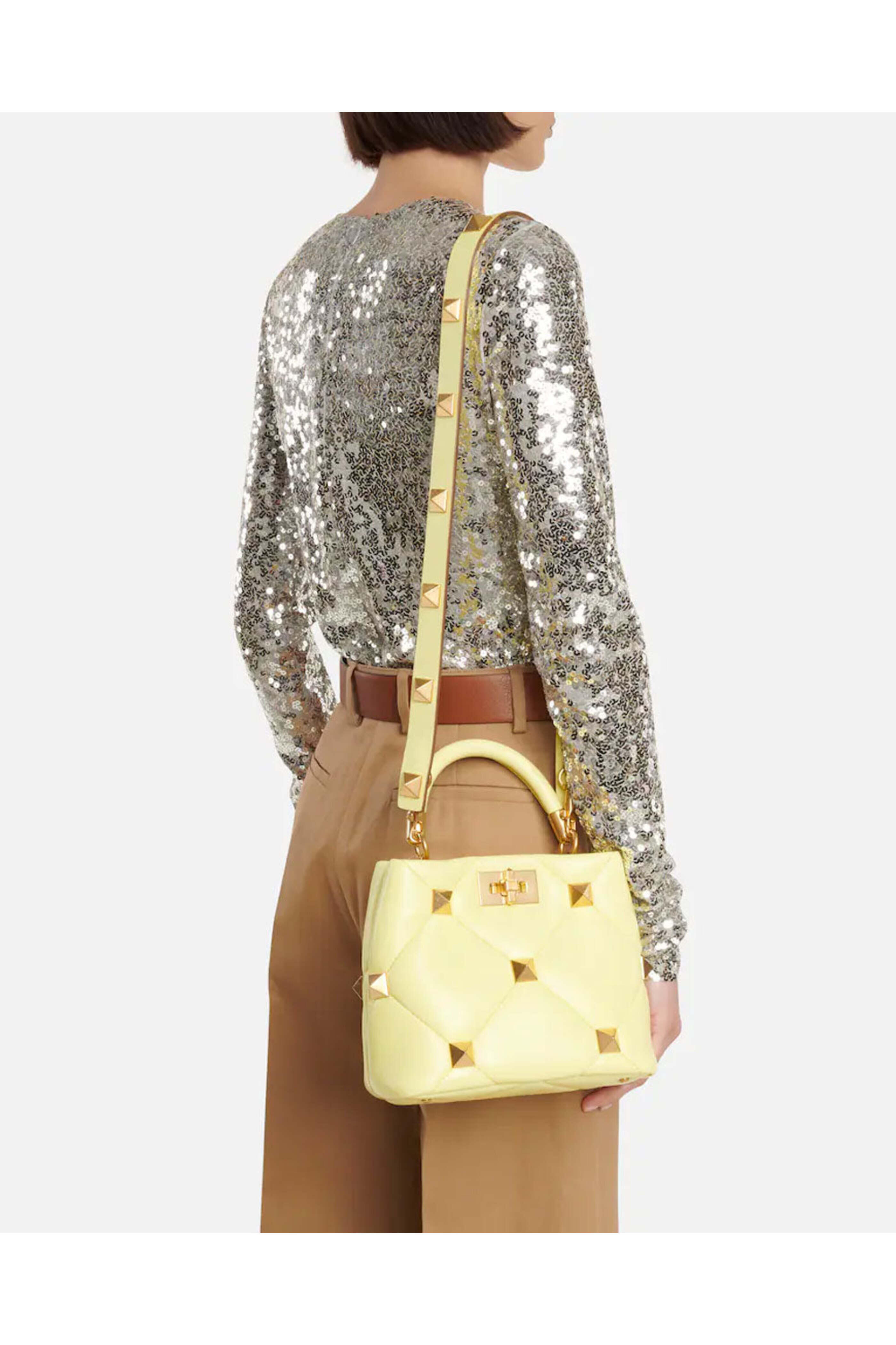 - Valentino Garavani Roman Stud Top Handle Bag in Lime Sorbet