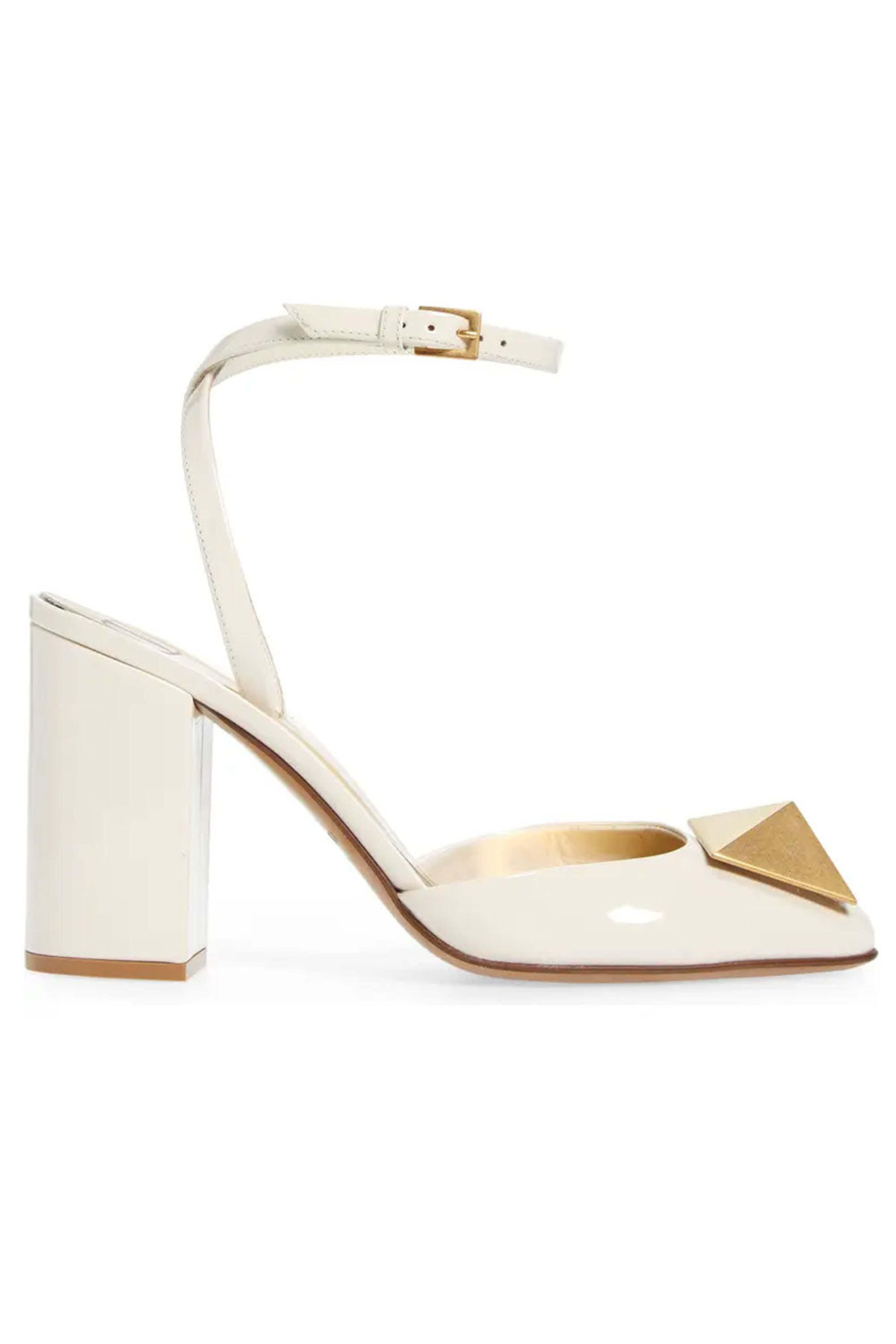 - Valentino Garavani Single Stud Block Heel in Light Ivory