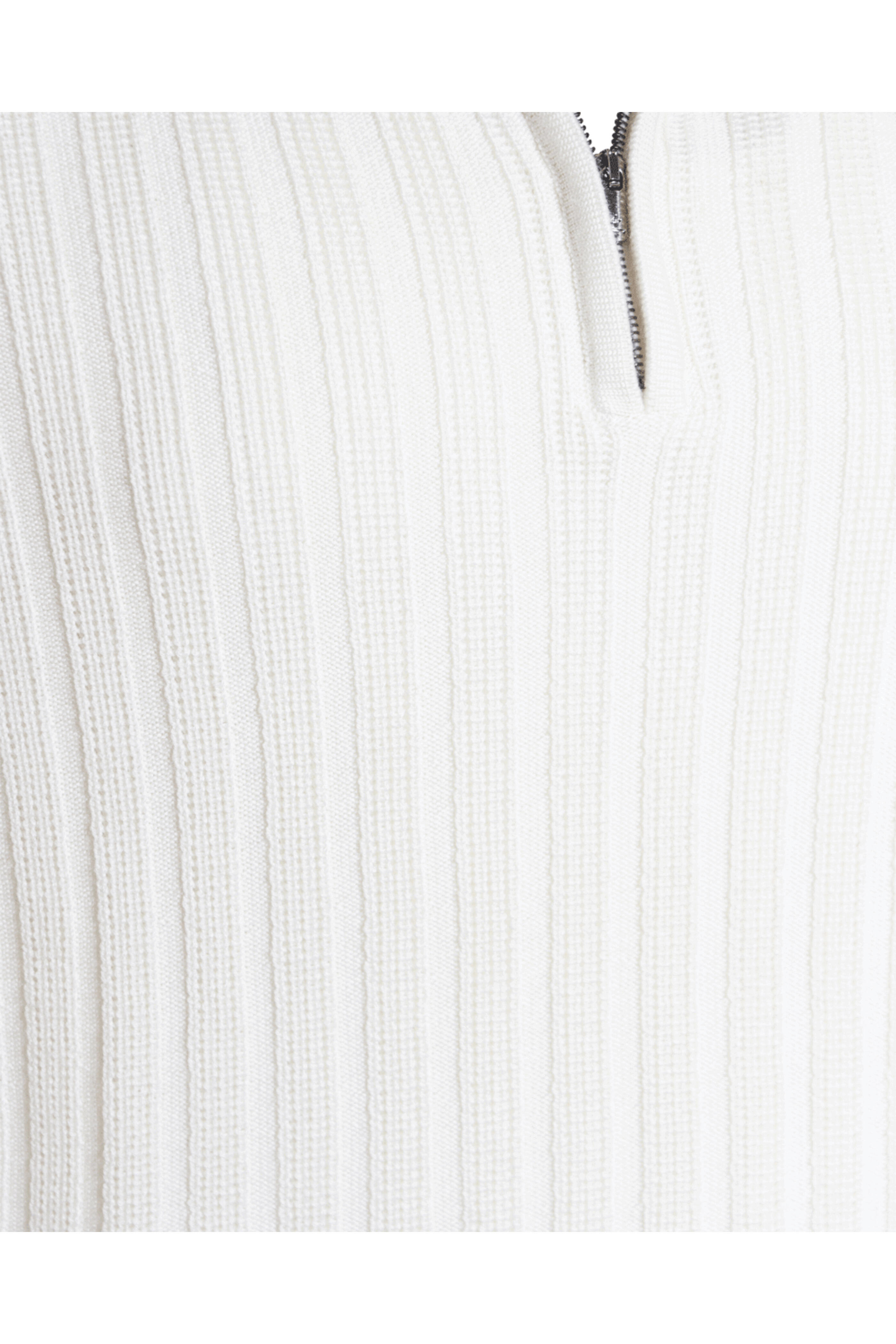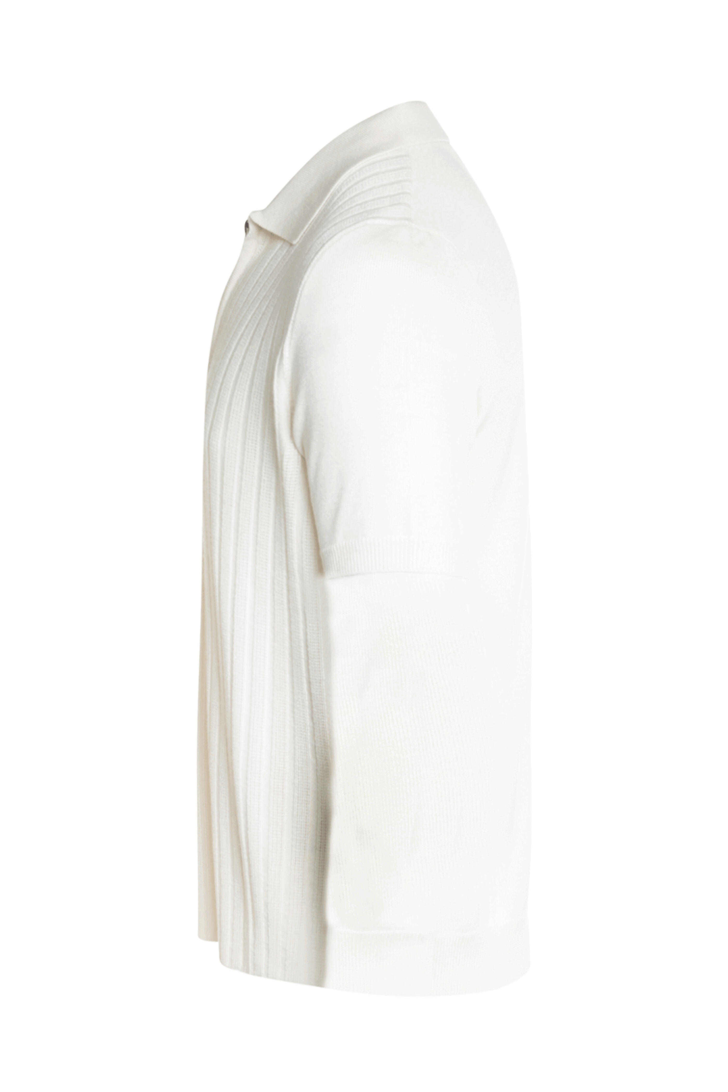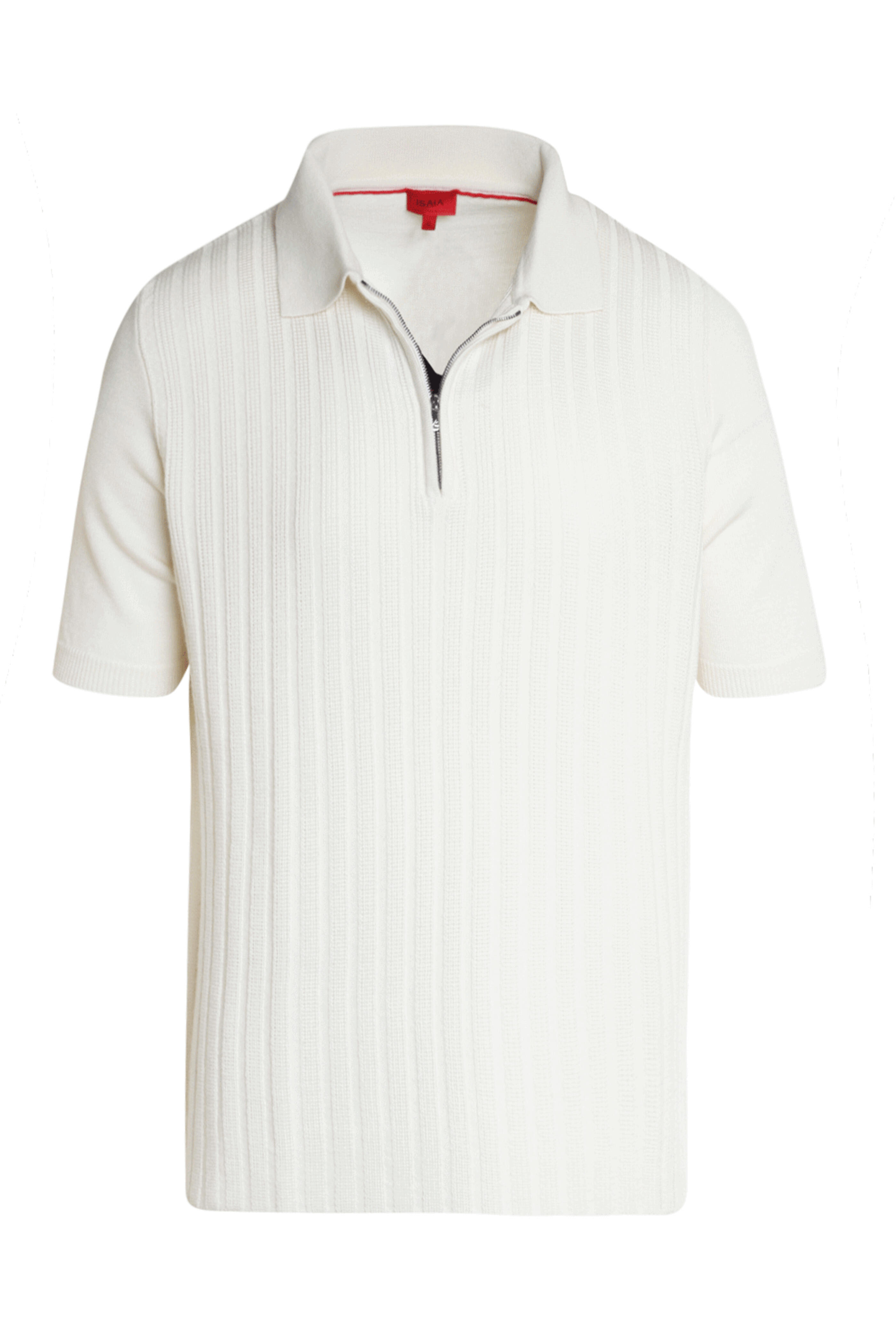 - Isaia White Brioche Knit Short Sleeve Zip Polo