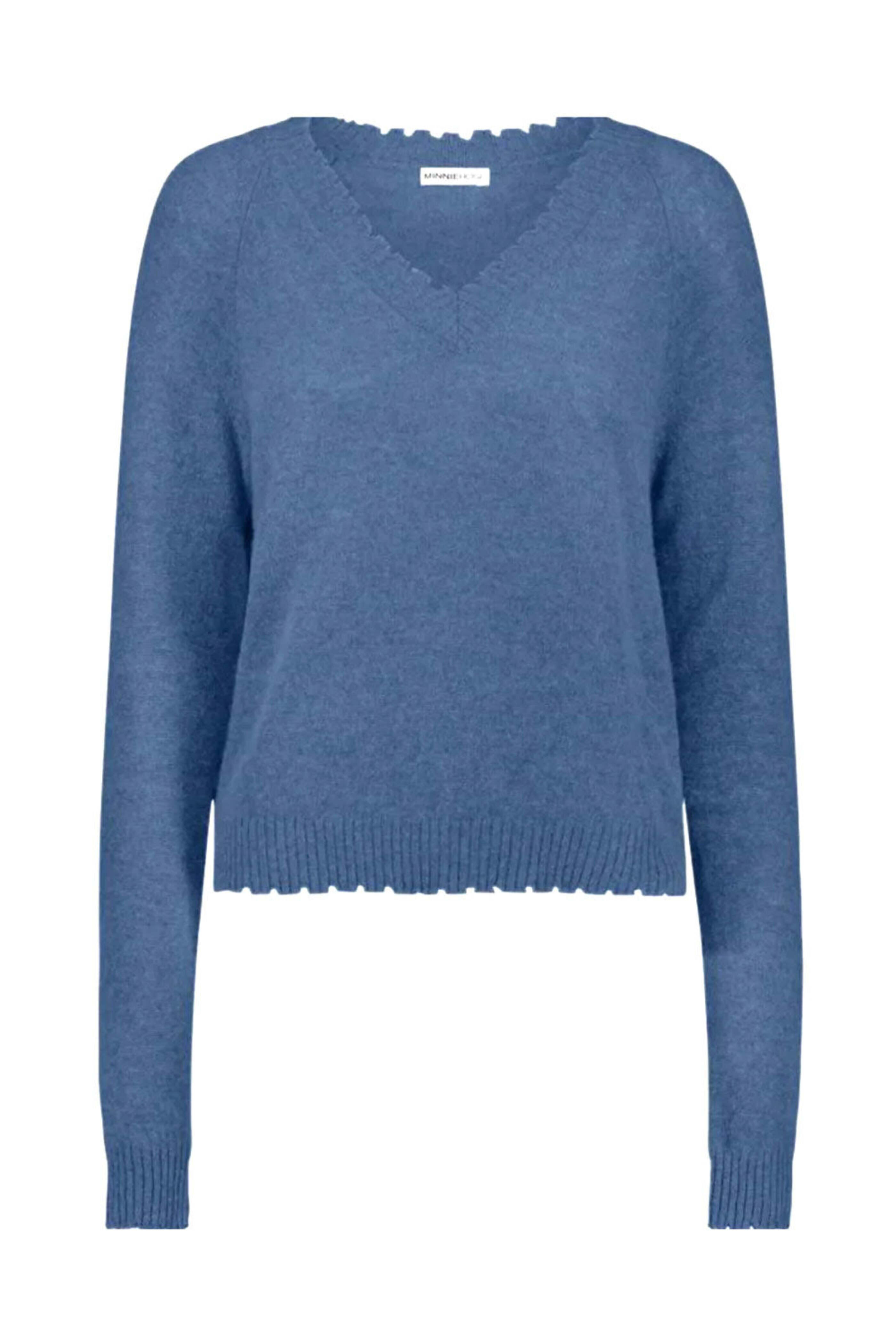 - Minnie Rose Harbour Blue Distressed V Neck Cashmere Sweater