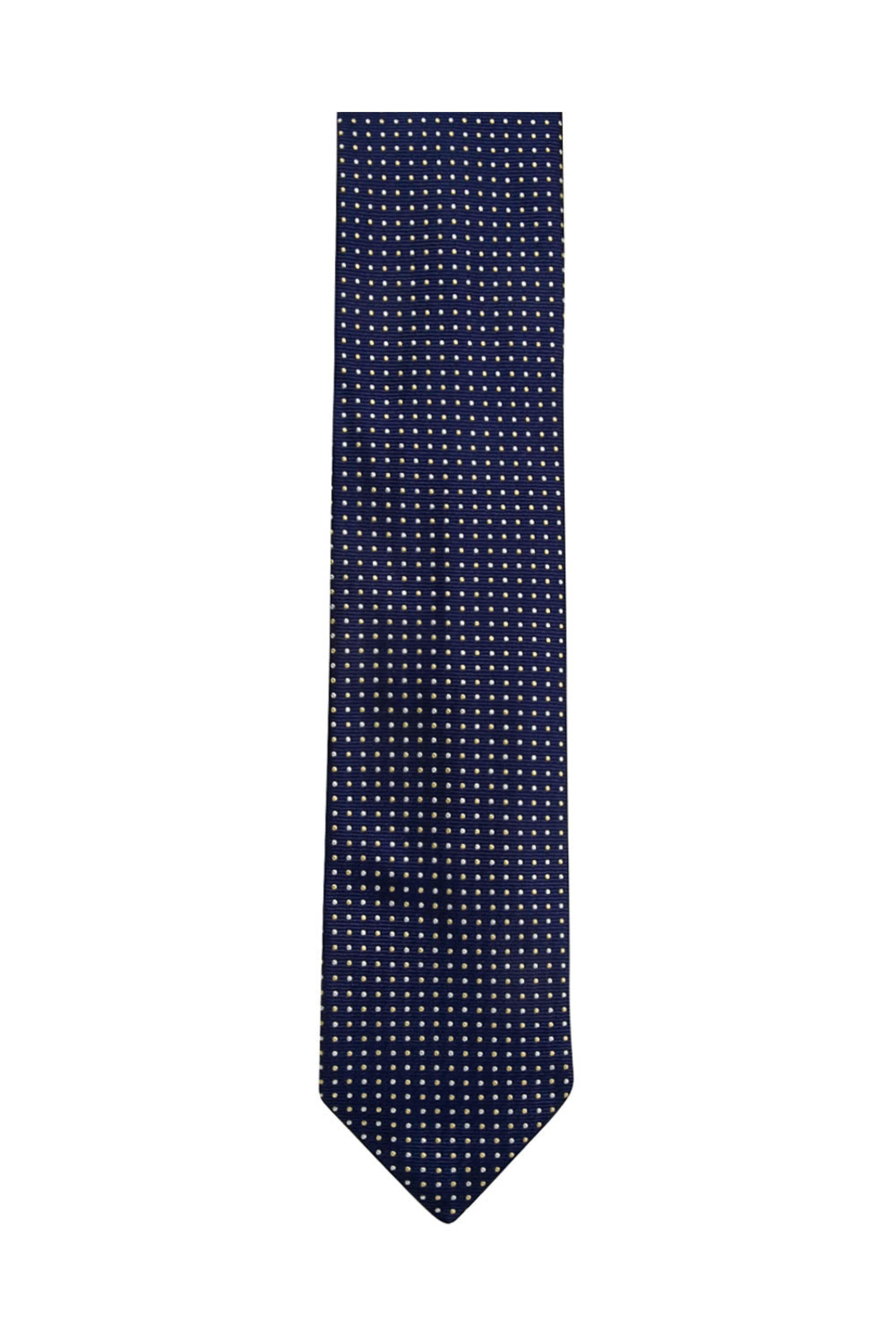 - Ermenegildo Zegna Blue with Yellow and White Dotted Tie 58 long 3.25 wide 100% silk Made in Italy