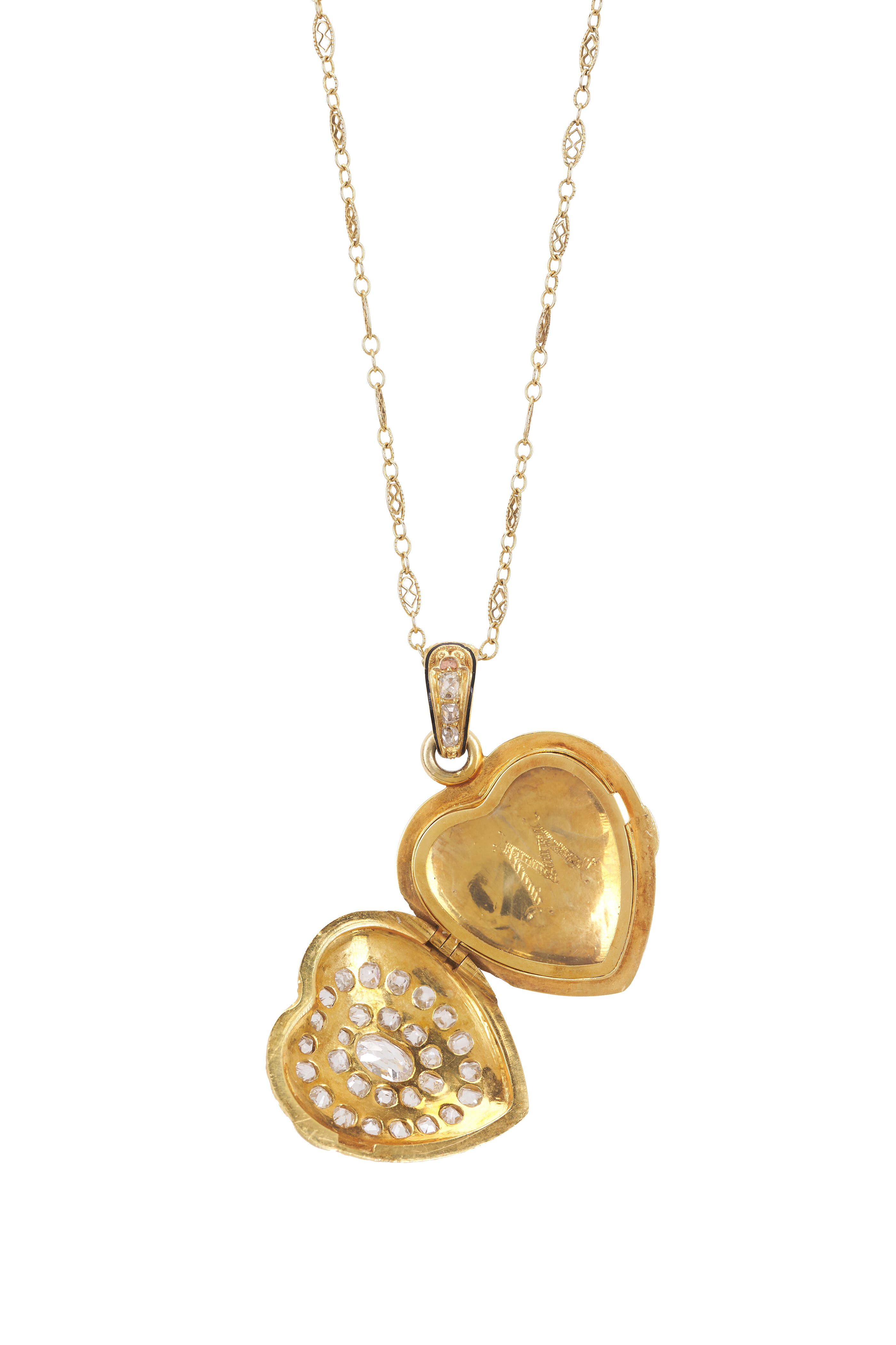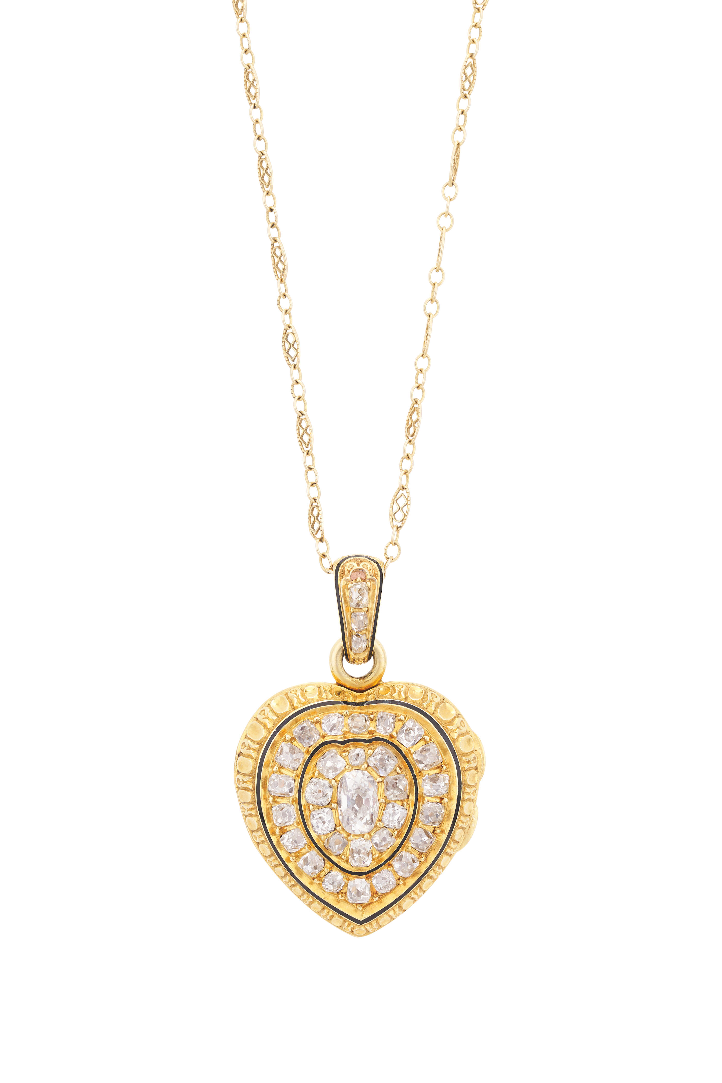 14k Yellow Gold. Black Enamel. 3 ct Old Mine Diamond. 30".