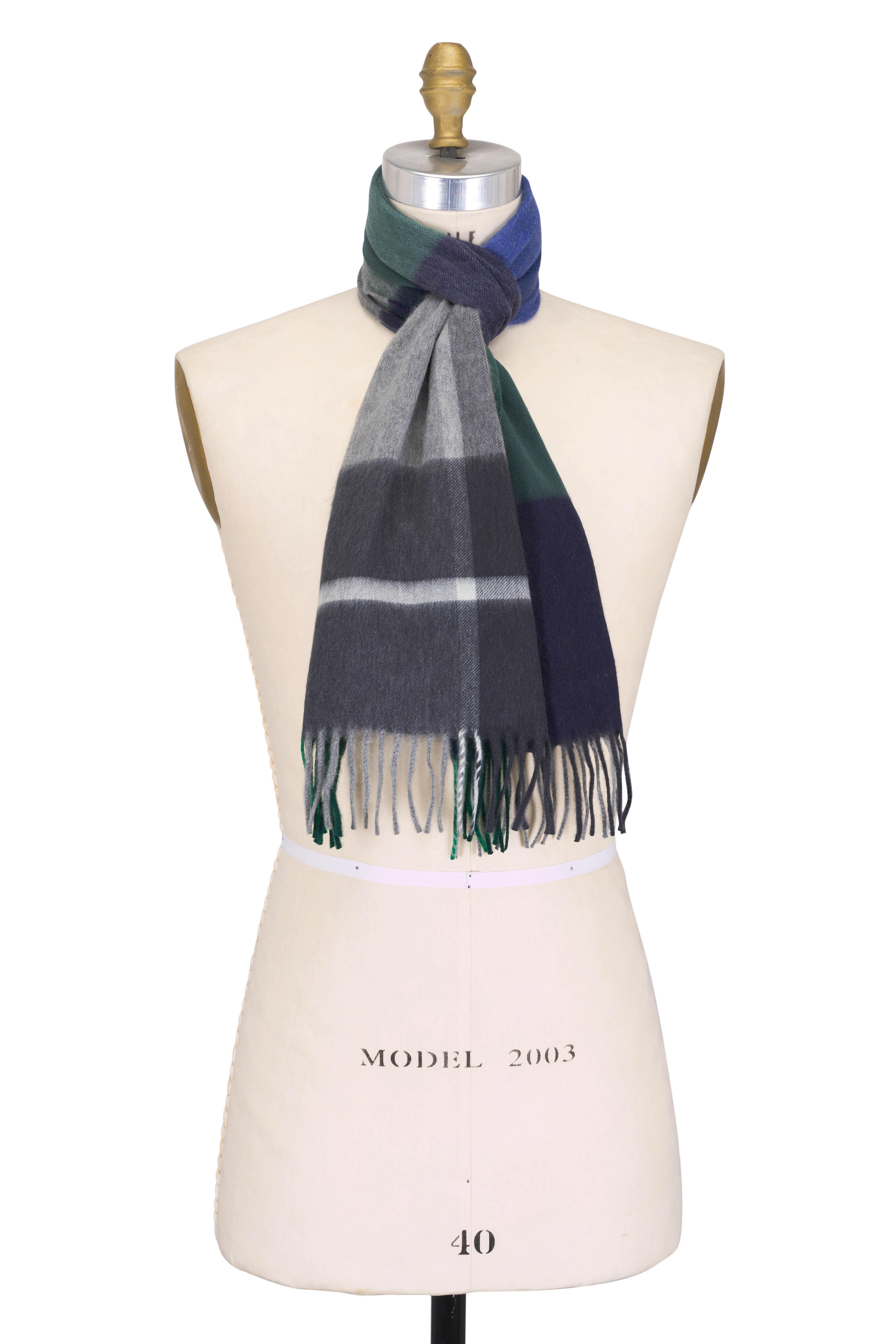 Fringe trim. Made in Scotland. 12" x 64". 100% cashmere. Dry clean.