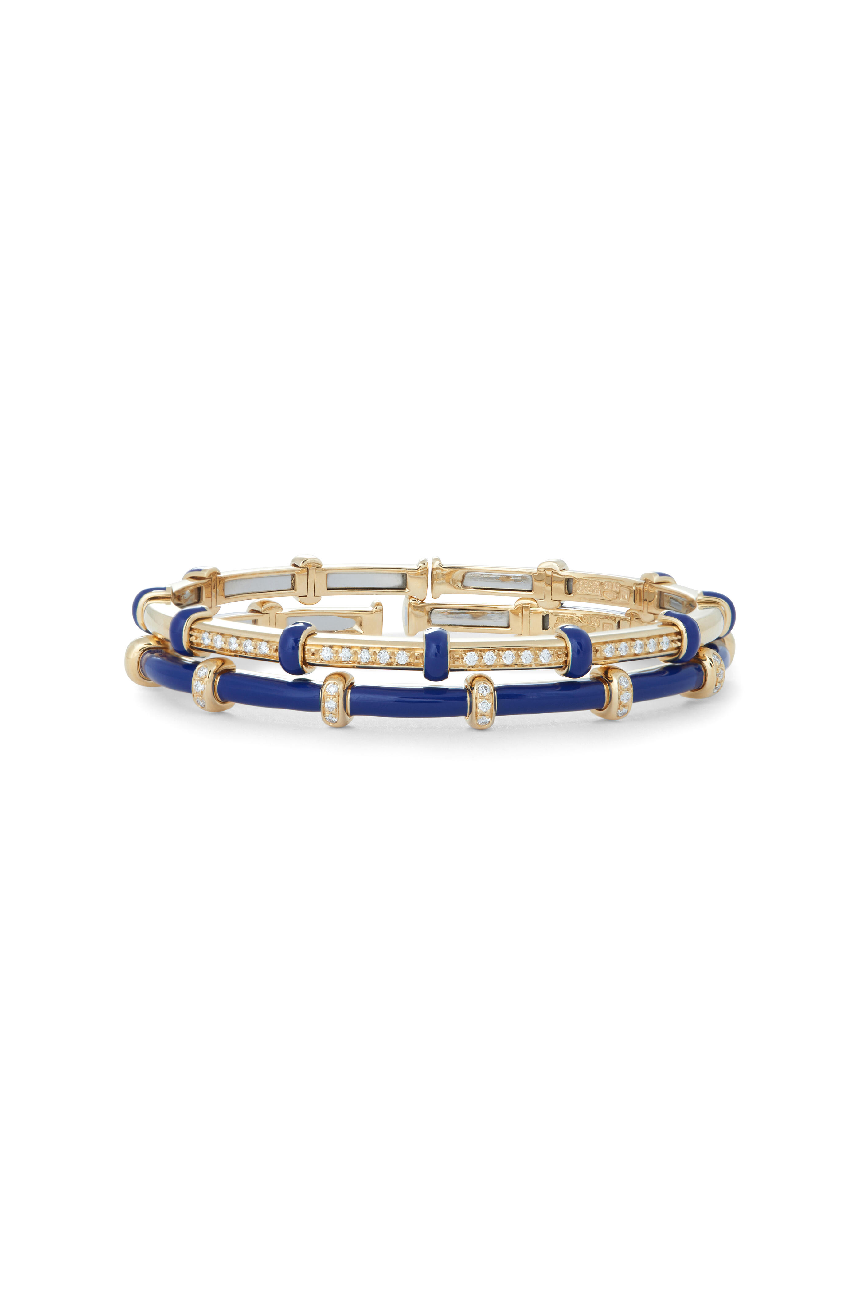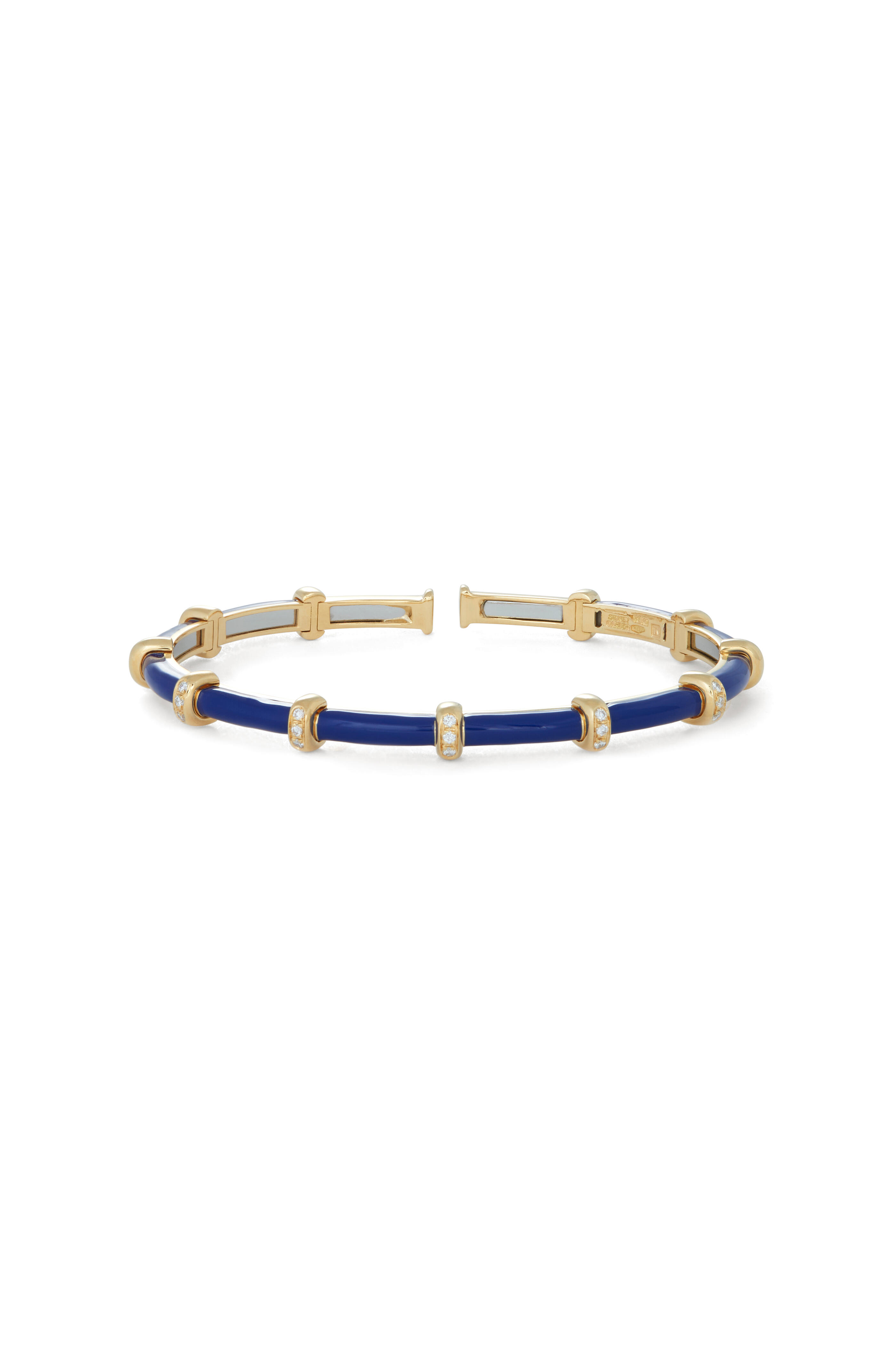 18k Yellow Gold Diamond Blue Enamel Bracelet