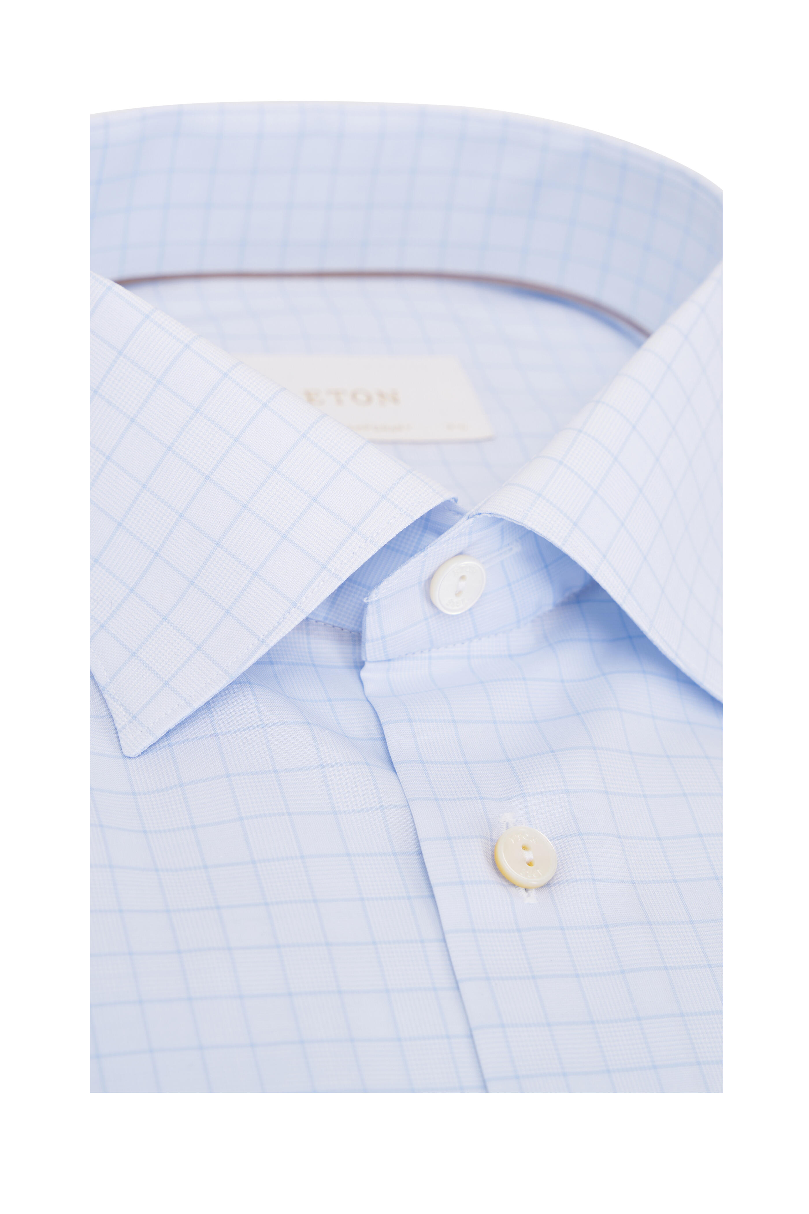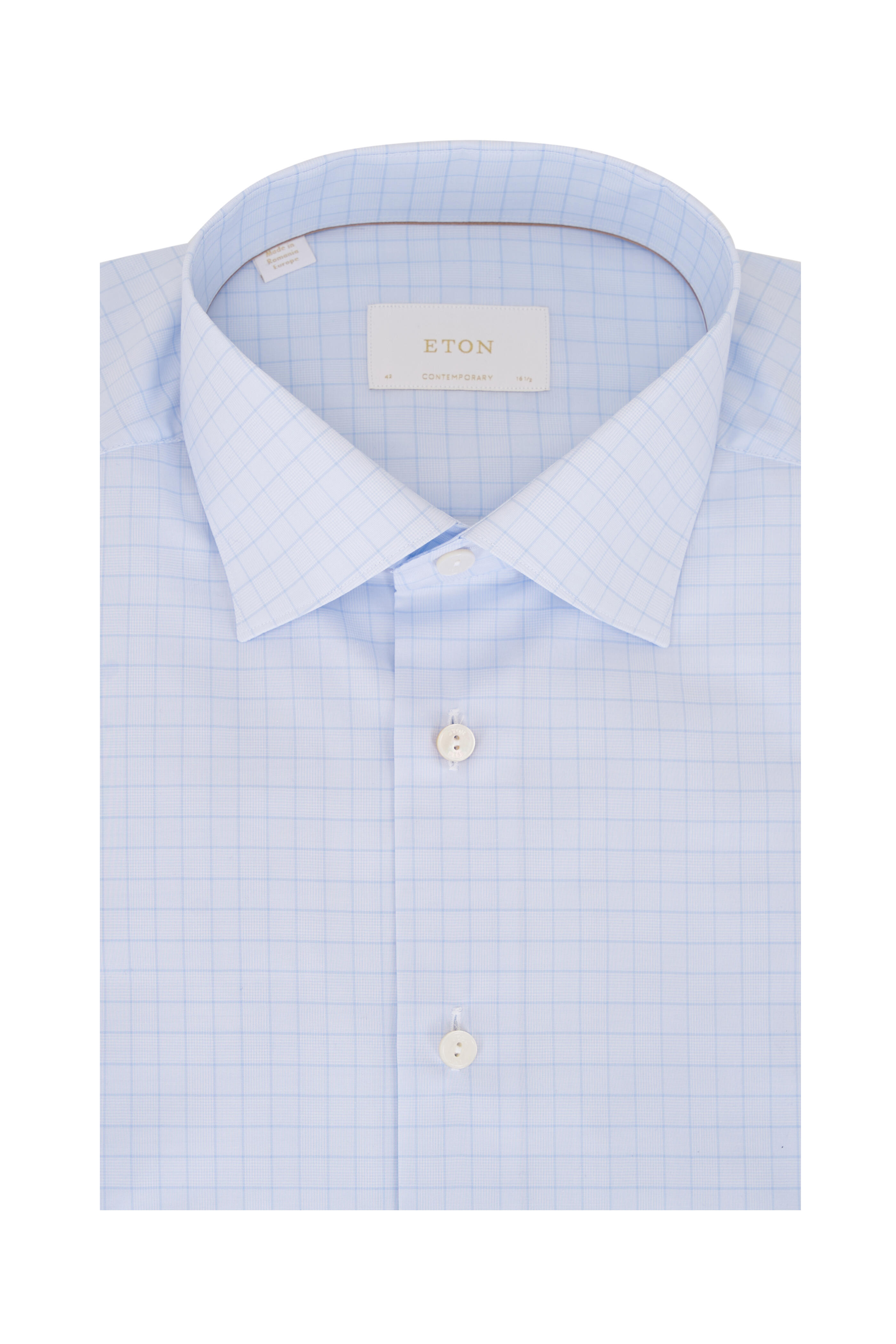 Spread collar. French front button placket. Single-button mitered cuffs. Imported. Contemporary fit. 100% cotton. Machine wash.
