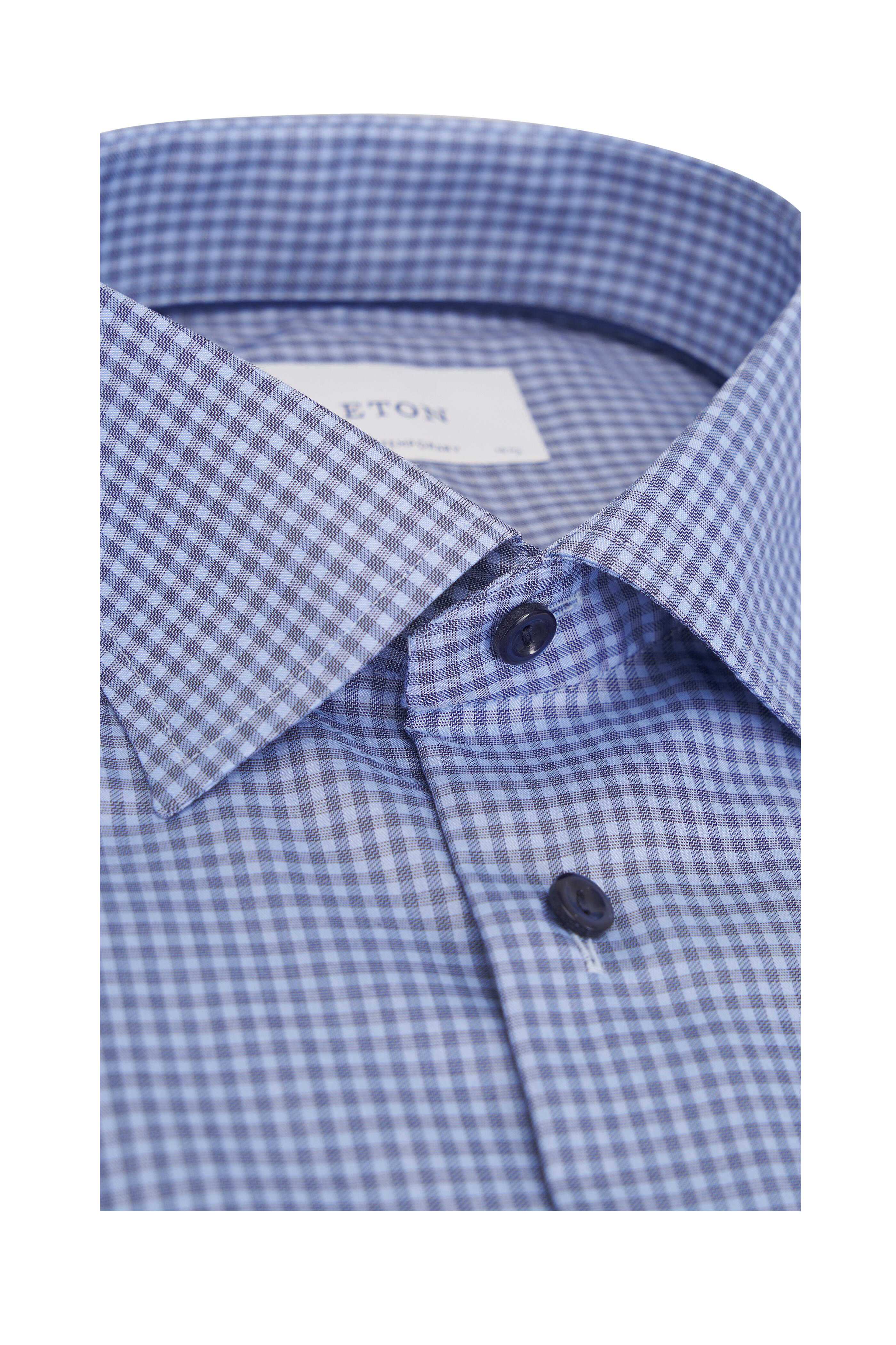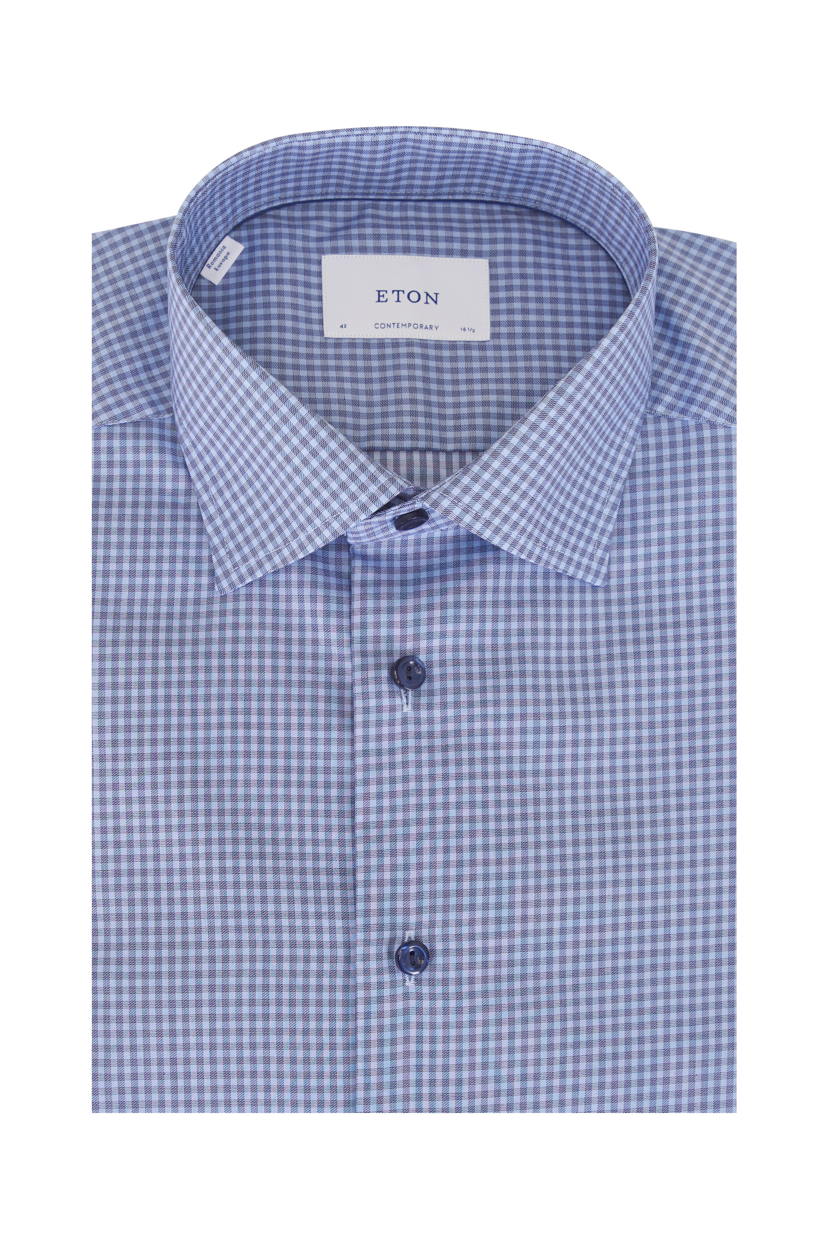 Spread collar. French front button placket. Single-button mitered cuffs. Imported. Contemporary fit. 100% cotton. Machine wash.