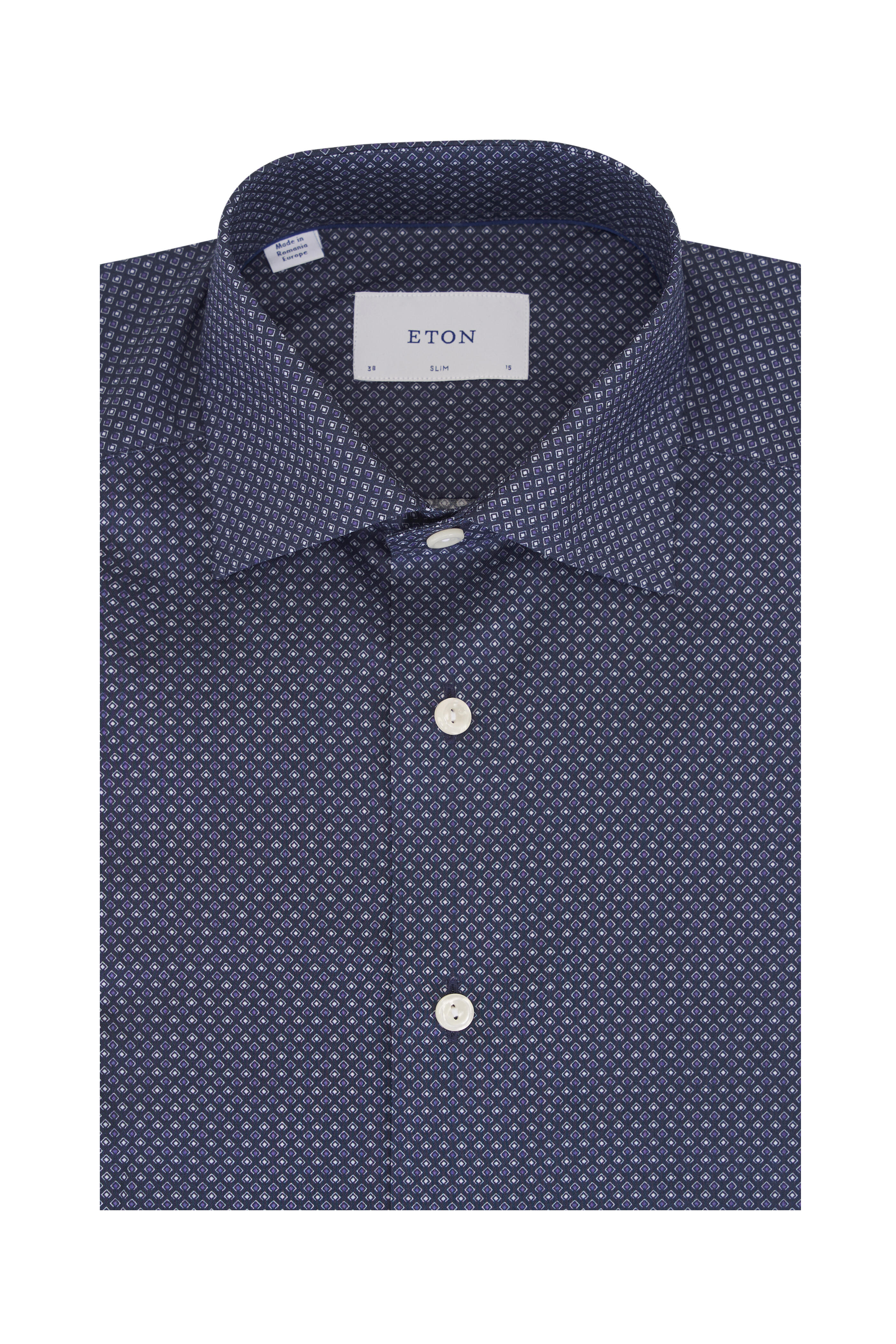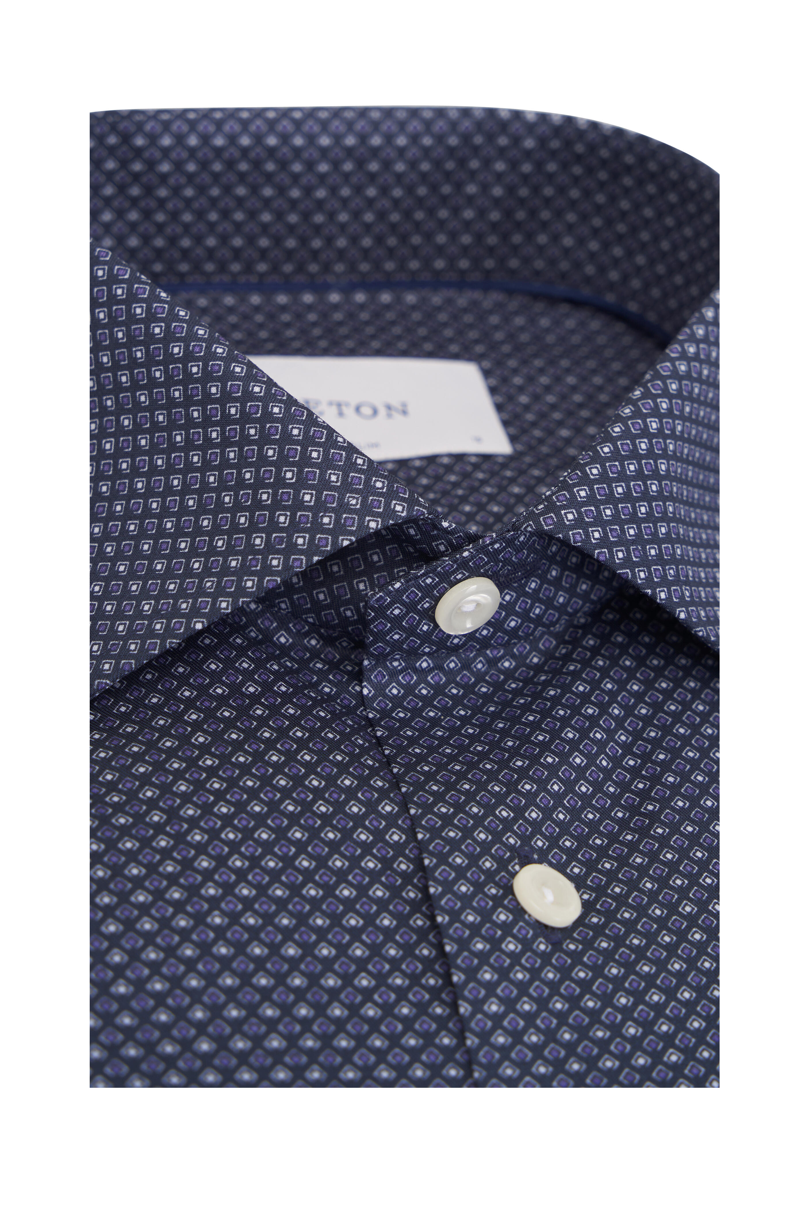 Dark Blue Geometric Cotton Slim Fit Dress Shirt