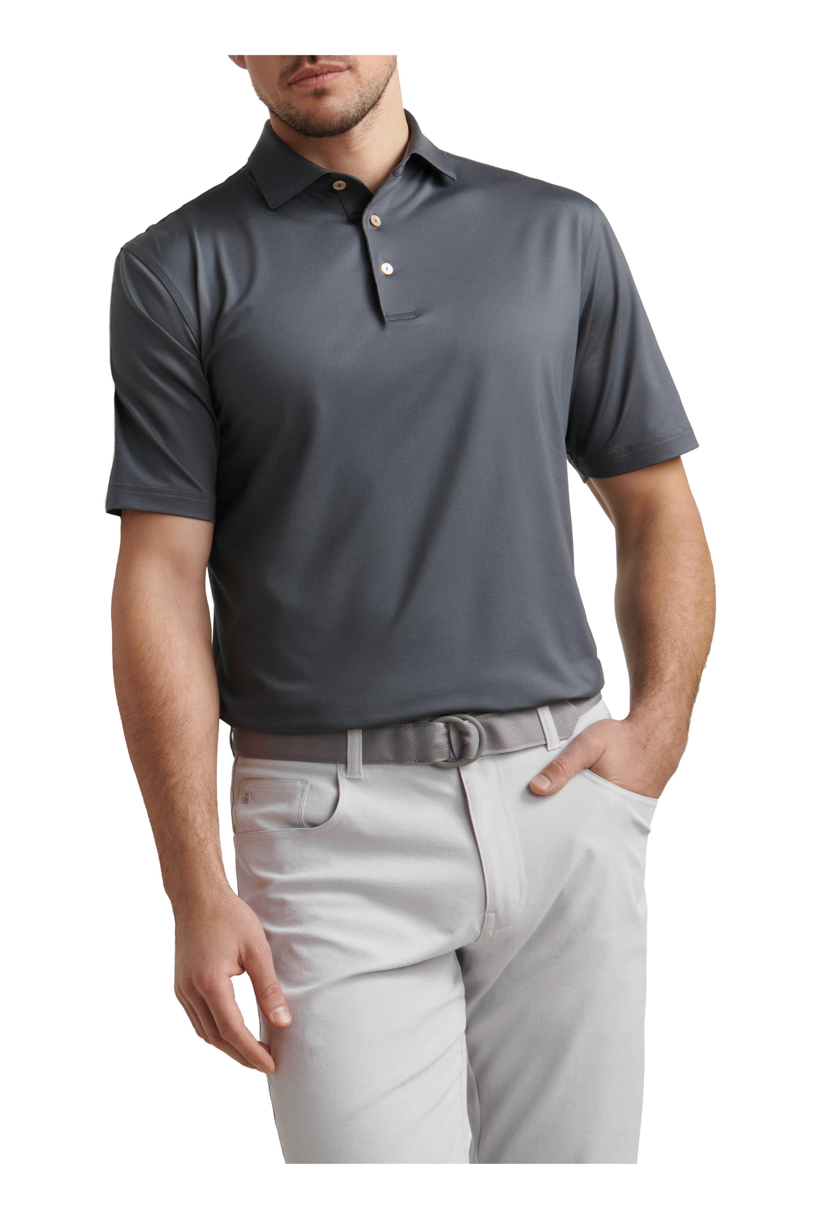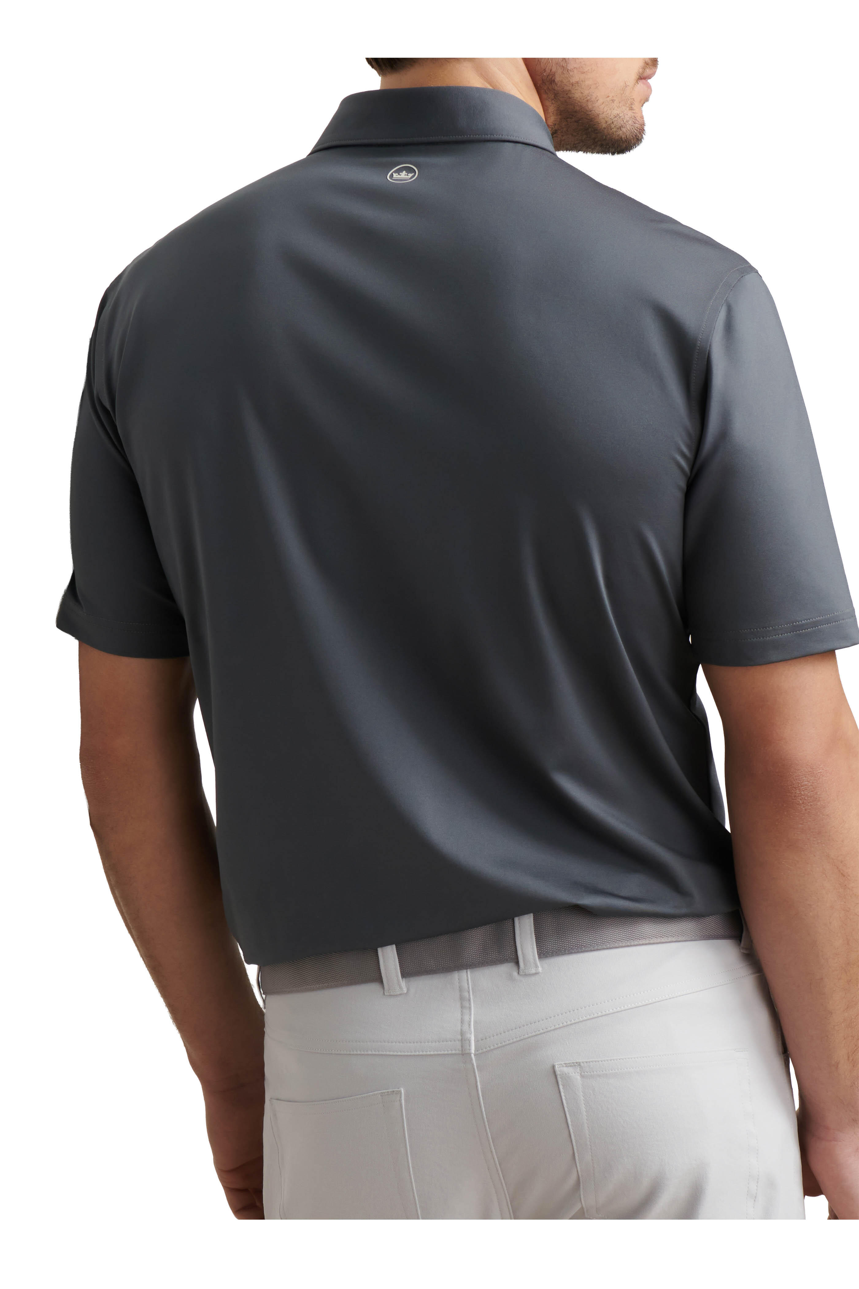 Spread collar. Three button placket. Vented hem. Imported. 92% polyester, 8% spandex. Machine wash.