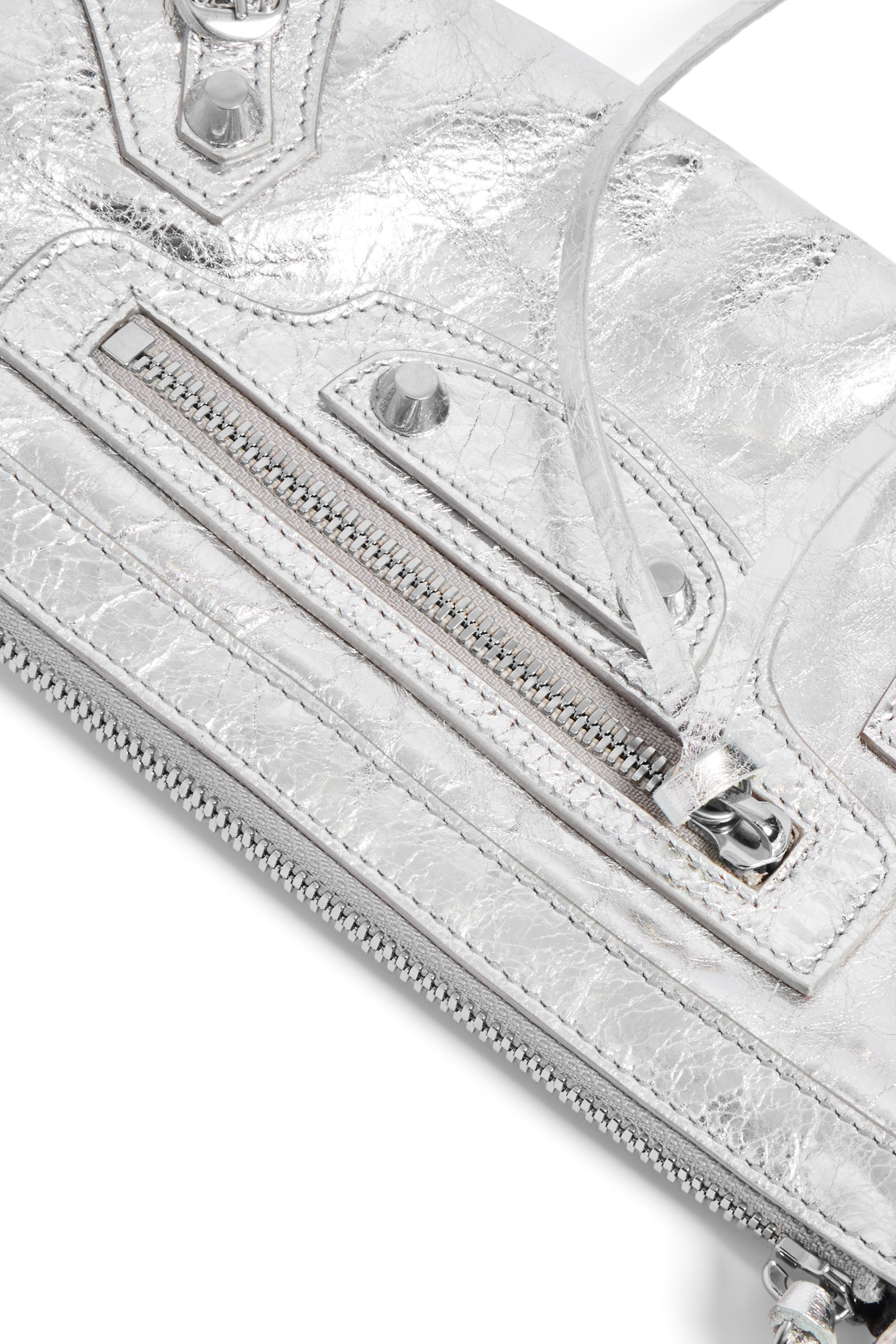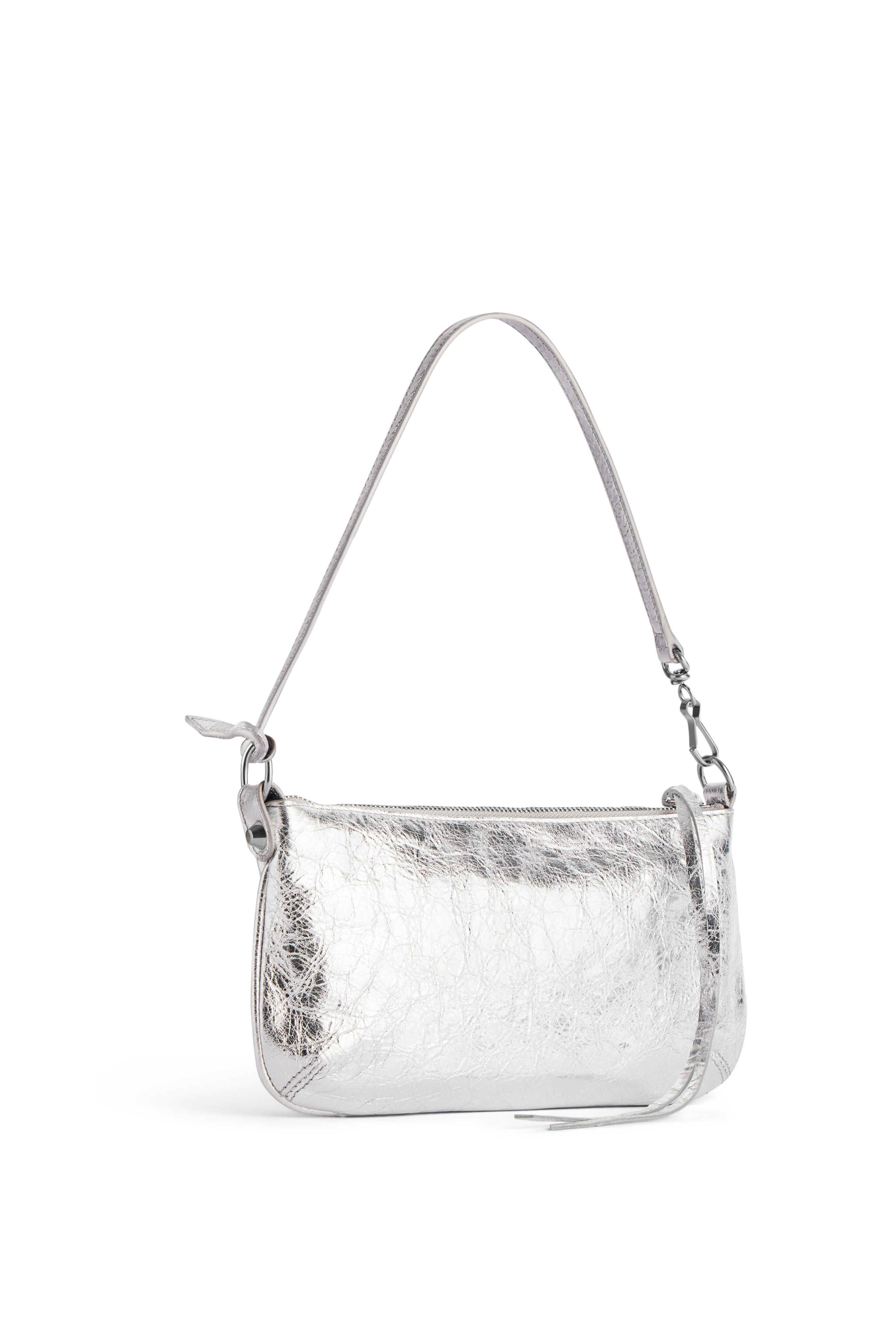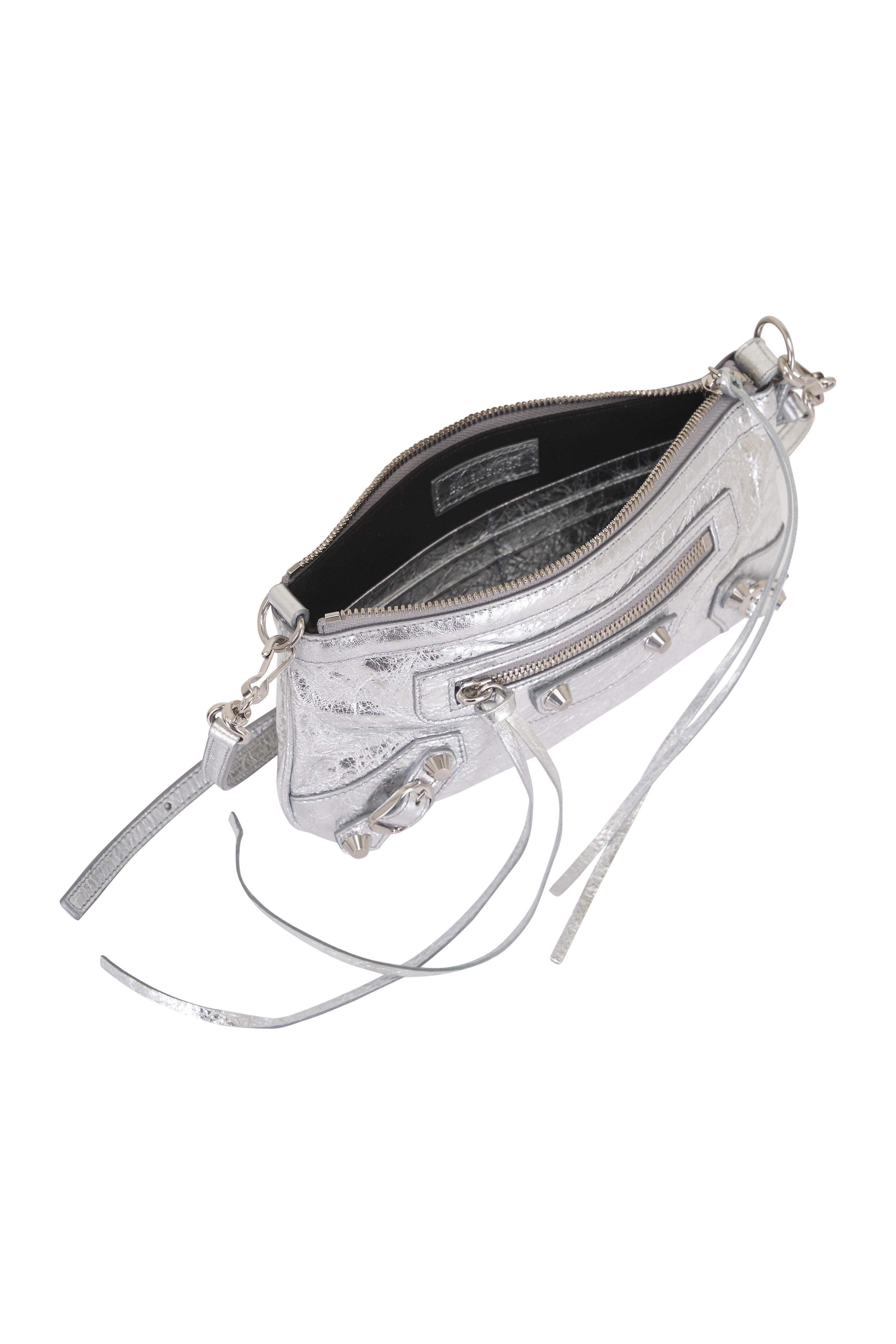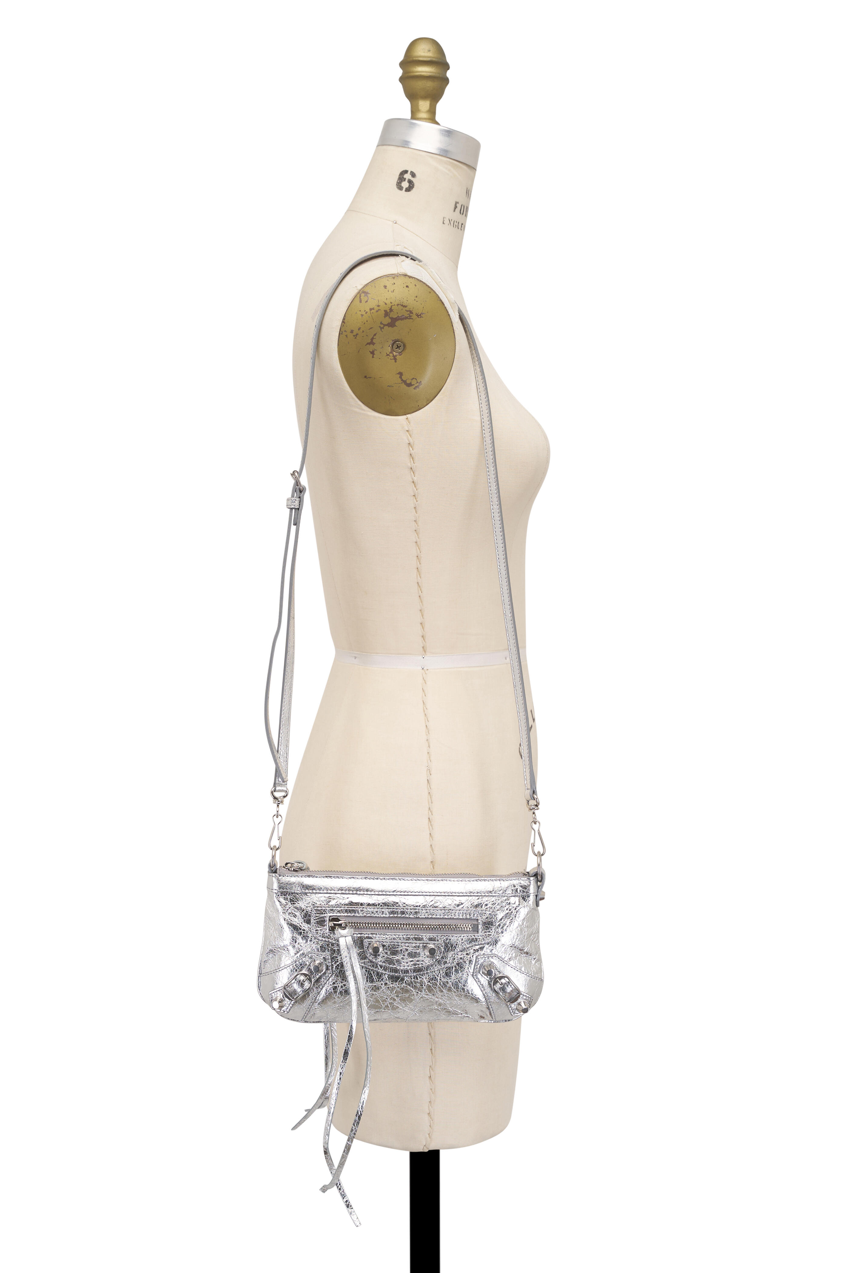 Arena Storico lambskin. Zipped closure with knotted leather puller. Front zipped pocket with knotted leather puller. Six card slots. Cotton canvas lining. Siler toned hardware. Made in Italy. Length: 25 cm | 9.8". Height: 14 cm | 5.5". Width: 4 cm | 1.6". Handle drop: 18 cm | 7". Strap drop: 60 cm | 23.6". Can fit a smartphone and a wallet.