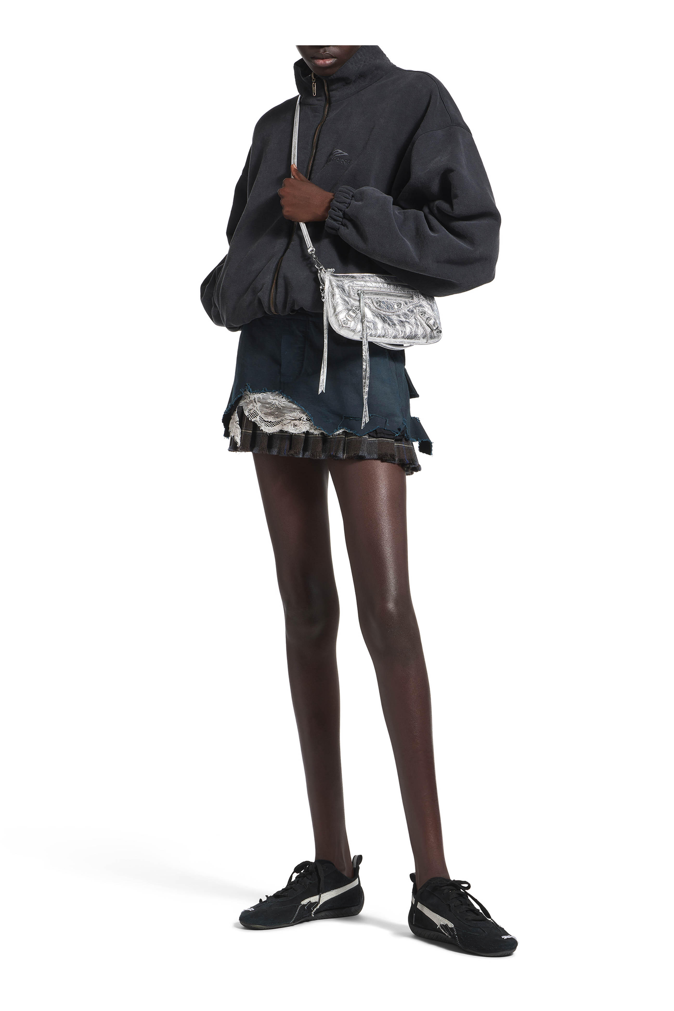 - Front zipped pocket with knotted leather puller