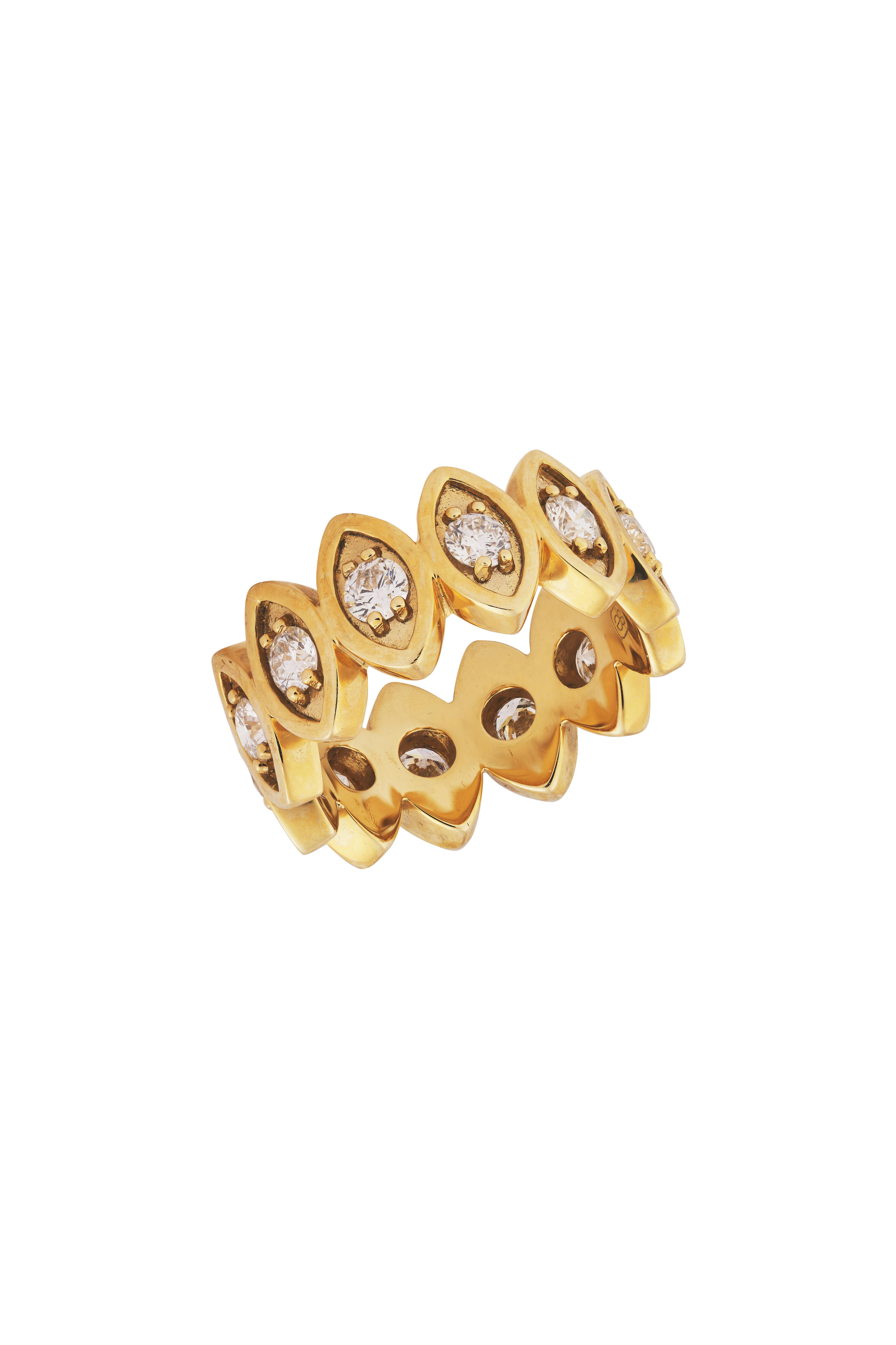 14k Yellow Gold Diamond Evil Eye Eternity Band
