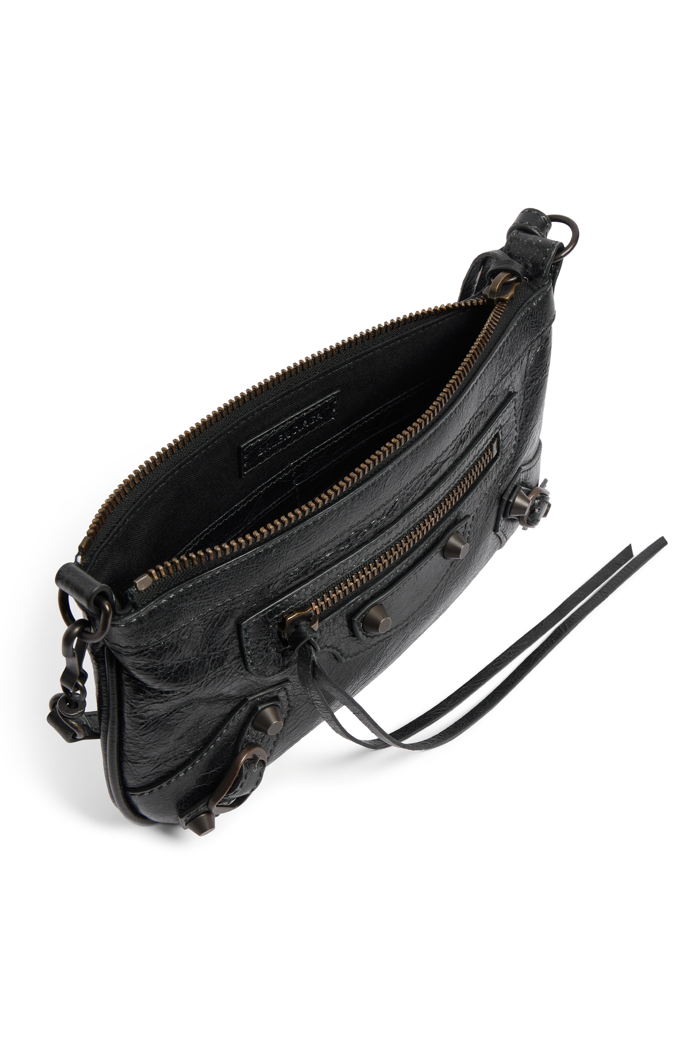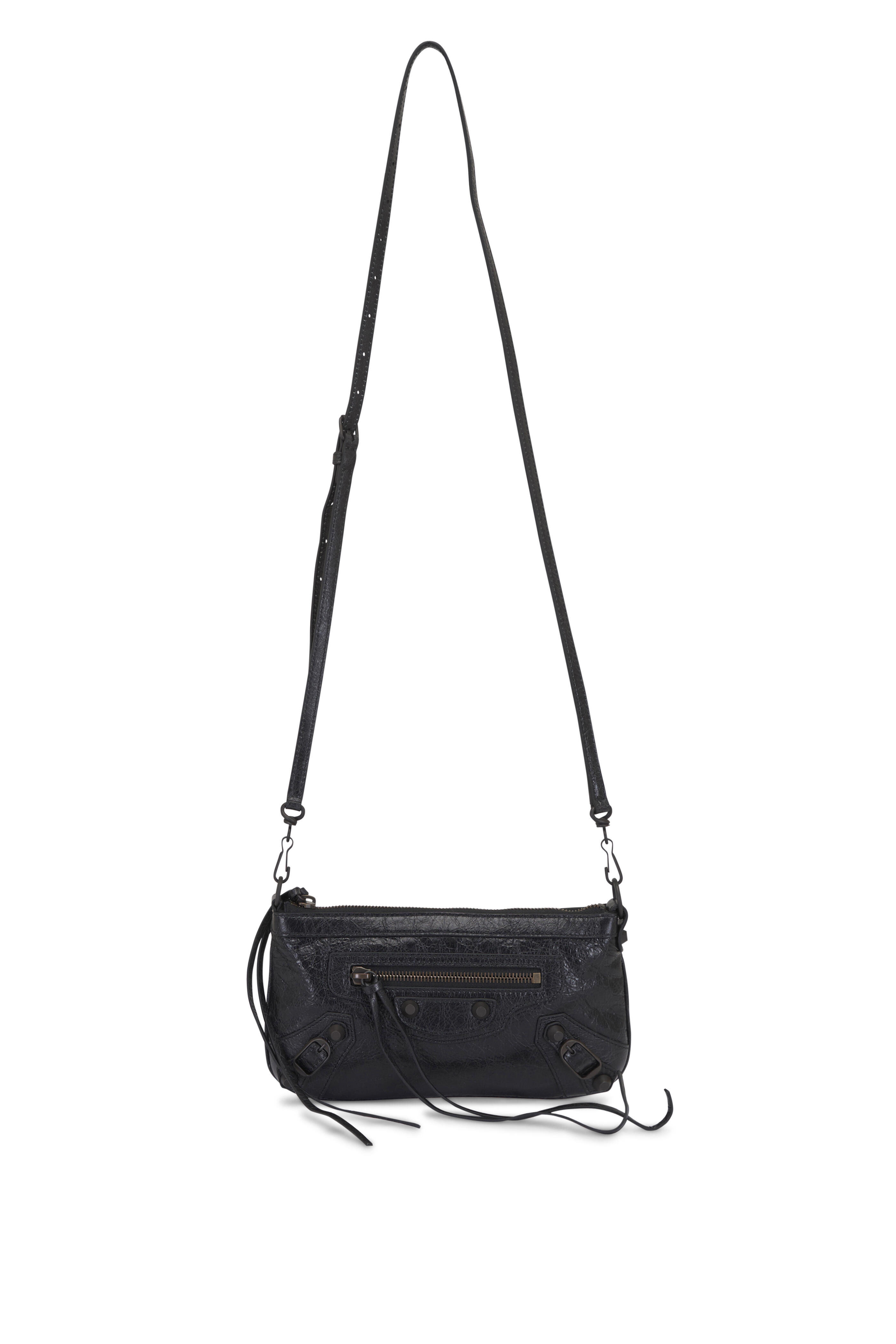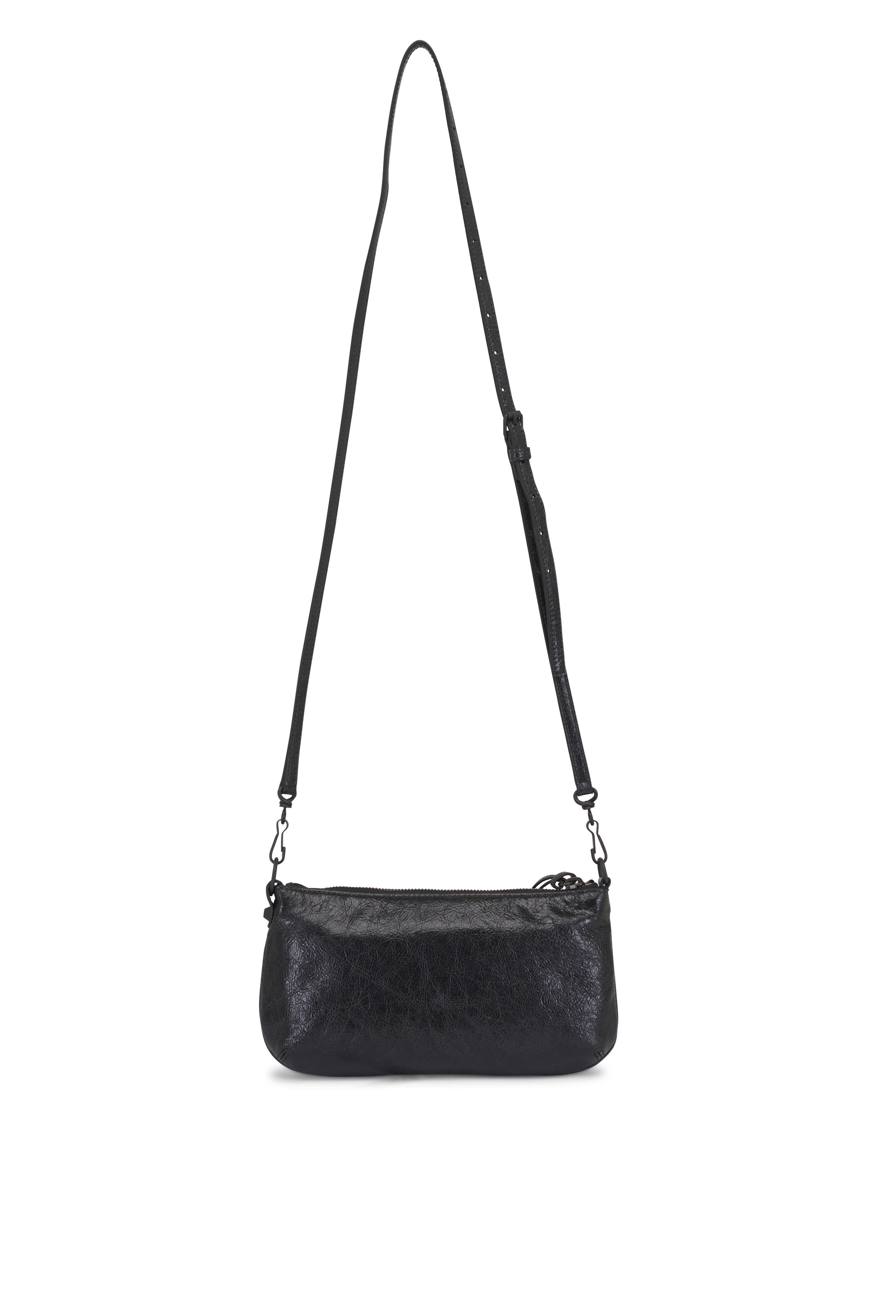 Arena Storico lambskin. Adjustable and removable shoulder strap. Zip closure with knotted leather pull. Crossbody and shoulder carry. Brass hardware. Front zip pocket with knotted leather pull. Six inner card slots. Cotton canvas lining. Made in Italy. Length: 25 cm | 9.8". Height: 14 cm | 5.5". Width: 4 cm | 1.6". Handle drop: 18 cm | 7". Strap drop: 60 cm | 23.6". Can fit a smartphone and a wallet.