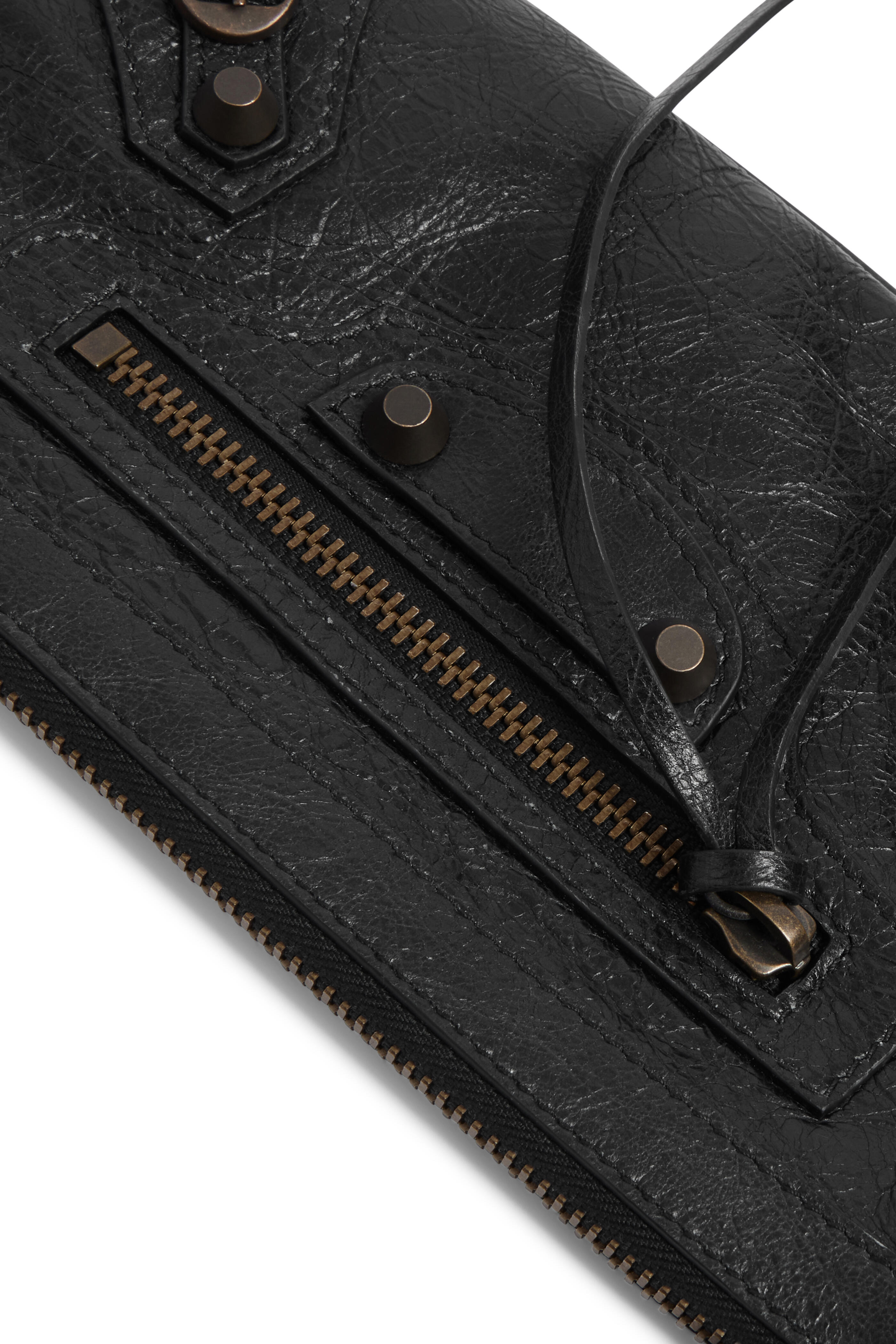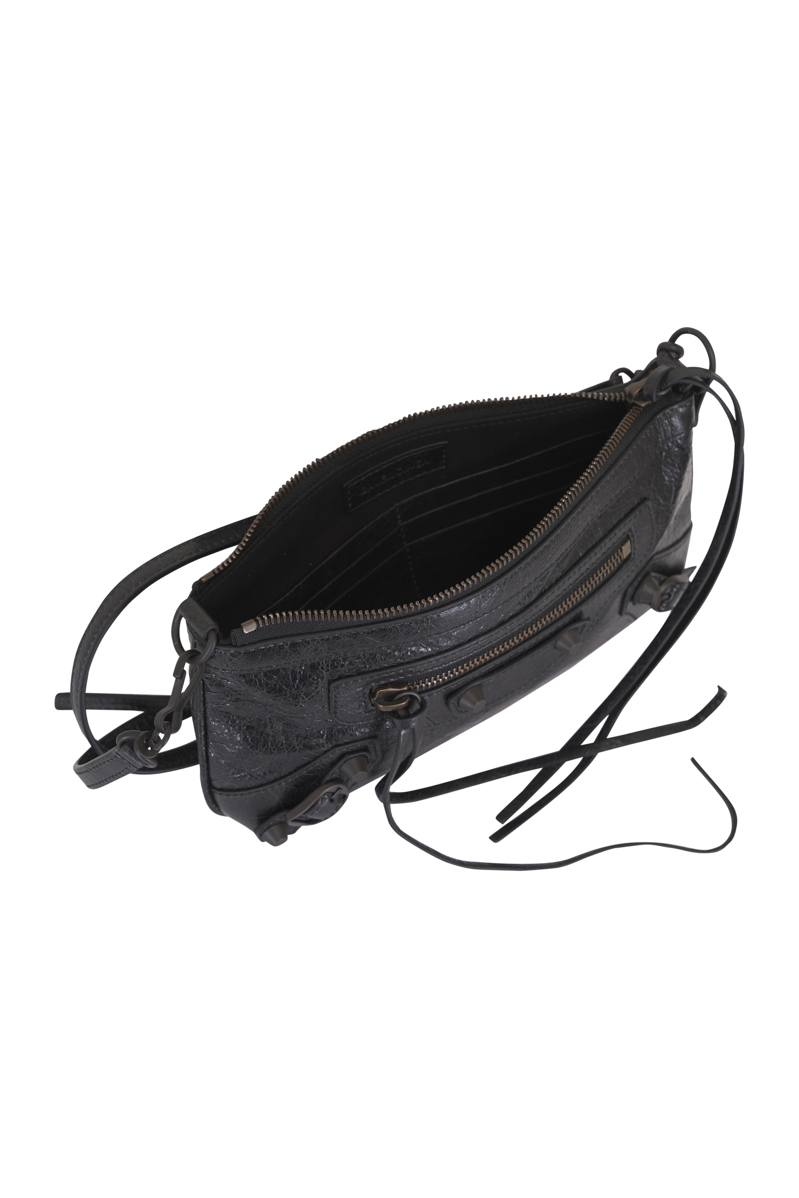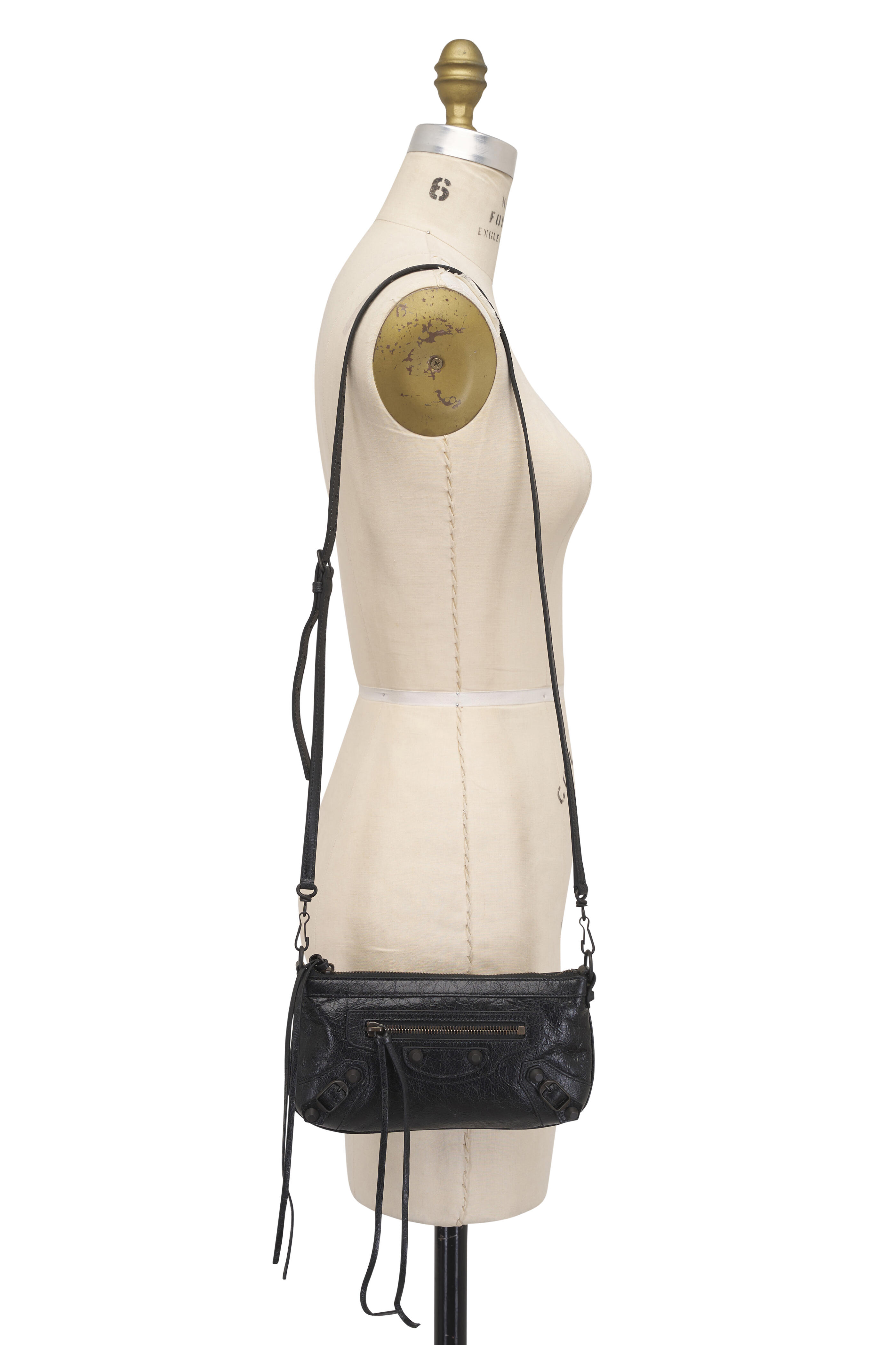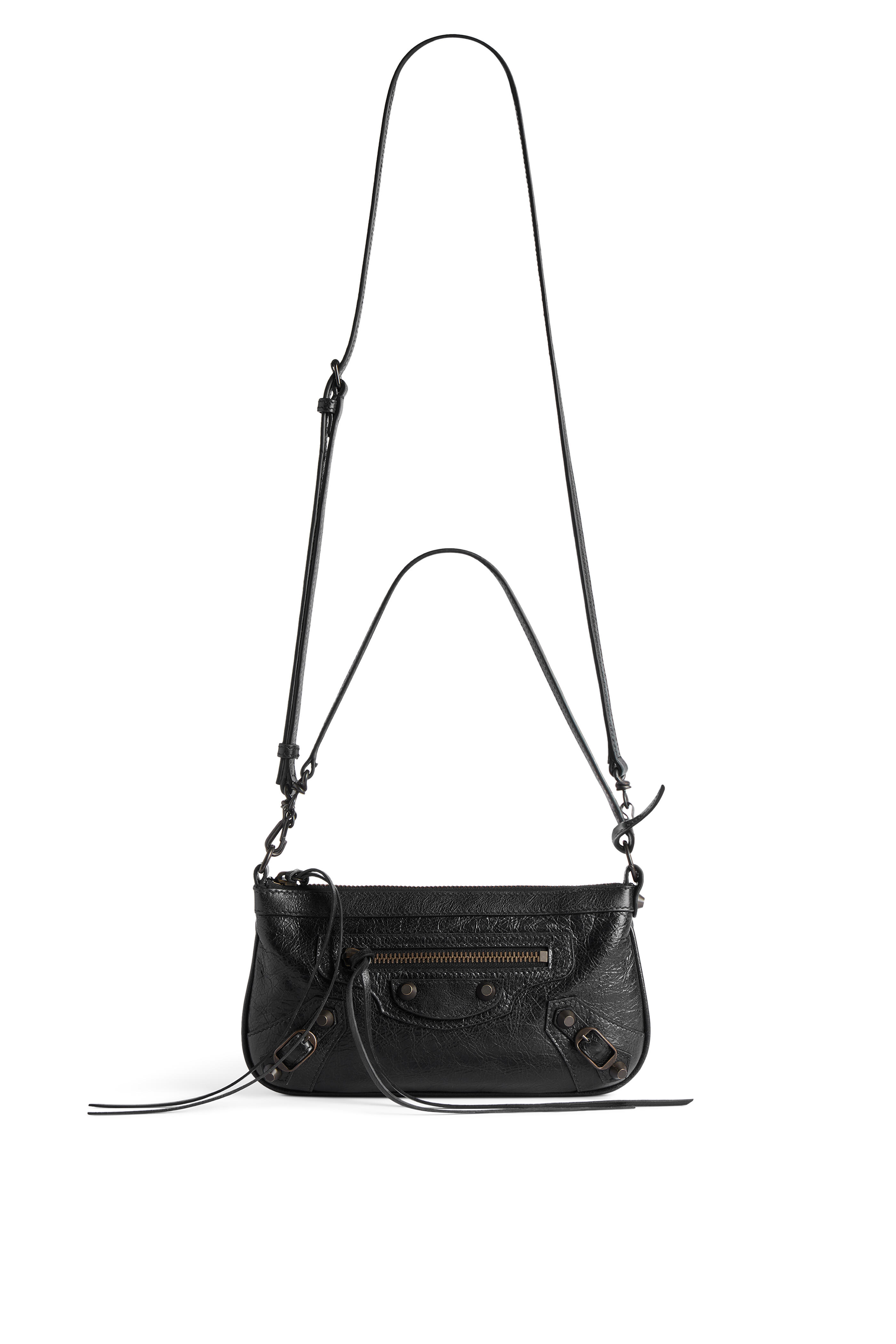 Arena Storico lambskin. Adjustable and removable shoulder strap. Zip closure with knotted leather pull. Crossbody and shoulder carry. Brass hardware. Front zip pocket with knotted leather pull. Six inner card slots. Cotton canvas lining. Made in Italy. Length: 25 cm | 9.8". Height: 14 cm | 5.5". Width: 4 cm | 1.6". Handle drop: 18 cm | 7". Strap drop: 60 cm | 23.6". Can fit a smartphone and a wallet.
