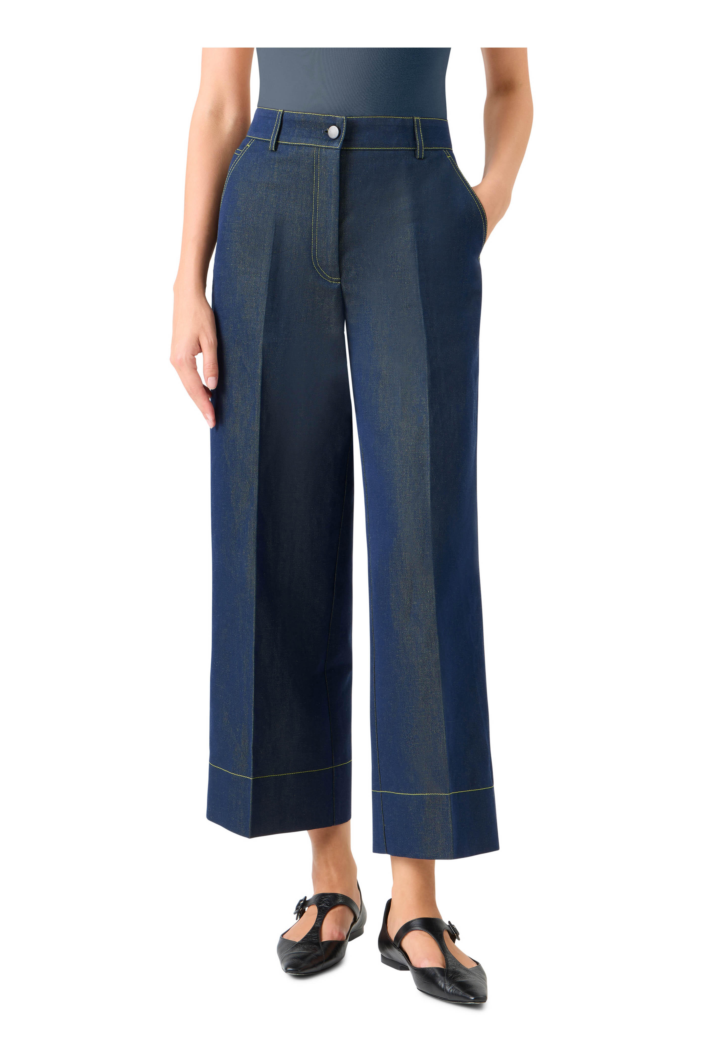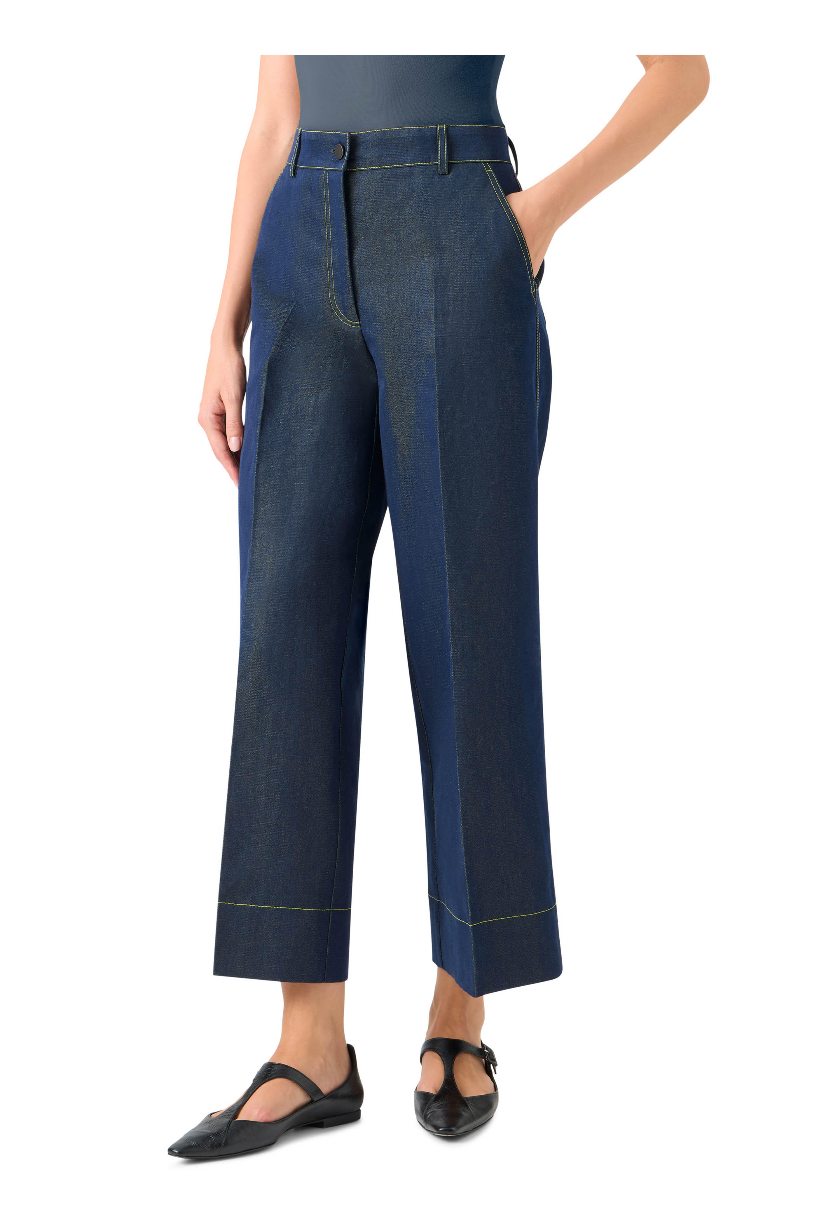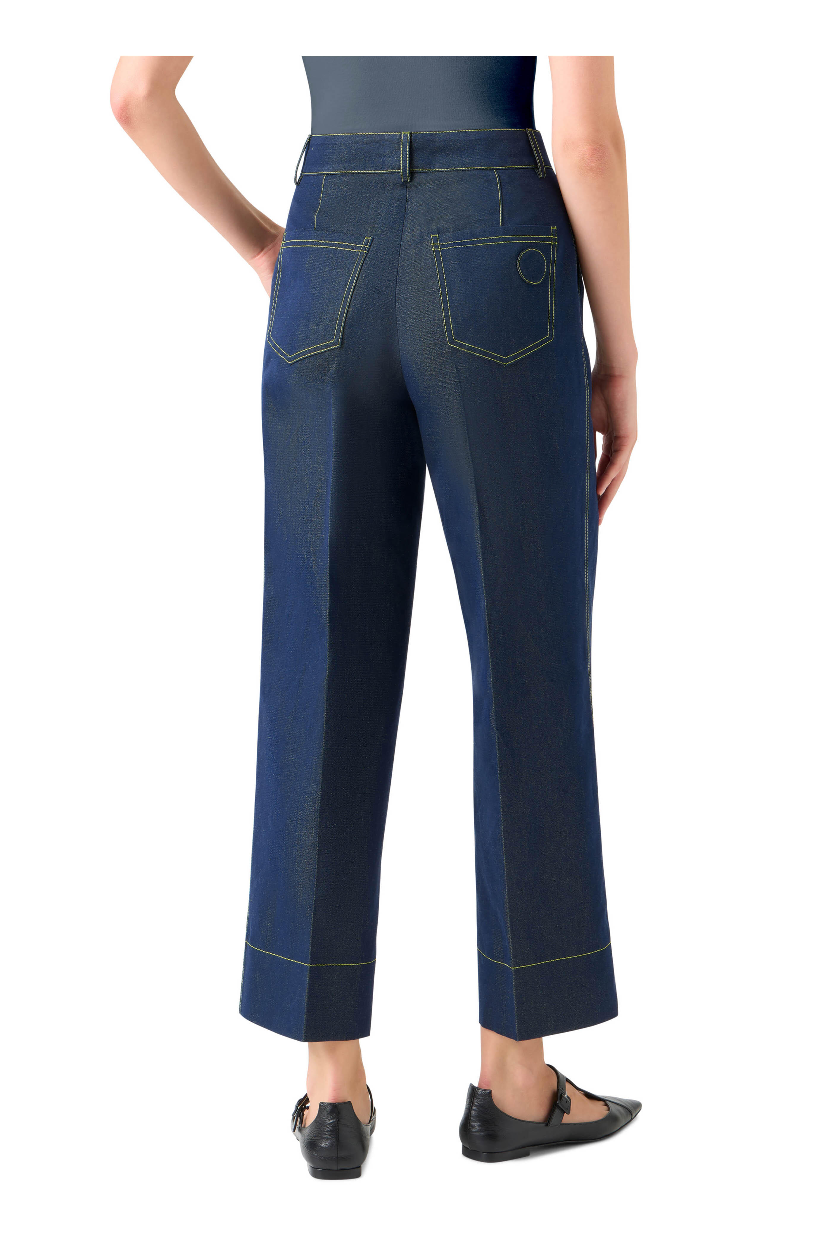 Chiara Denim & Lime Contrast Stitch Cropped Jean