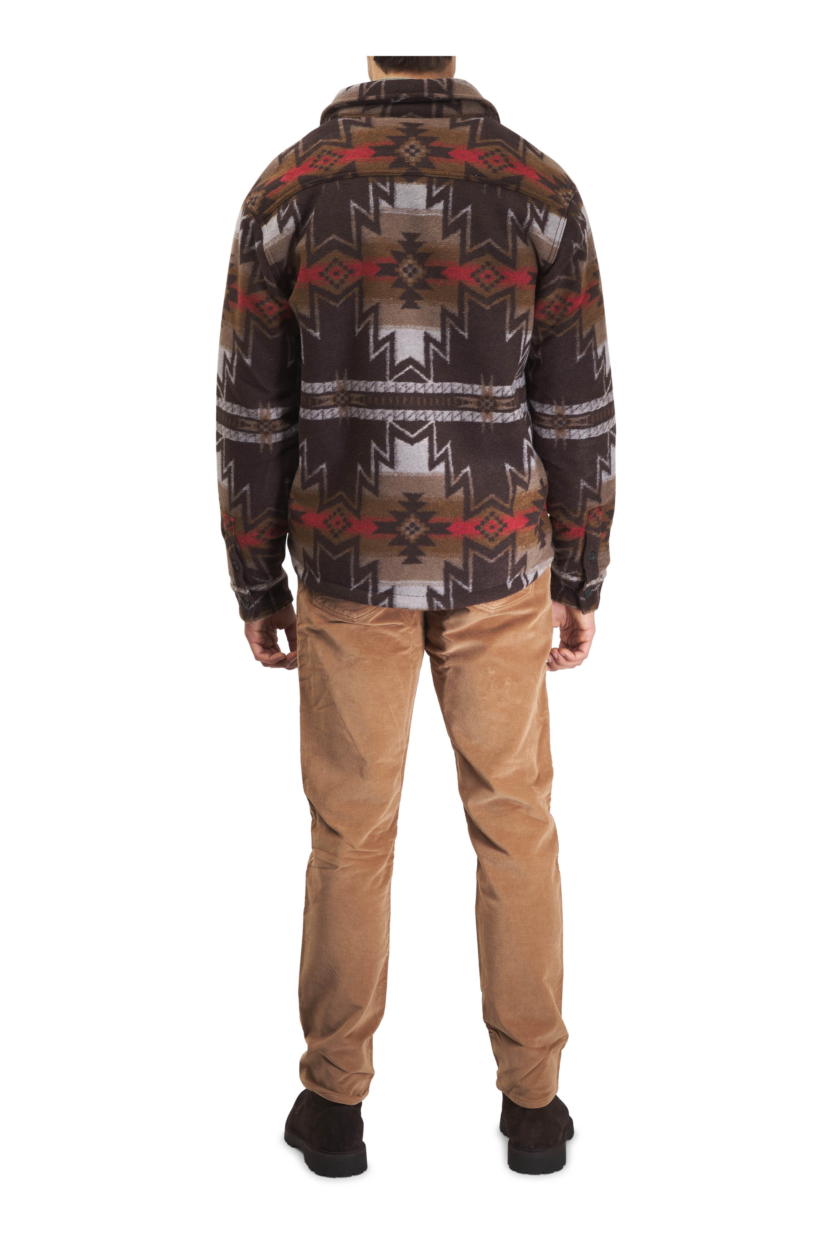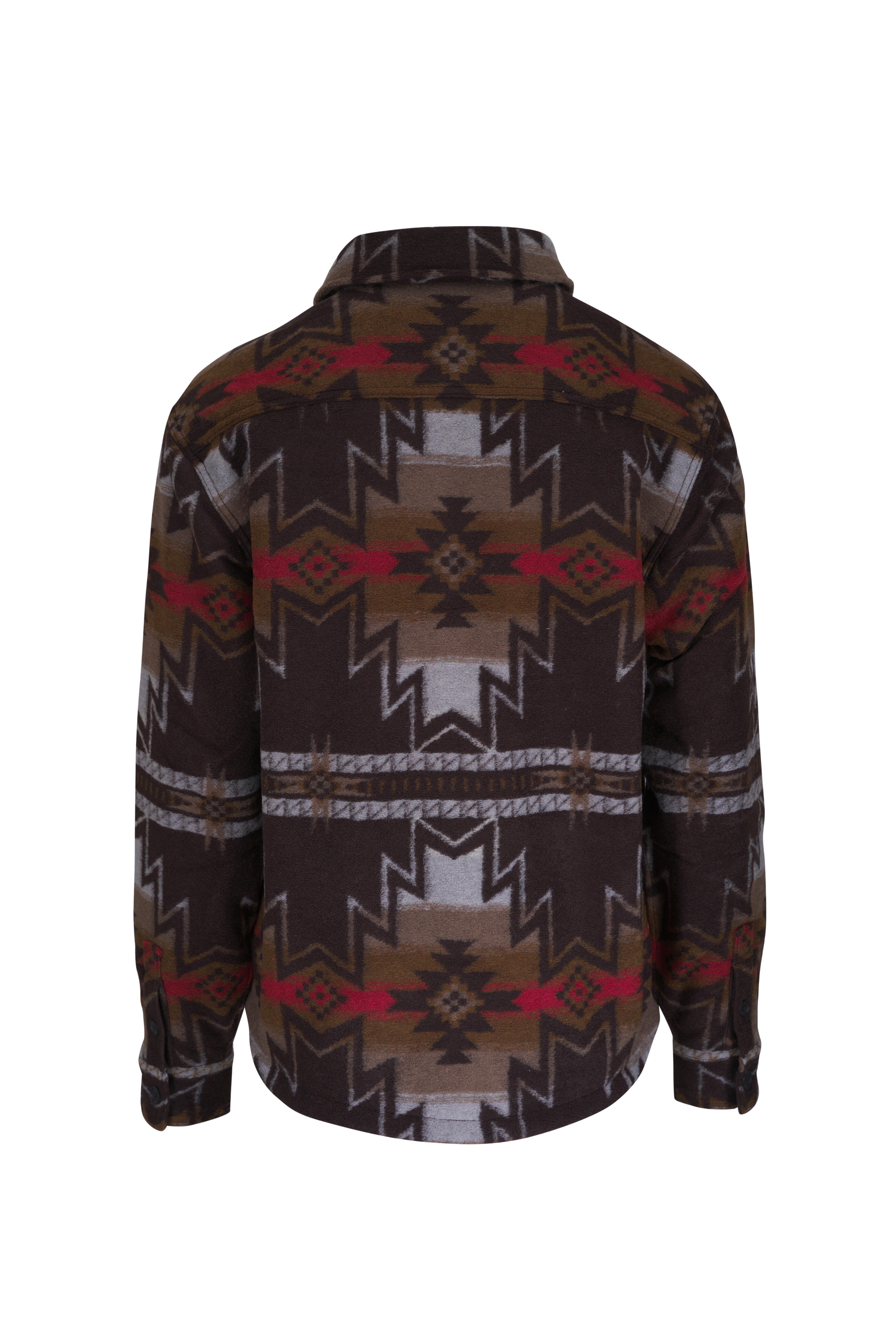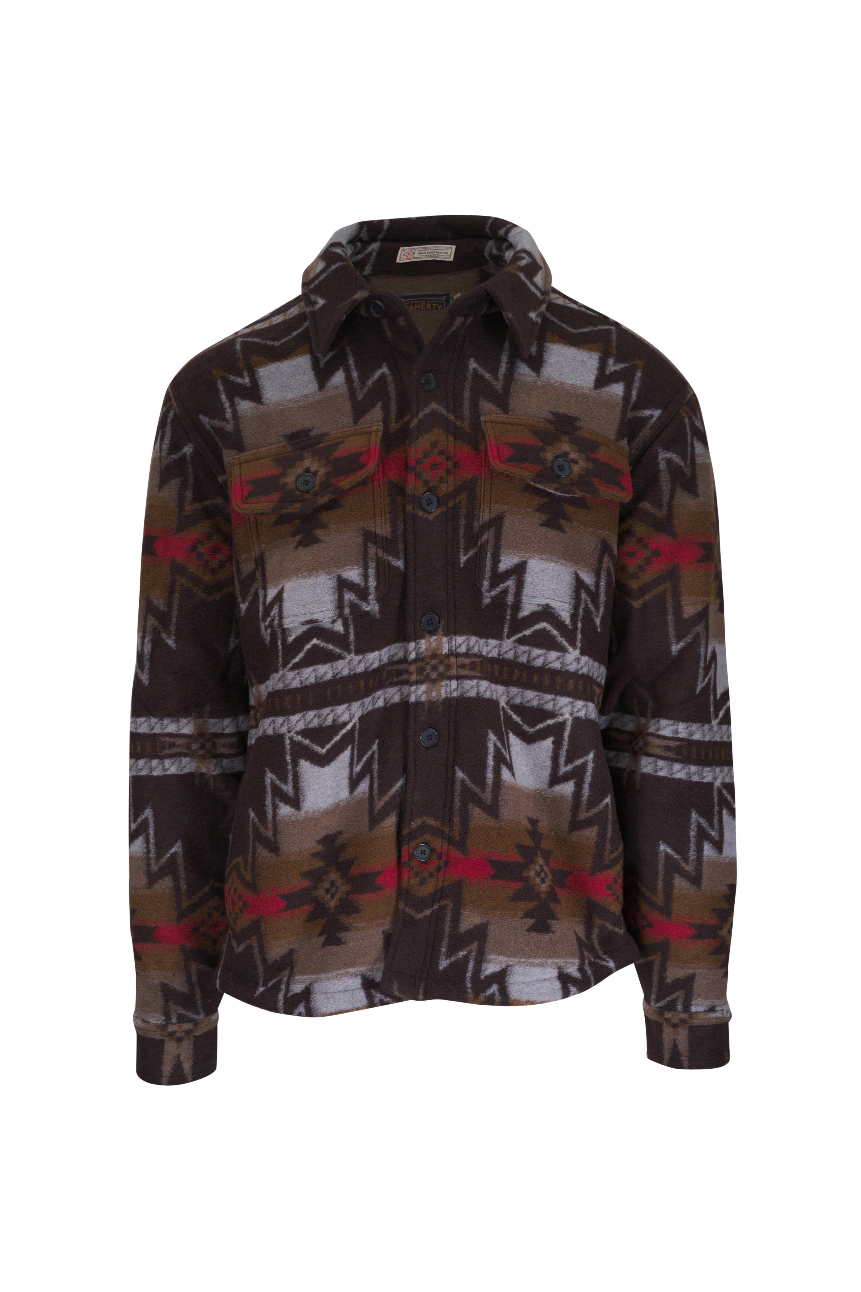 Spread collar. Front button placket. Chest button patch pockets; lower slip pockets. Single button cuffs. Straight hem. High pile fleece. Imported. Shoulder to hem 29" (size l). 60% Recycled polyester, 27% acrylic, 13% wool; fully lined. Dry clean.