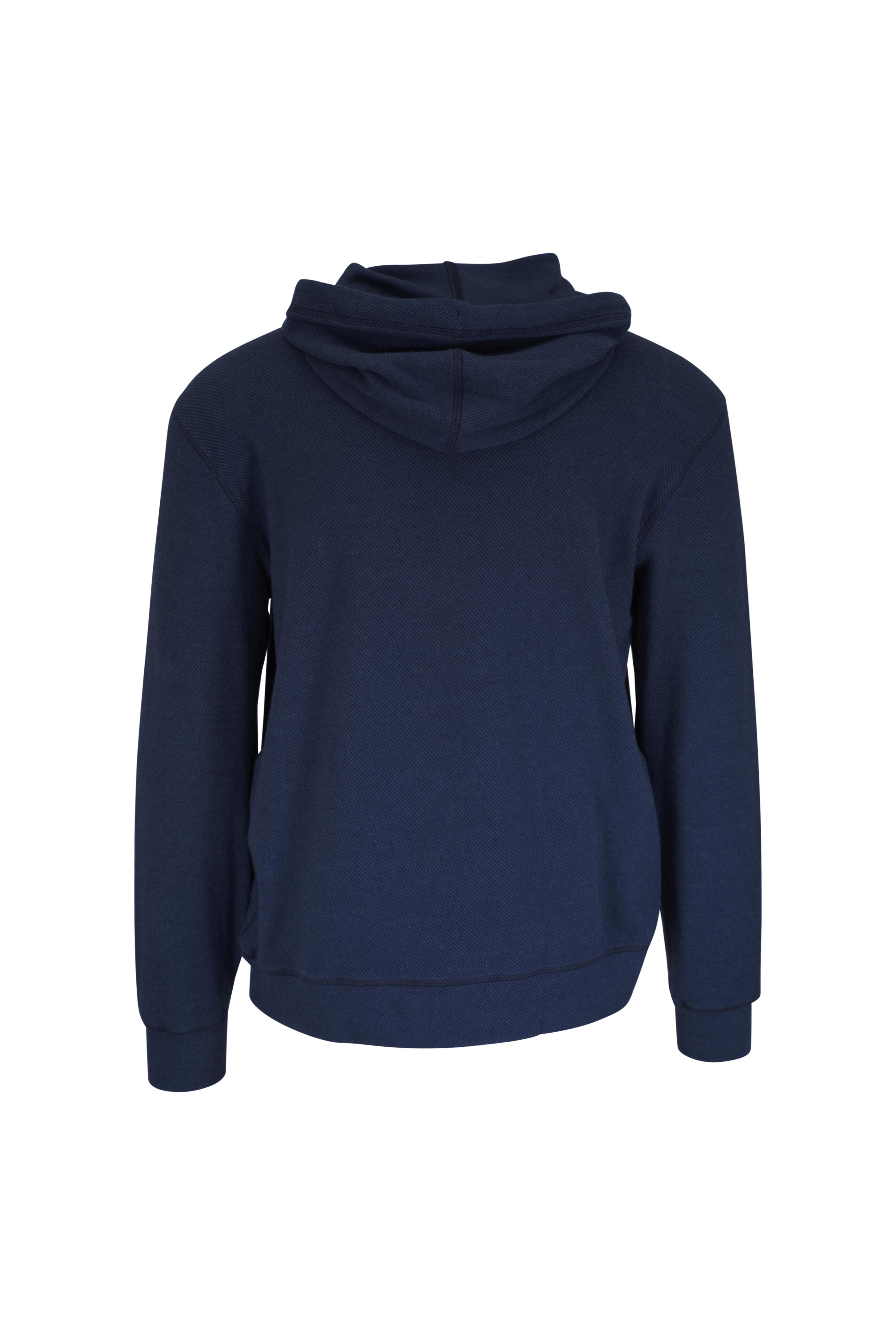 Attached, drawstring hood. Ribbed trim. Imported. Shoulder to hem 28" (size L). 49% Cotton, 32% polyester, 17% viscose, 2% elastane. Machine wash.