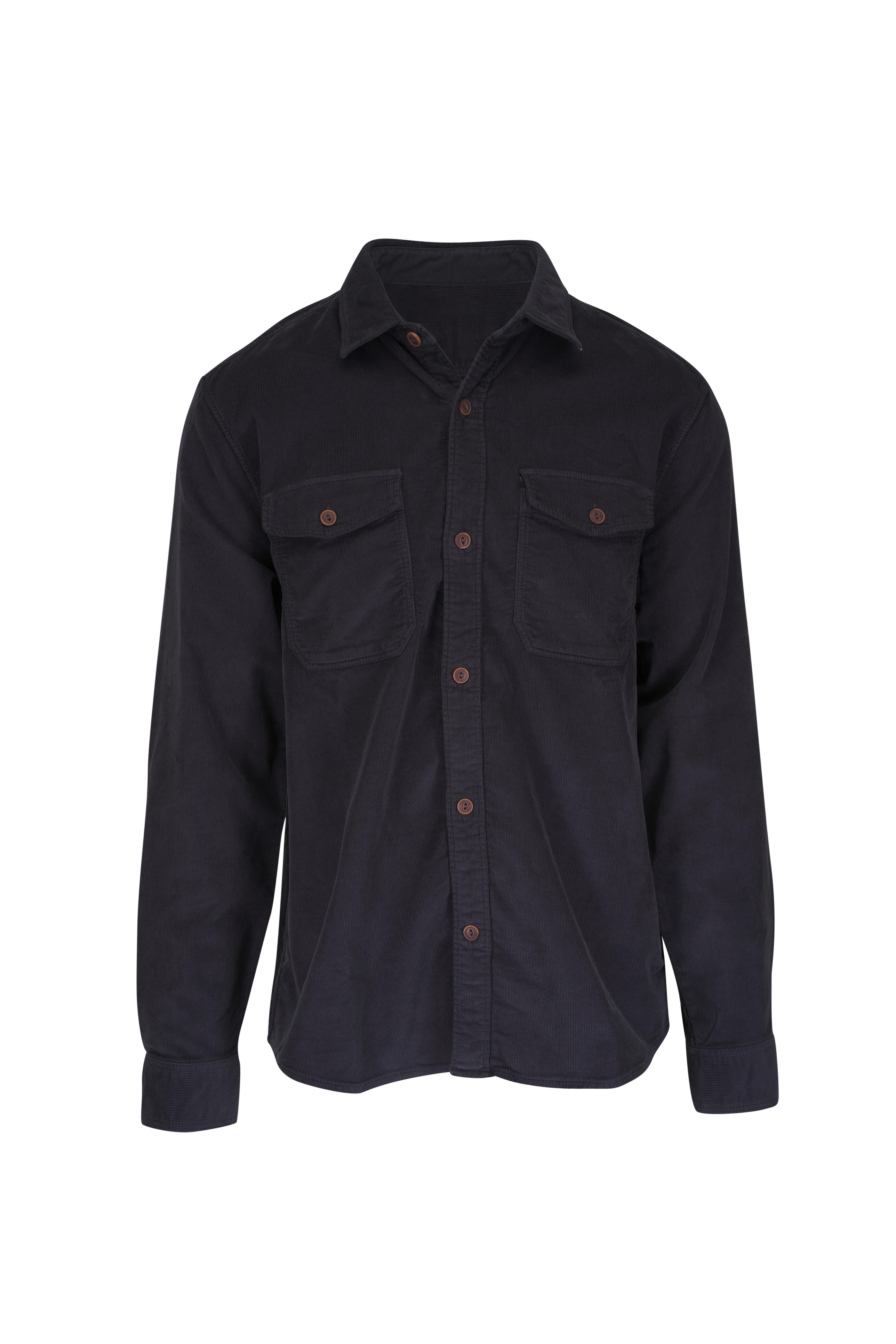 Spread collar. Chest button flap pockets. Imported. Length 30 1/2" shoulder to hem. 98% cotton, 2% elastane. Machine wash.