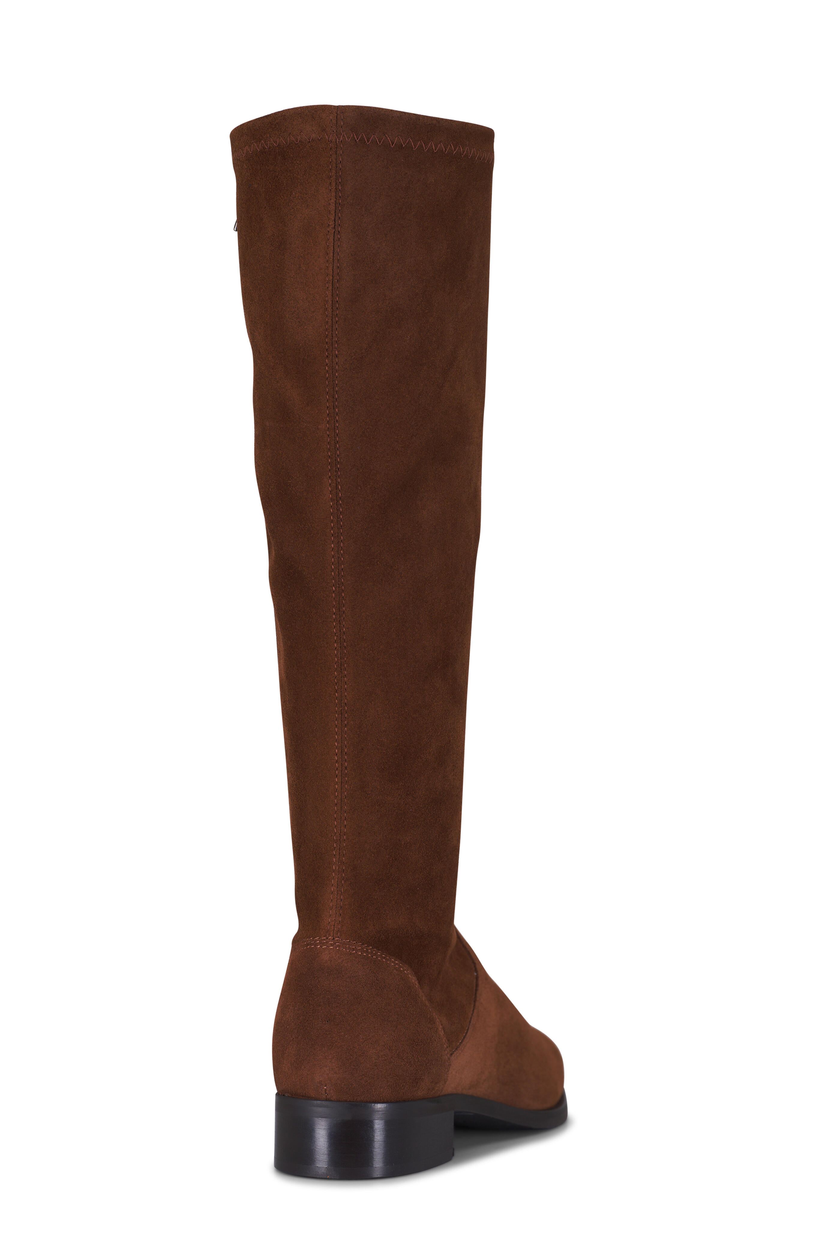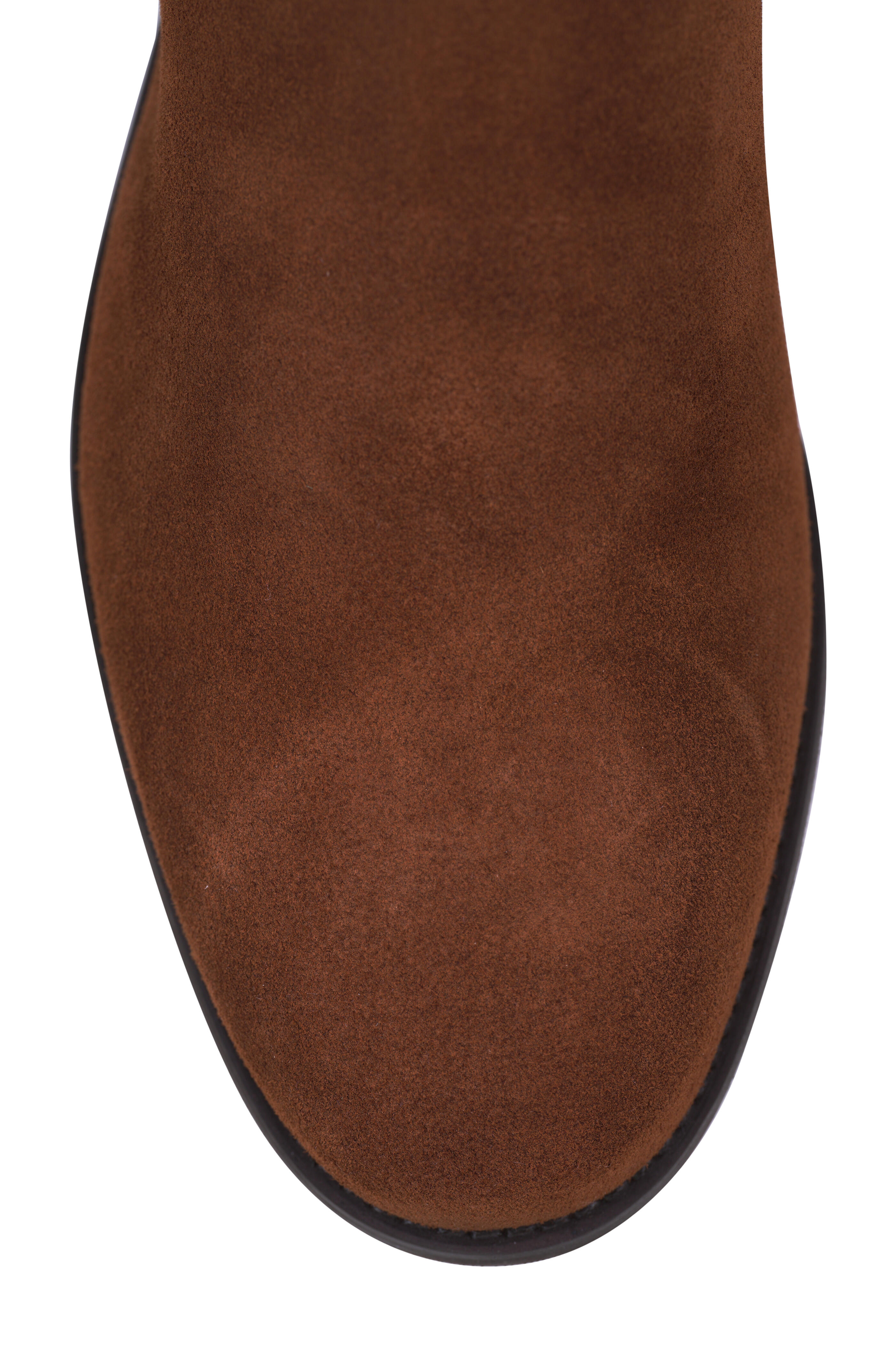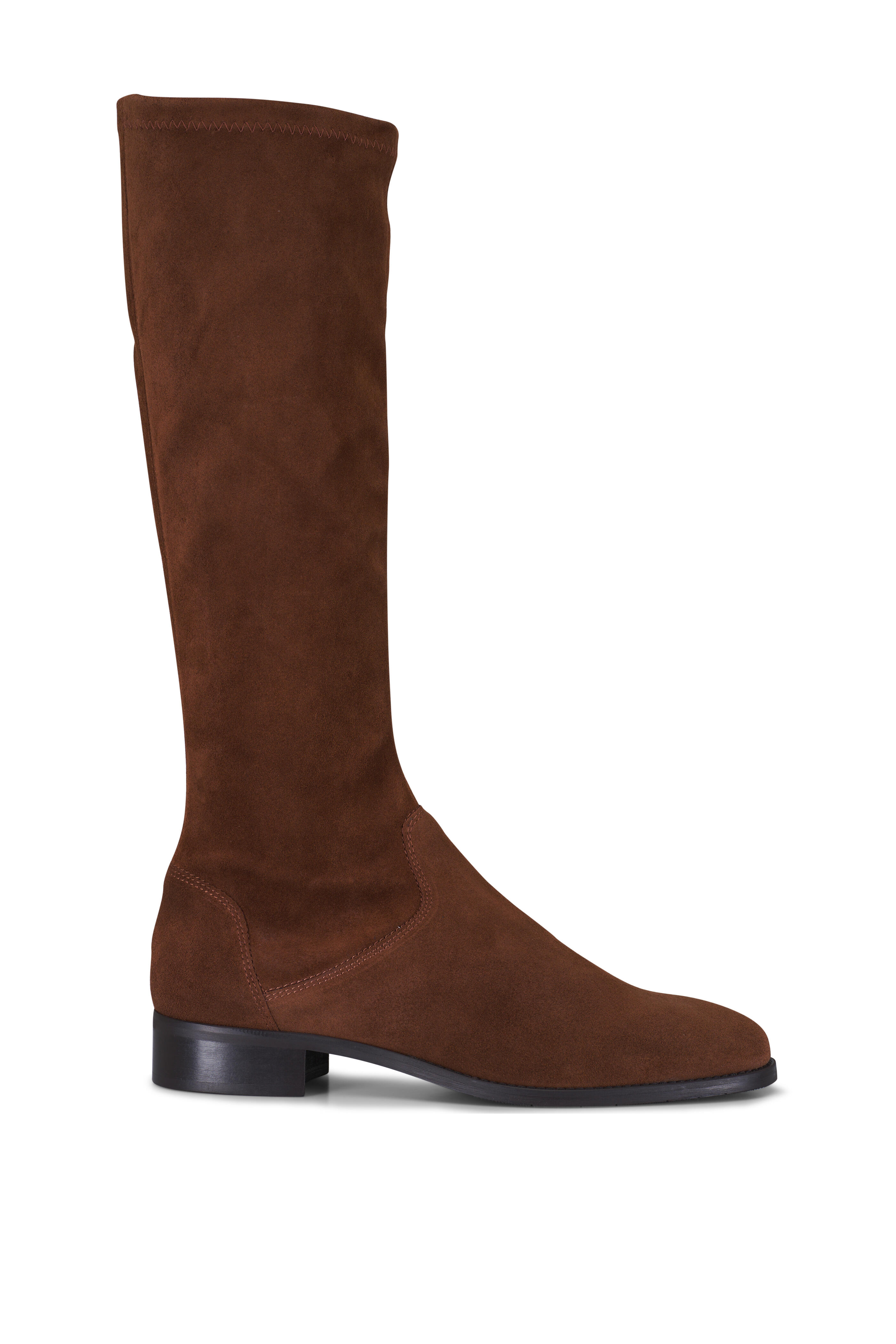 Suede upper. Almond toe. Side zip closure. Thermal lining. Block heel. Rubber sole. Weatherproof. Made in Italy. Color: Brandy. Heel height: 25mm (1"). Shaft height: 393mm (15 ½").