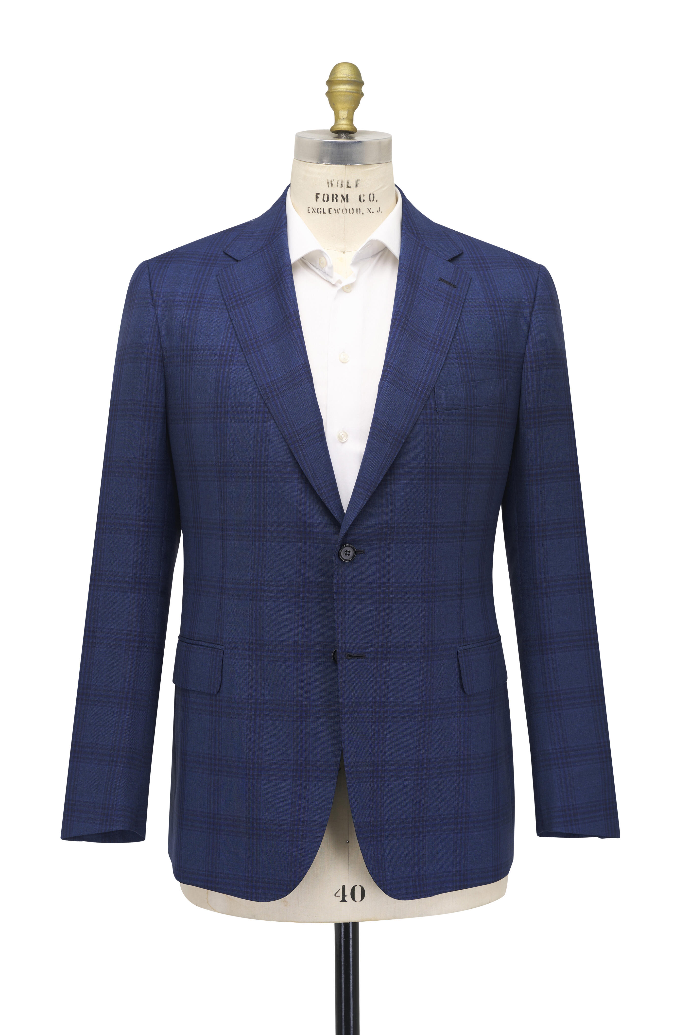 Navy Blue Windowpane Plaid Wool Sportcoat