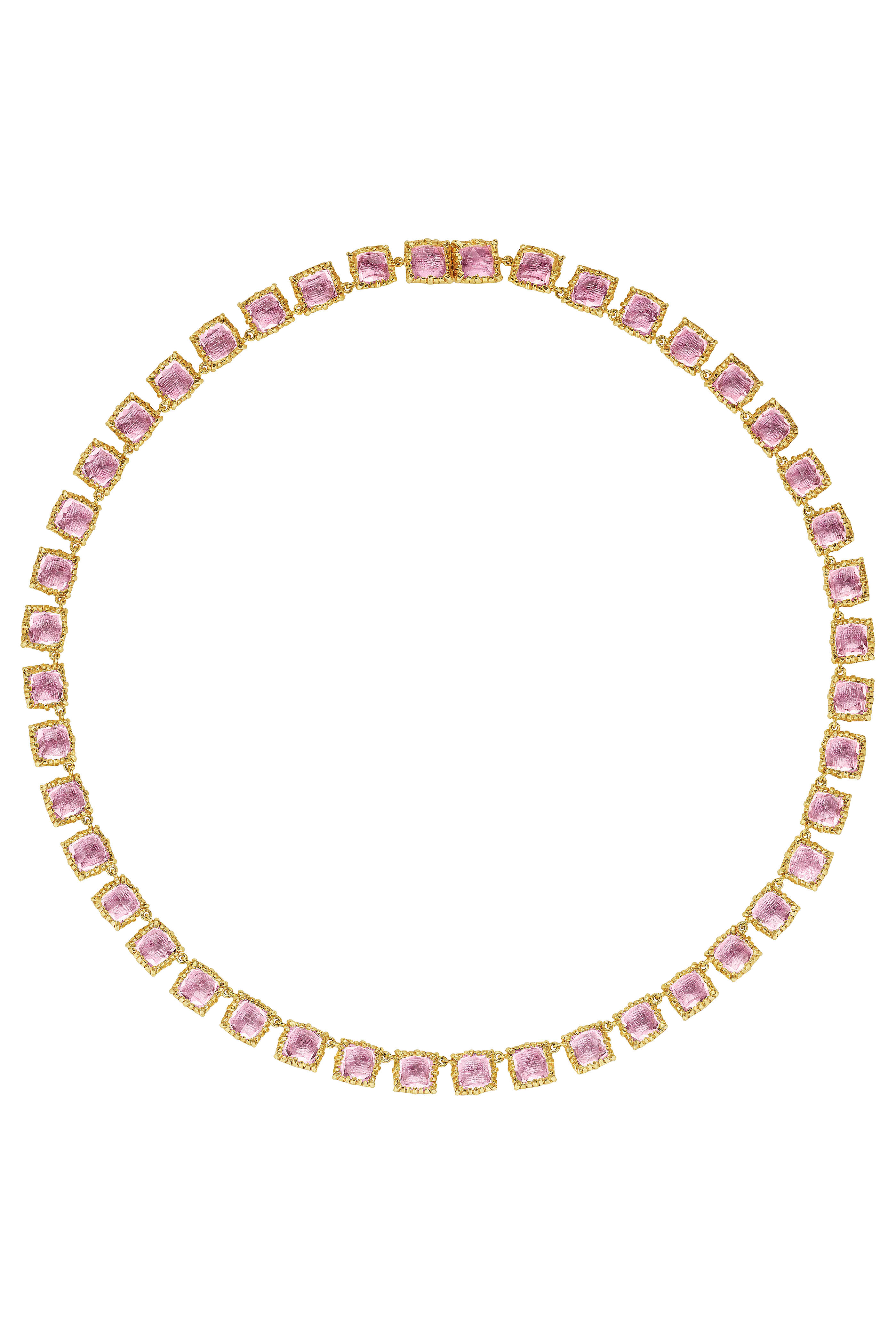 18k Yellow Gold. Sterling Silver. White Quartz. Petit 4 Pink Foil.