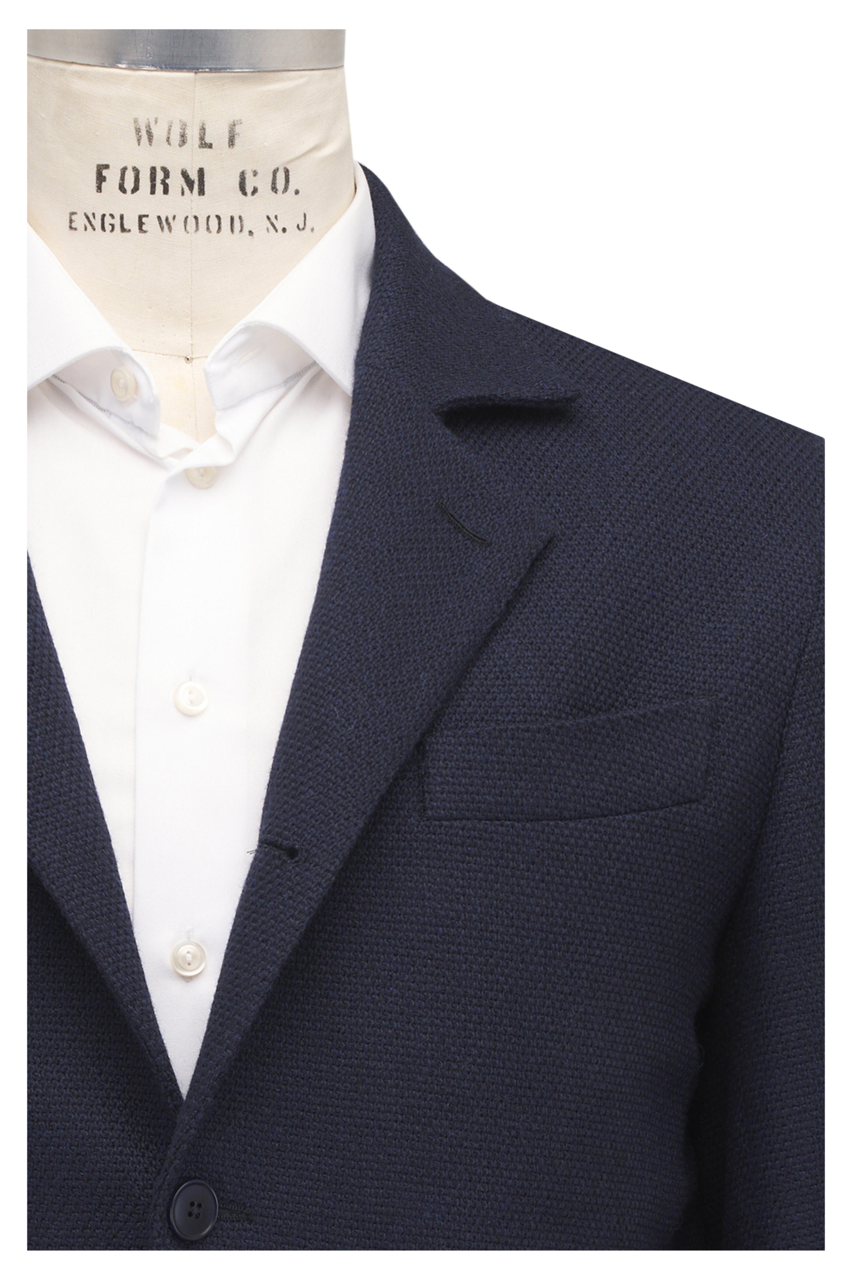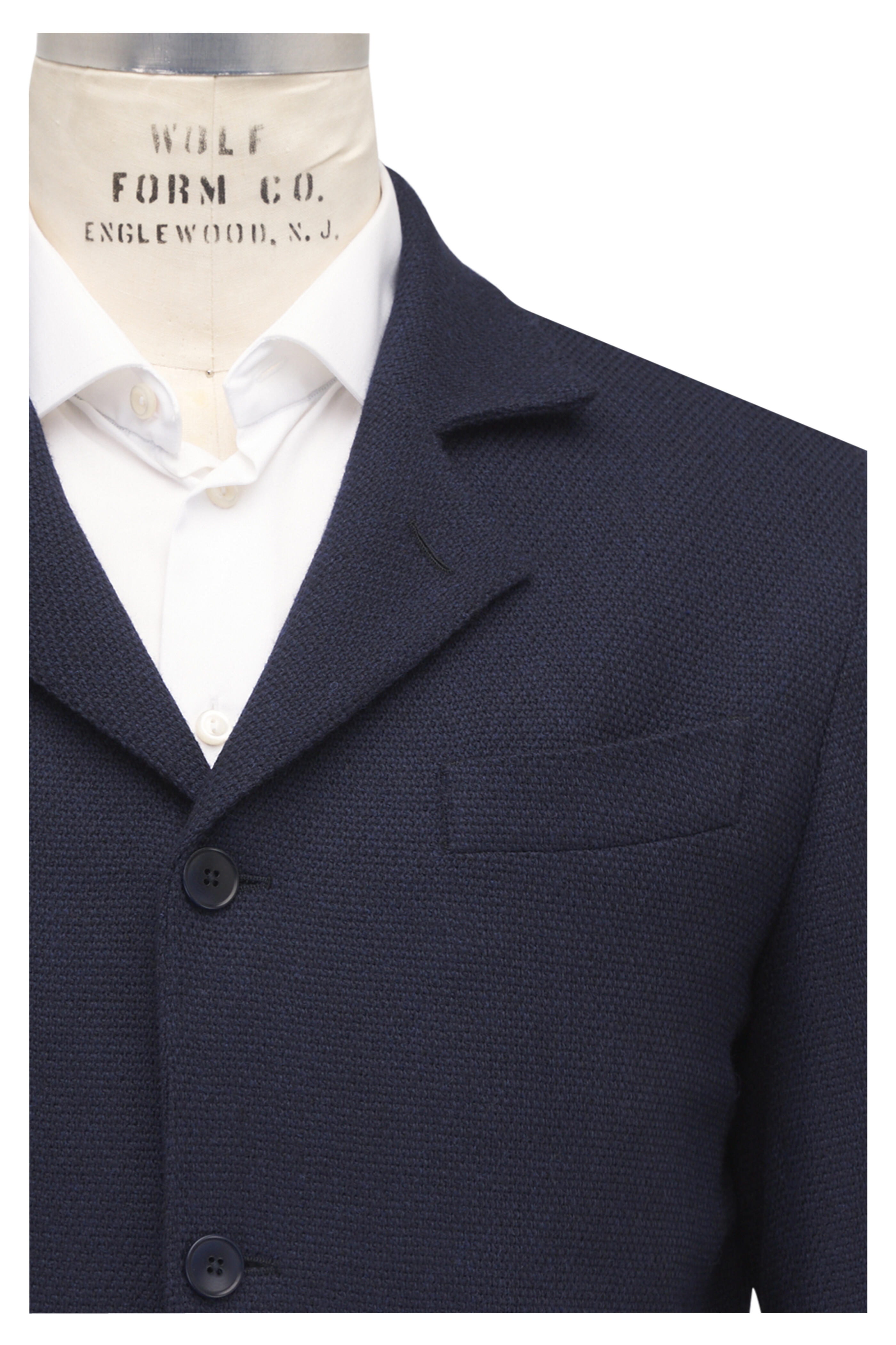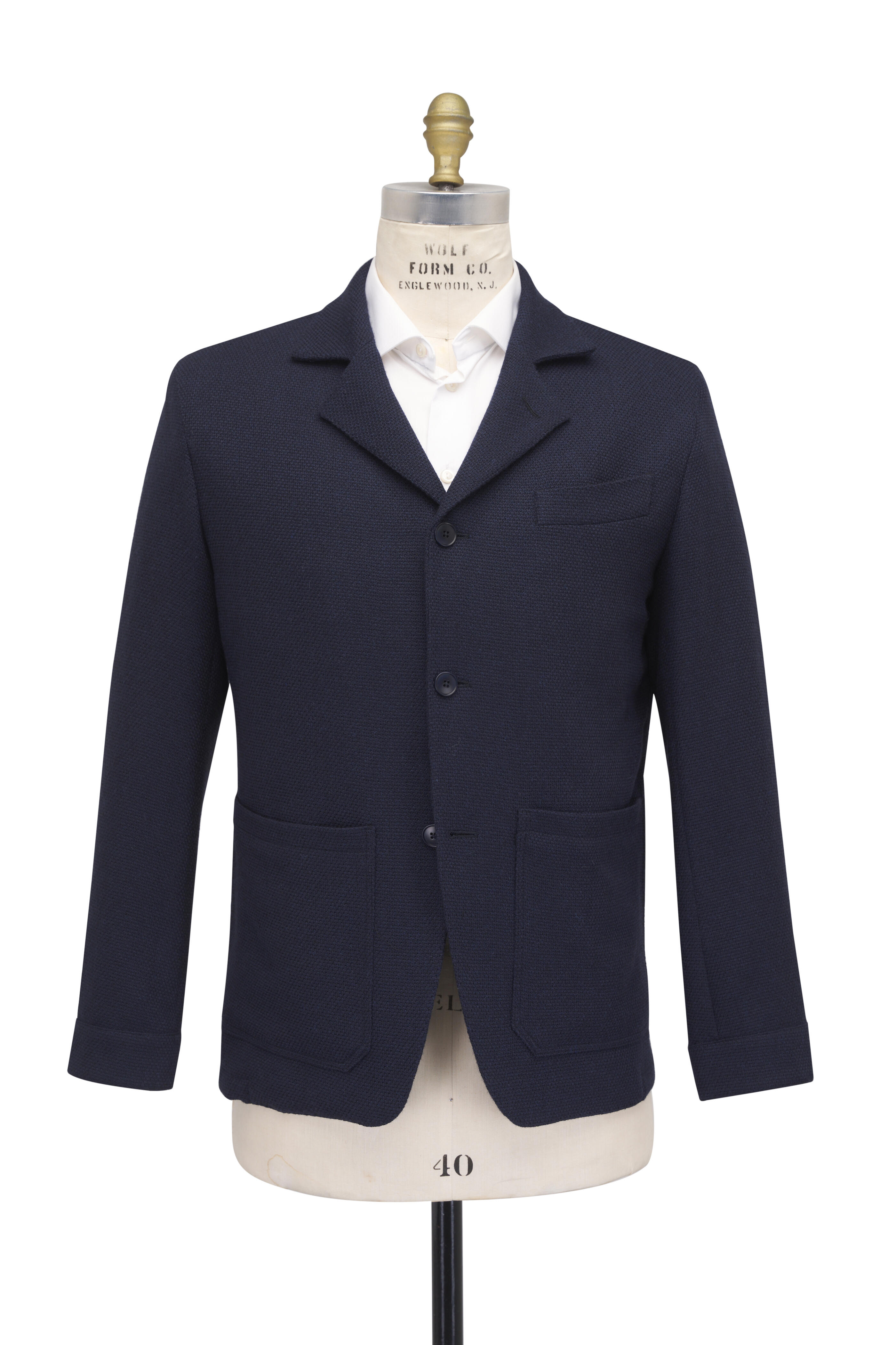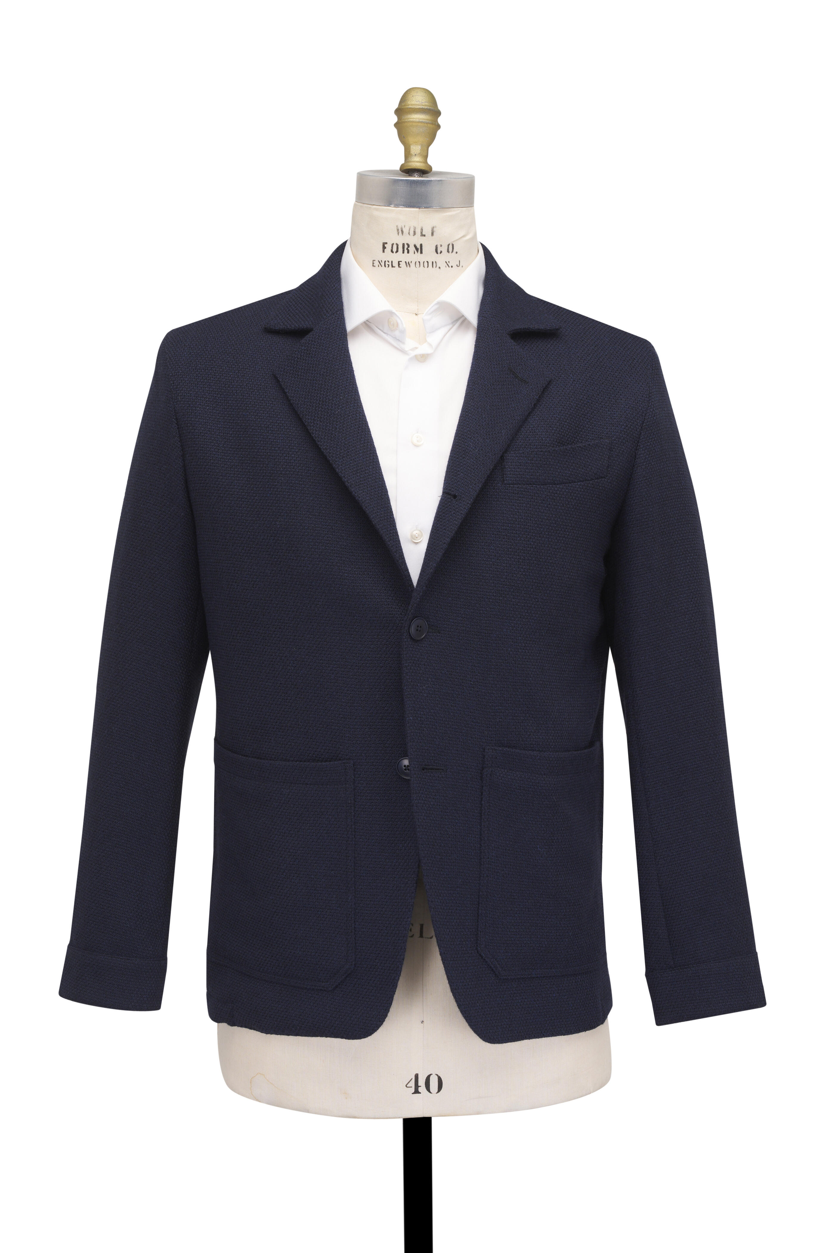 Notched lapels. Front button closure. Lower patch pockets; chest welt pocket; internal slip pockets. Double vent. Imported. Shoulder to hem 30" (size 42 R). 62% Alpaca, 35% wool, 3% polyamide. Dry clean.