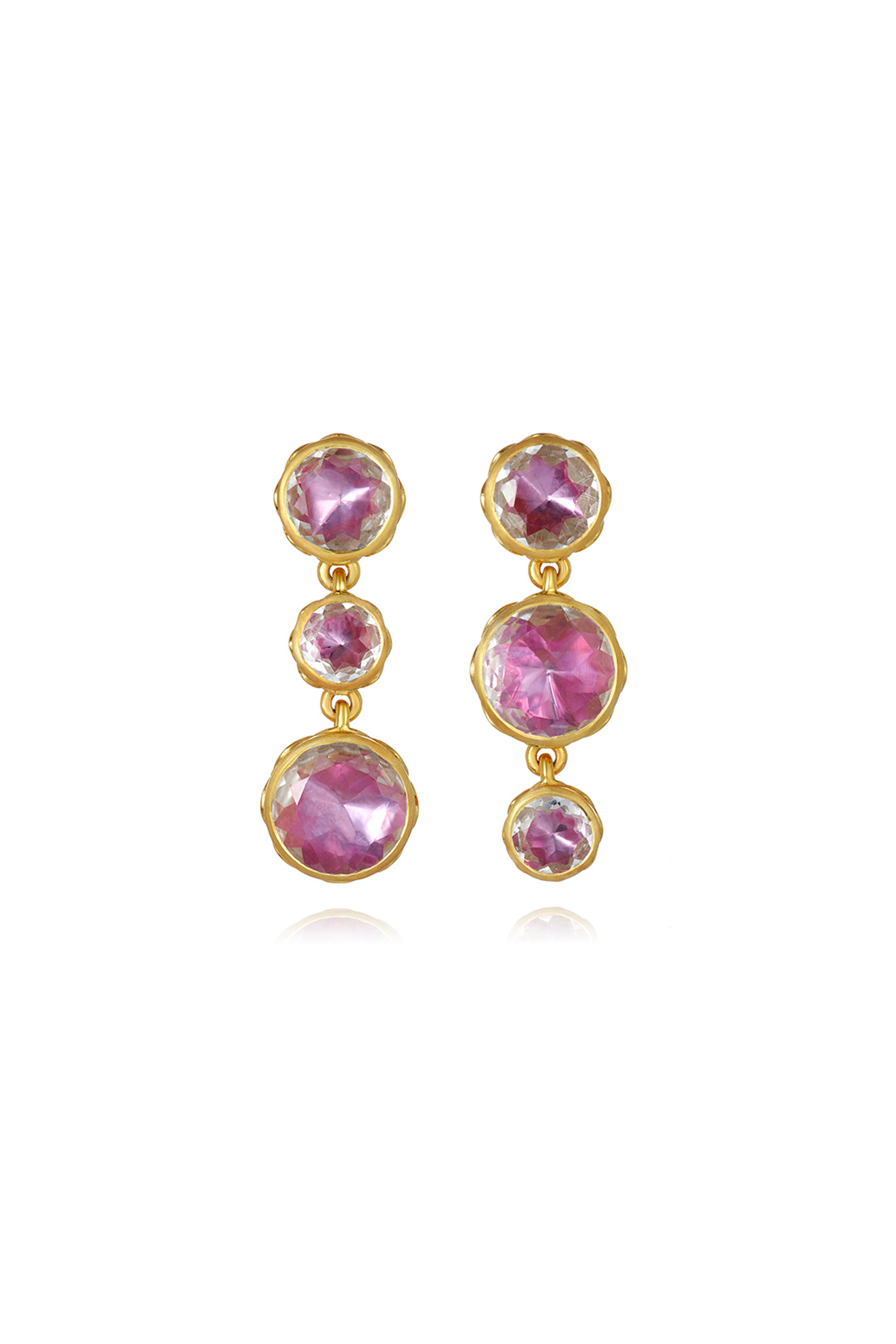 18k Yellow Gold. Sterling Silver. White Quartz/Rose Foil. 3 Drop.