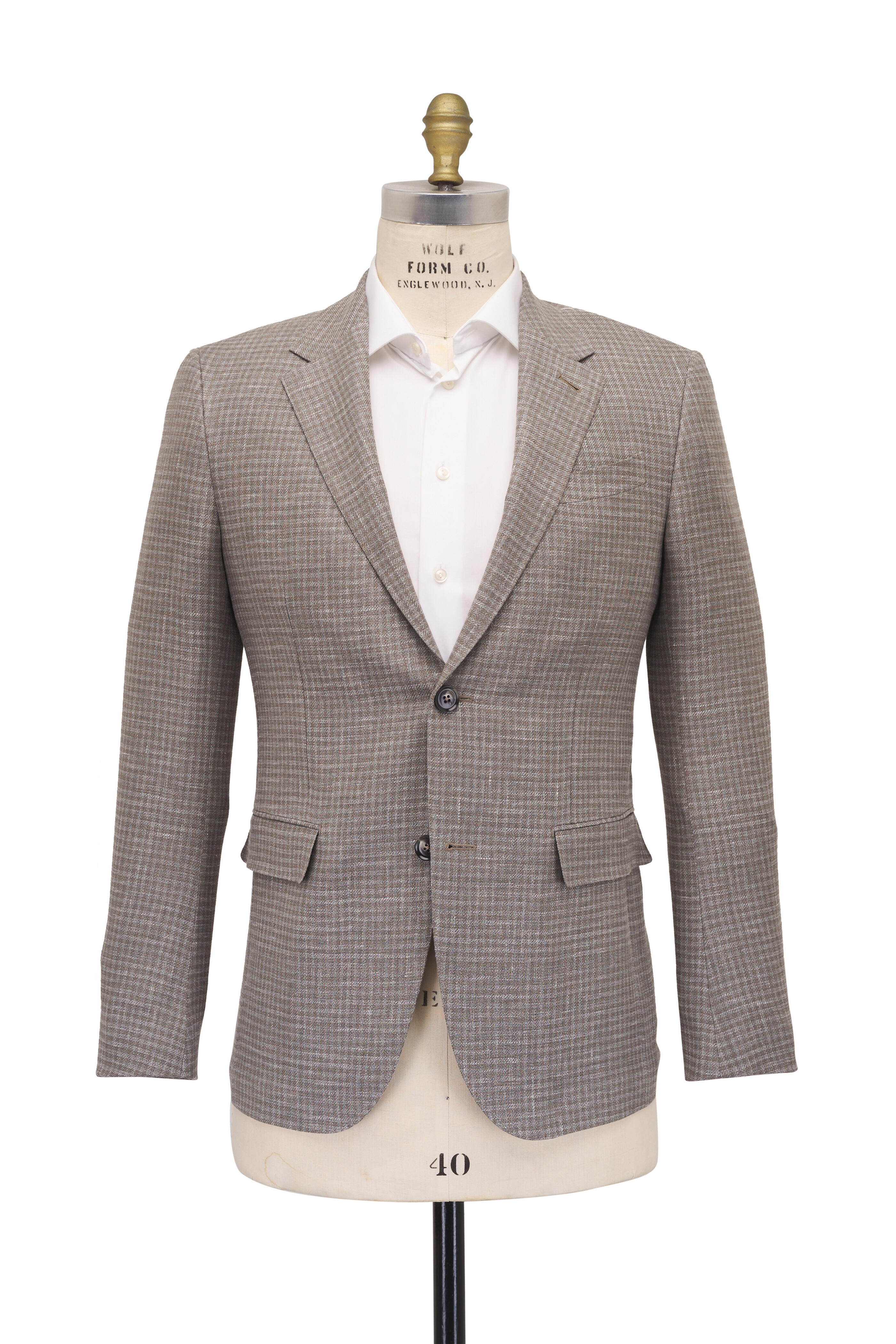 Taupe Plaid Linen, Silk & Wool Crossover Sportcoat