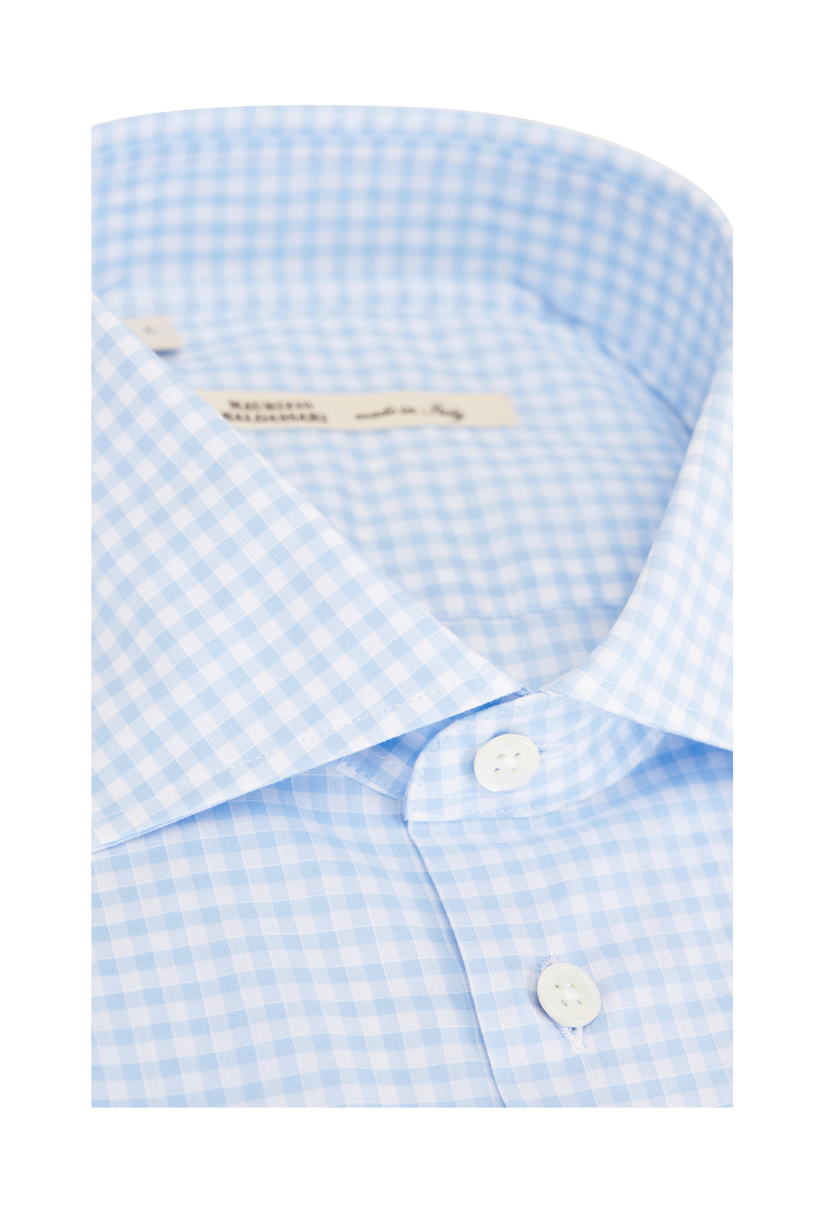 Spread collar. French front button placket. Single button mitered cuffs. Made in Italy. 100% cotton. Machine wash.