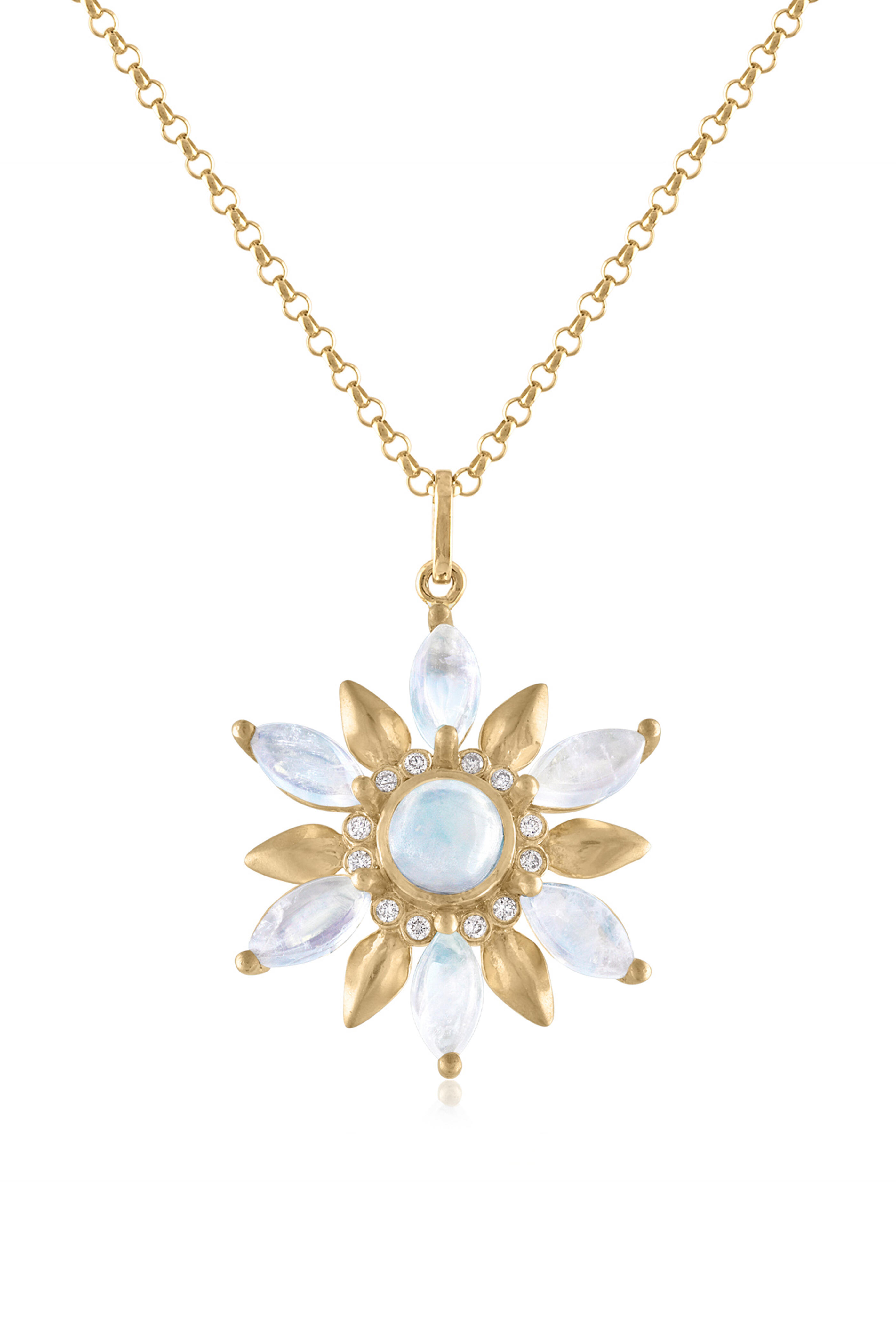 14k Yellow Gold. 2.50 ct Moonstone. 0.84 ct Diamond.