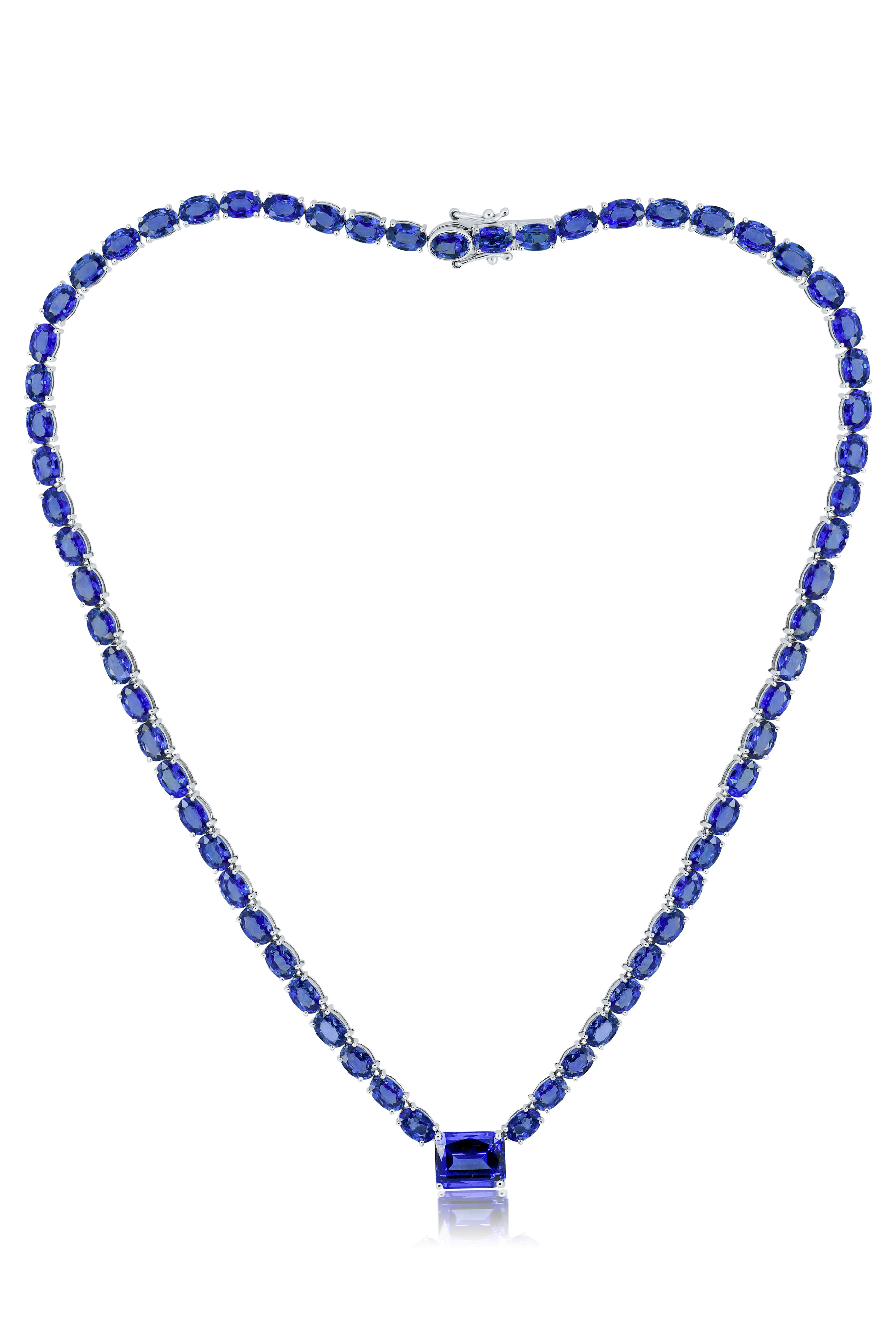 18k White Gold. 38.95 ct Sapphire. 5.28 ct Tanzanite.